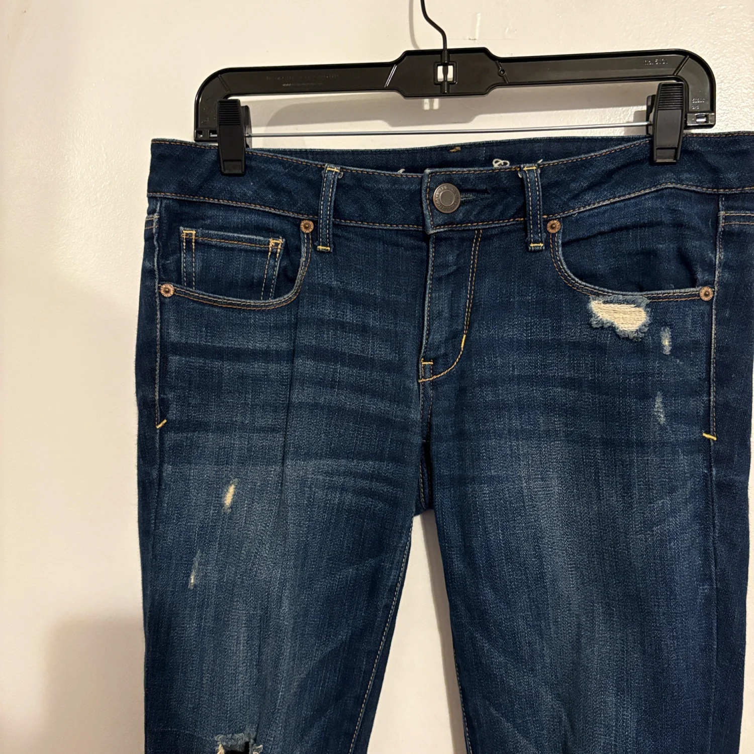 American Eagle Dark Wash Low Rise Distressed Skinny Jeans 6