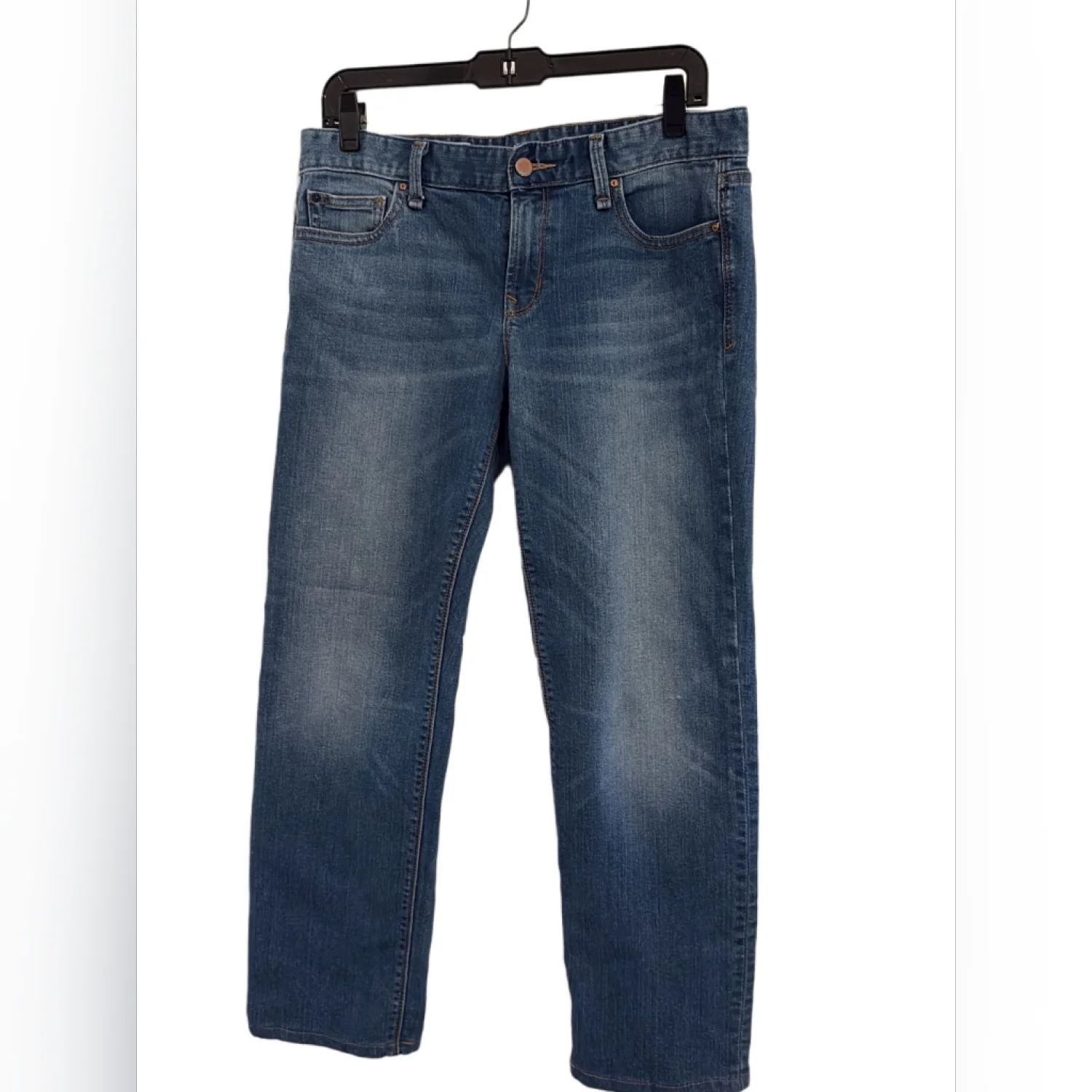 Gap Medium Wash Real Straight Jeans 30 Cute jeans by Gap Real Straight Jeans Classic five pocket styling Belt Loops Zip Fly Stretch Denim: 87% cotton 12% polyester 1% spandex Preowned excellent condition 30 Inch Waist 27 Inch Inseam - these have been professionally hemmed to this length 9 Inch Front Rise 15 Inch Back Rise Size: 30 Bin S #gap #straight #27L #preppy #short Bin: S