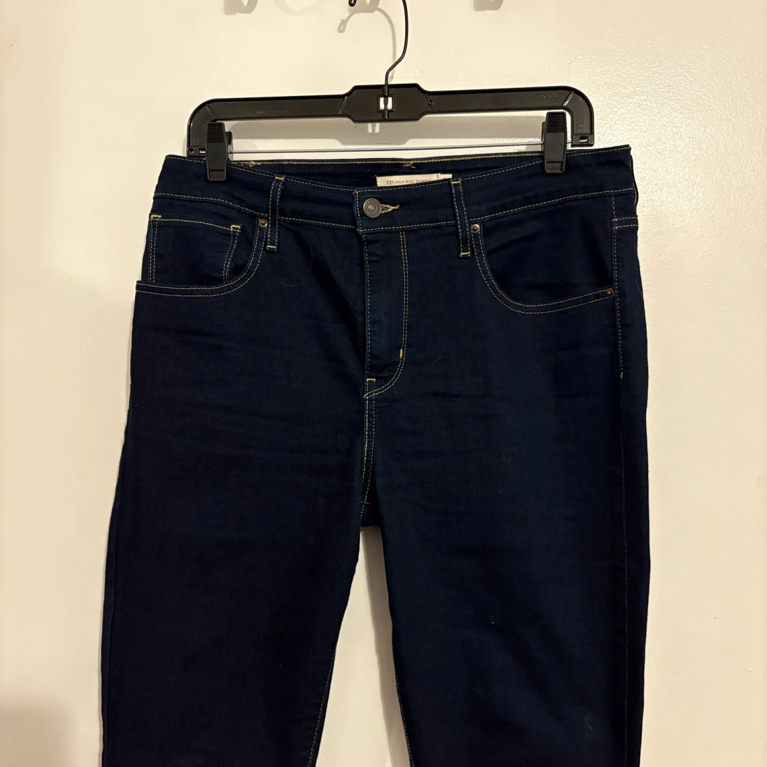 Levi’s 721 Dark Wash High Rise Skinny Jeans 31 Cute jeans by Levi’s Levi’s 721 High Rise Skinny Jeans Dark blue denim wash Classic five pocket styling Belt Loops Zip Fly Stretch Denim: 78% cotton 20% polyester 2% elastane Preowned excellent condition 31 Inch Waist 28 Inch Inseam 11 Inch Front Rise 16 Inch Back Rise Size: 31 Bin: U #levis #721 #darkwash #highrise #skinny