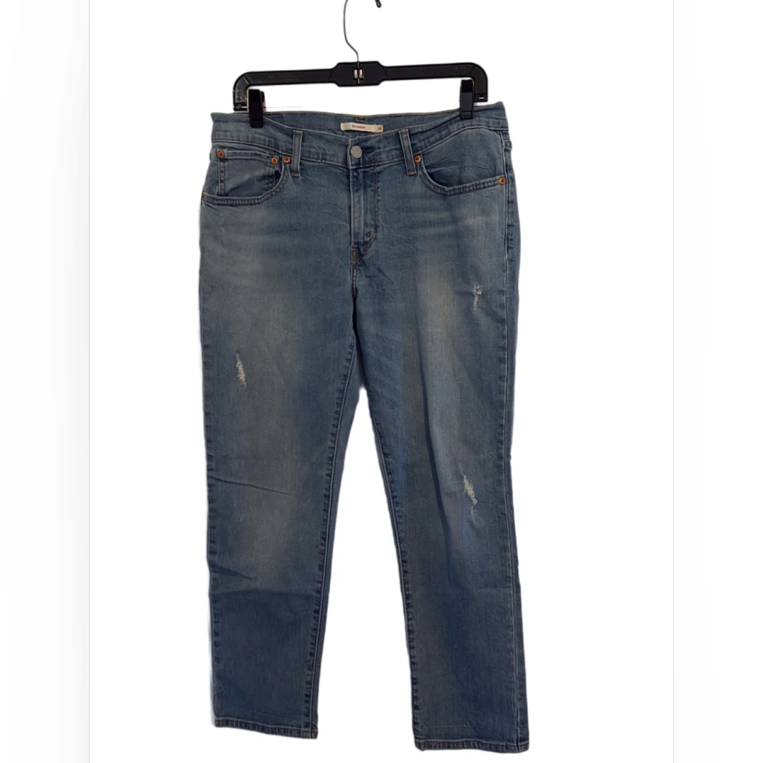 Levi’s Light Wash Mid Rise Boyfriend Jeans 30 Cute jeans by Levi’s Boyfriend Jeans Slightly distressed by manufacturer Mid Rise Classic five pocket styling Belt Loops Zip Fly Stretch Denim: 98% cotton 2% spandex Preowned excellent condition 30 Inch Waist 27 Inch Inseam (unrolled) 9 Inch Front Rise 15 Inch Back Rise Size: 30 Bin: T #levis #boyfriend #10 #midrise #preppy 120263