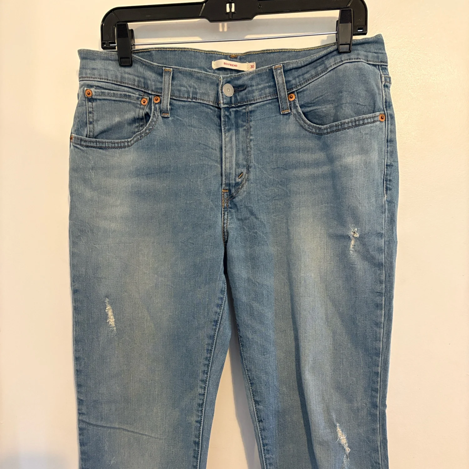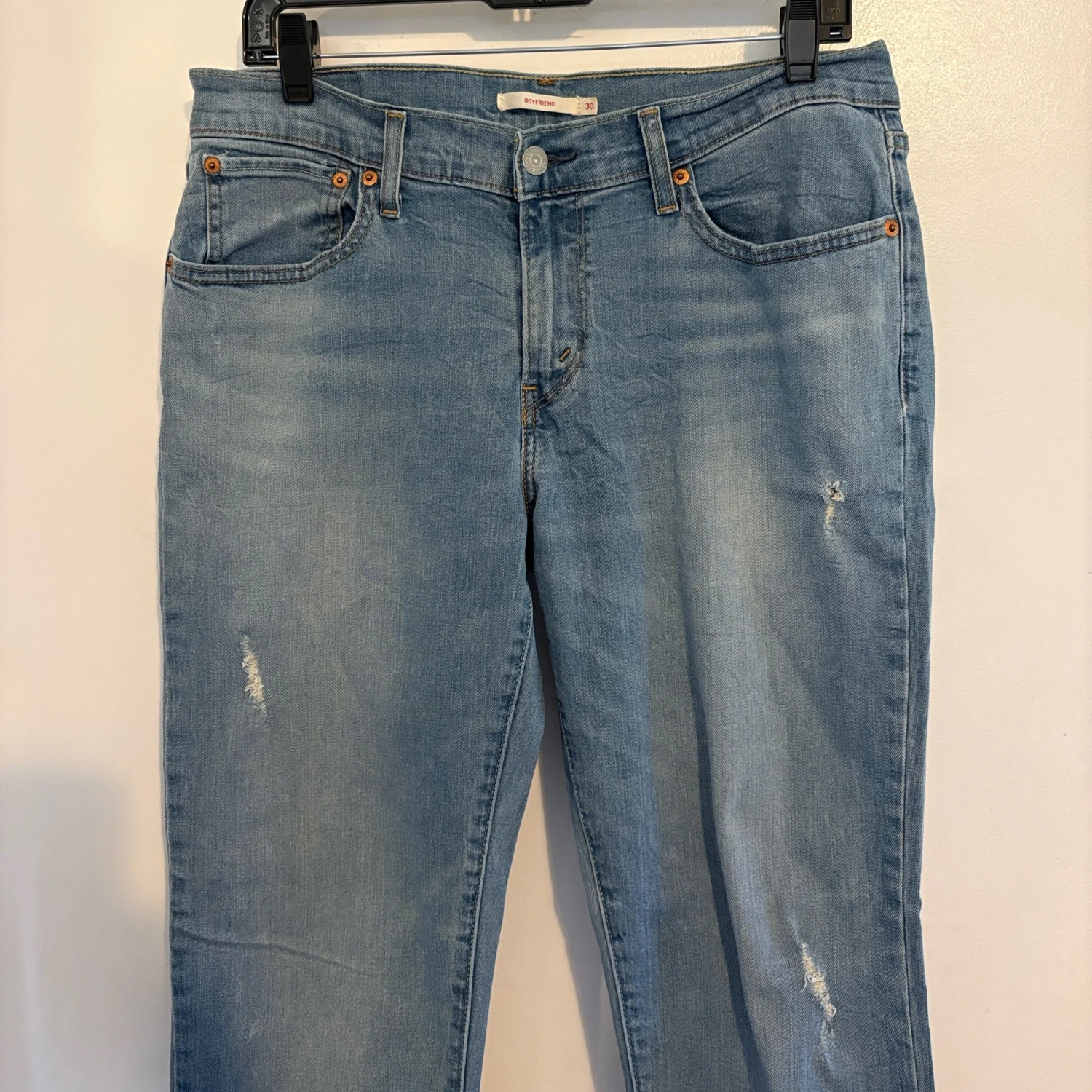 Levi’s Light Wash Distressed Mid Rise Boyfriend Jeans 30