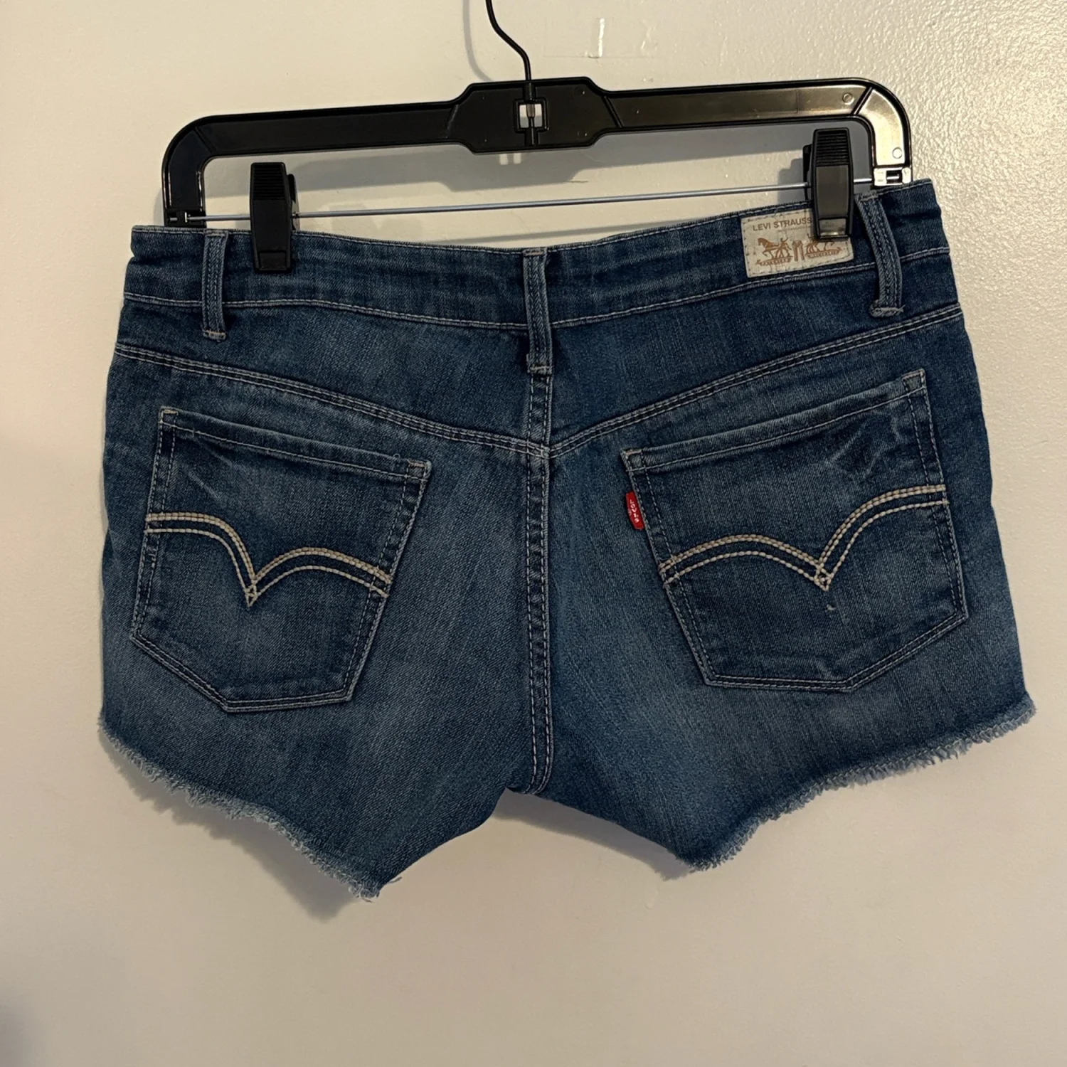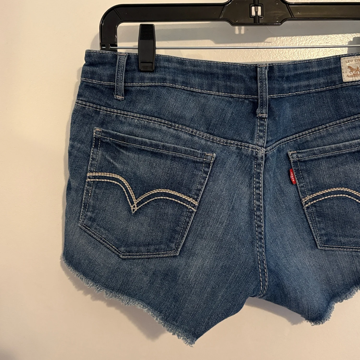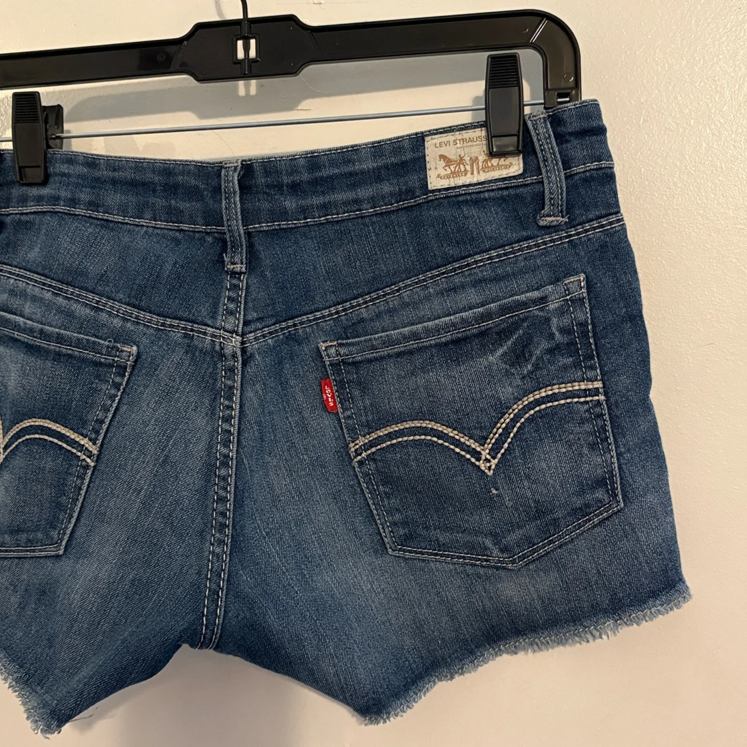 Levi’s Shorty Shorts Denim Shorts 7 / 27 Cute jeans by Levi’s Shorty Shorts Raw edge hem Classic five pocket styling Belt Loops Zip Fly Stretch Denim: 72% cotton 28.5% polyester 1.5% spandex Preowned excellent condition 27 Inch Waist 2.5 Inch Inseam 7 Inch Front Rise 13 Inch Back Rise Size: 7 Bin: #levis #27 #shortshorts #festival #summer #boho #lowrise