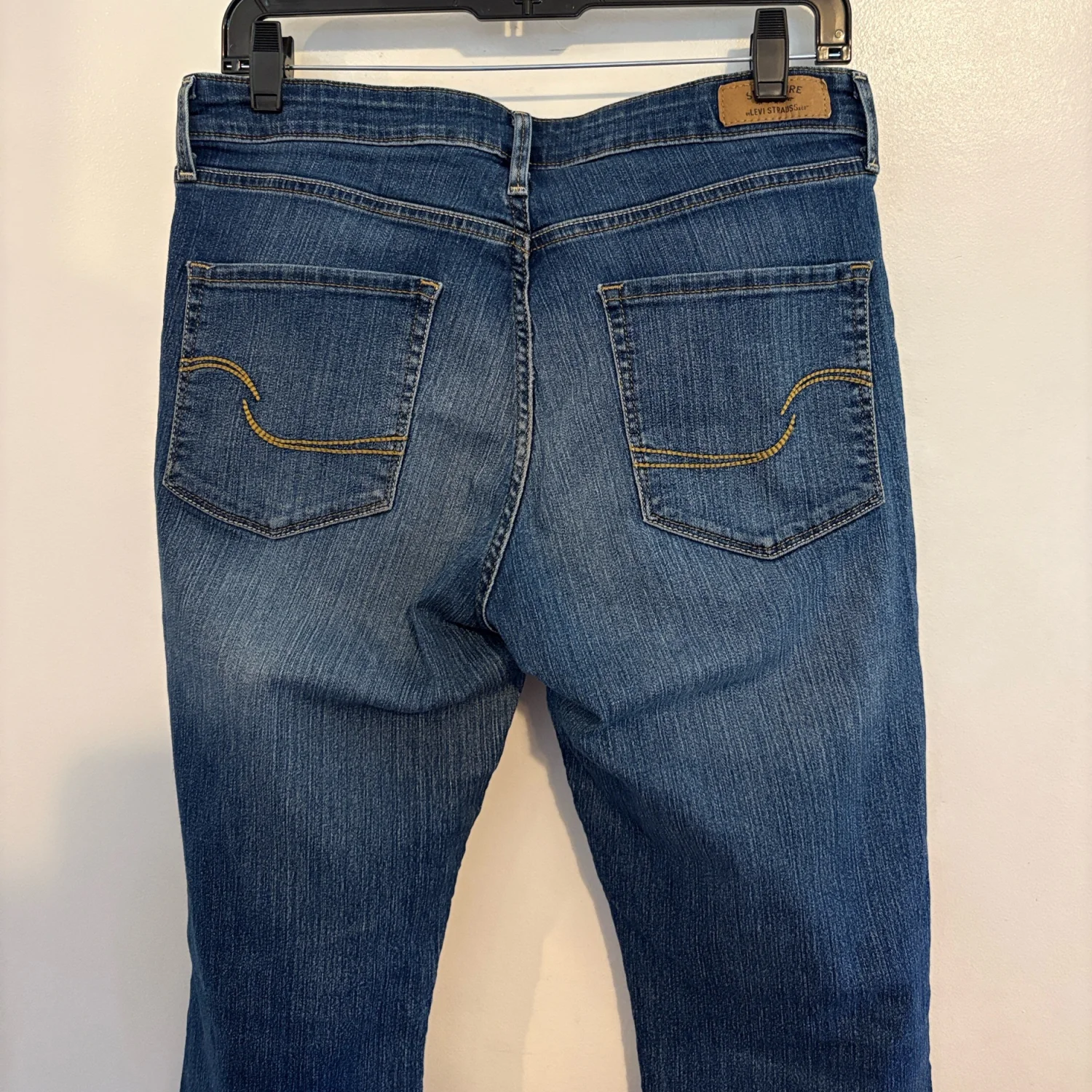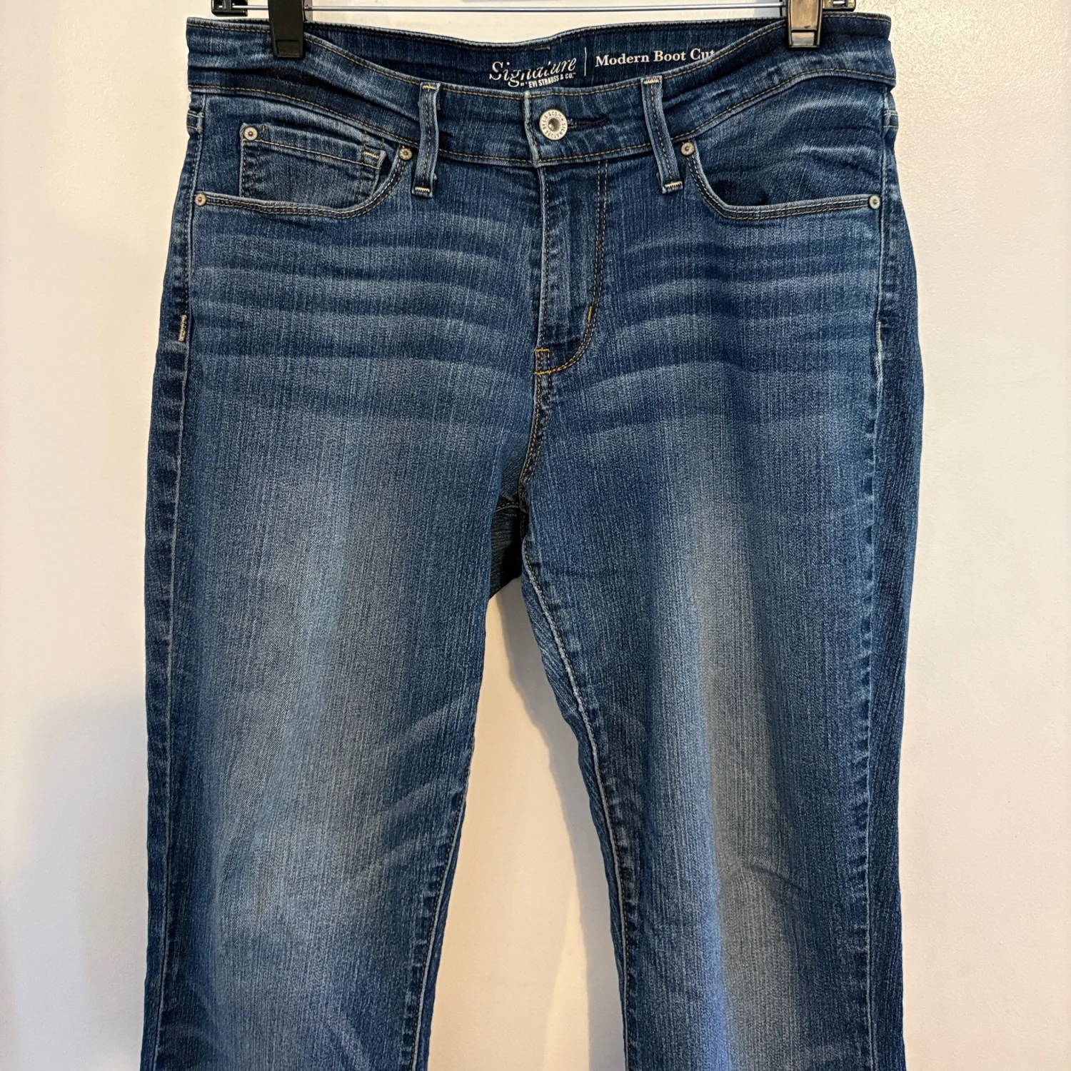 Levi’s Signature Modern Boot Cut Jeans 12 Short / 31W 30L Cute jeans by Levi’s Signature Modern Boot Cut Classic five pocket styling Belt Loops Zip Fly Stretch Denim: 83% cotton 15% polyester 2% spandex Preowned excellent condition 32 Inch Waist 29 Inch Inseam 10 Inch Front Rise 14 Inch Back Rise Size: 12 Short Bin: T #levis #bootcut #32 #highrise #short #petite 120262