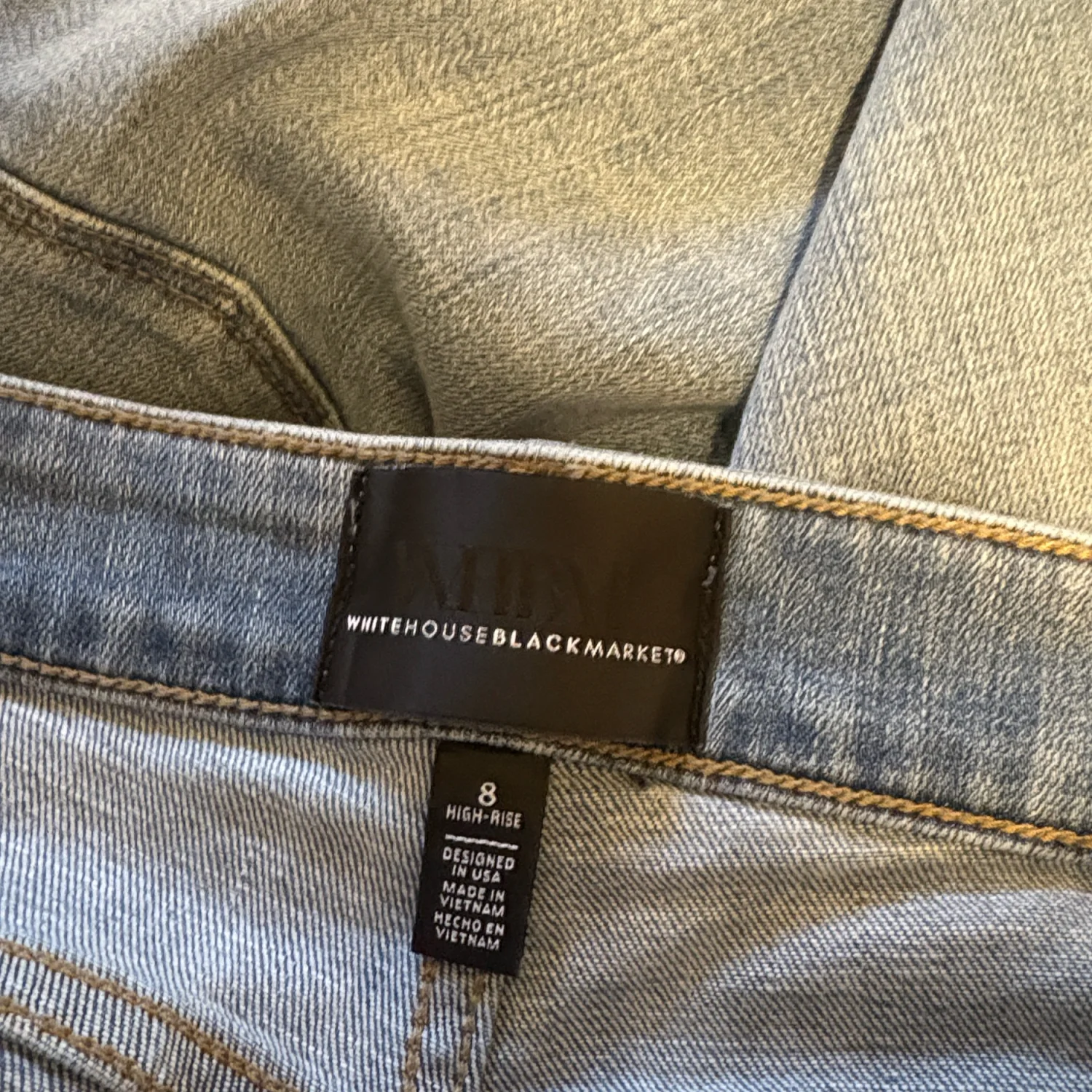 WHBM High Rise Wide Leg Jeans 8 Cute jeans by White House Black Market High Rise Wide Leg Jeans Classic five pocket styling Belt Loops Zip Fly Stretch Denim: 91% cotton 8%polyester 1% spandex Preowned excellent condition 29 Inch Waist 30 Inch Inseam 10 Inch Front Rise 15 Inch Back Rise Size: 8 Bin: #whbm #wideleg #29 #straight #lightwash