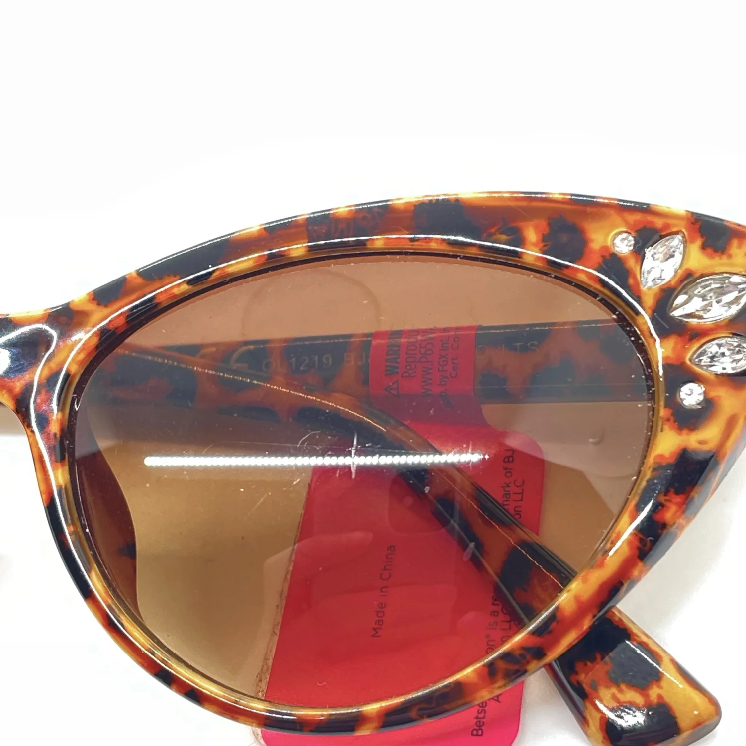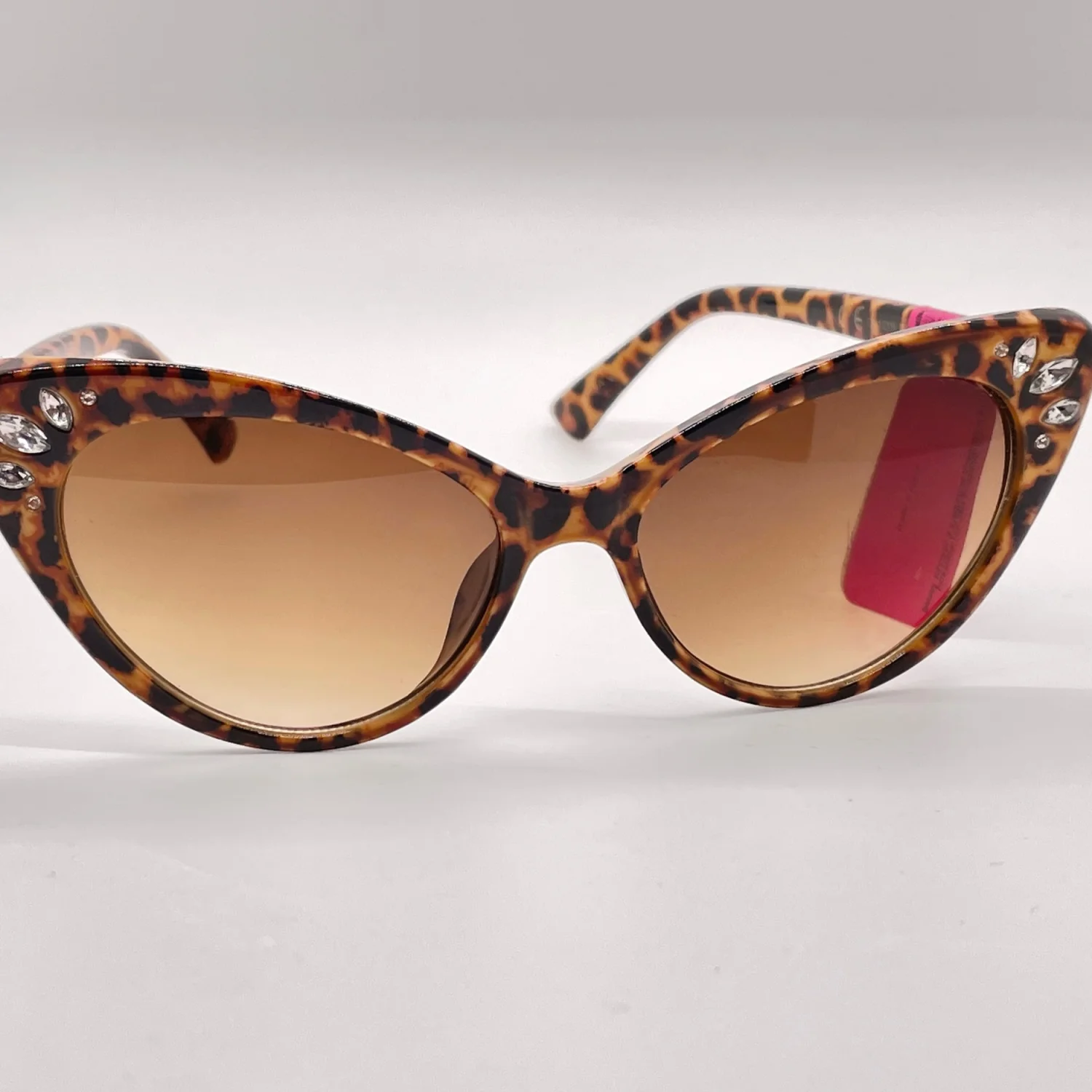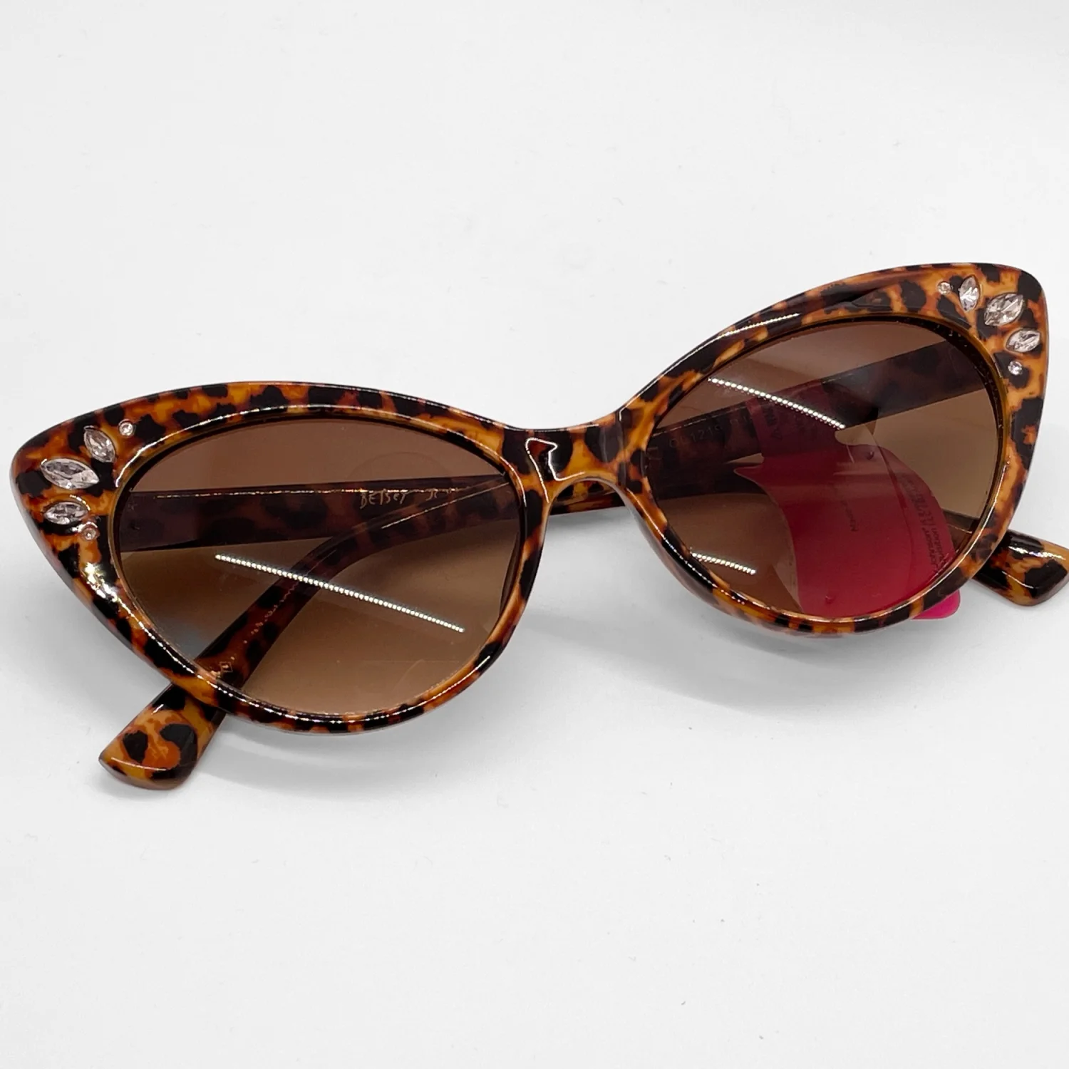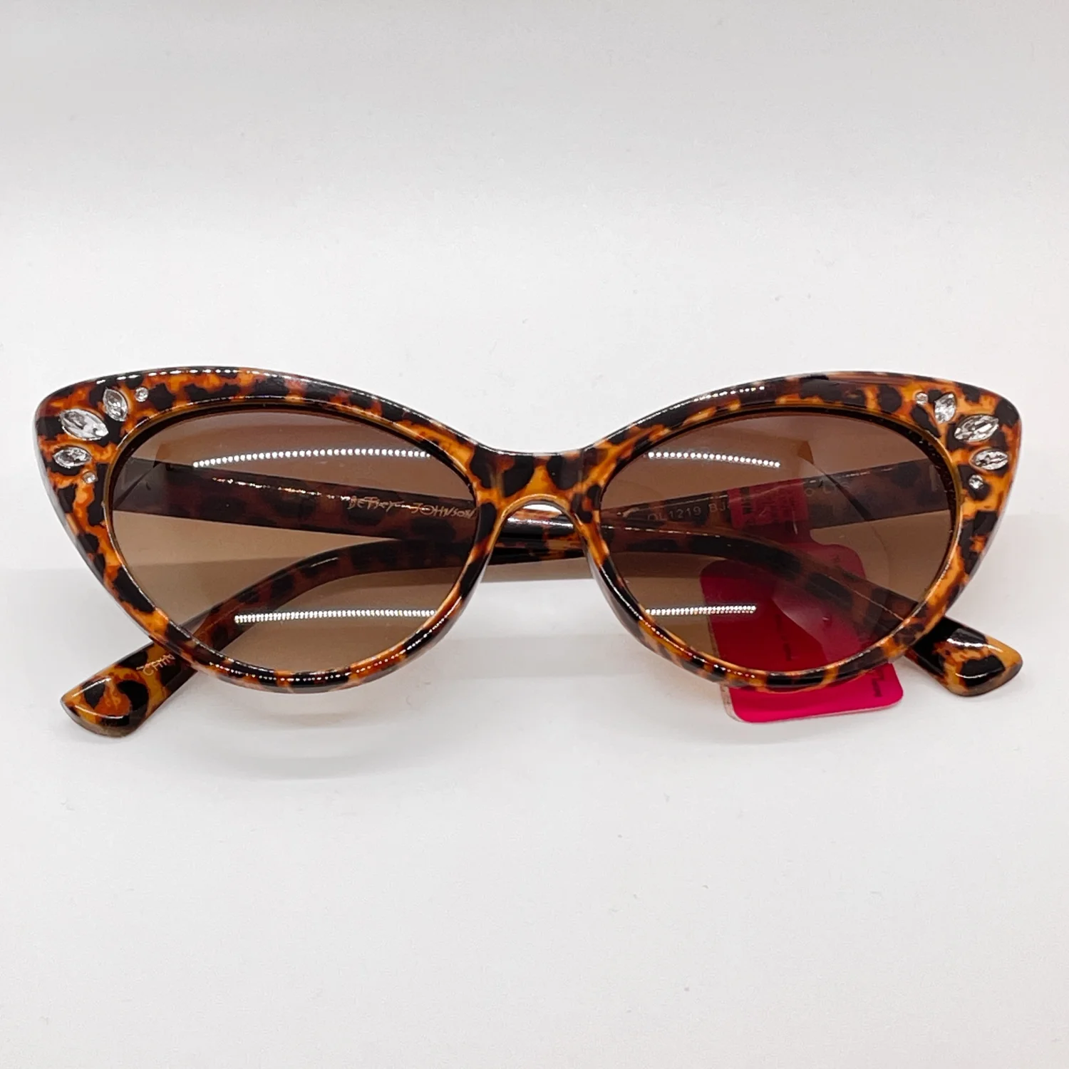 Betsey Johnson Tortoiseshell Cat Eye Glam Sunglasses with Rhinestones Rockabilly