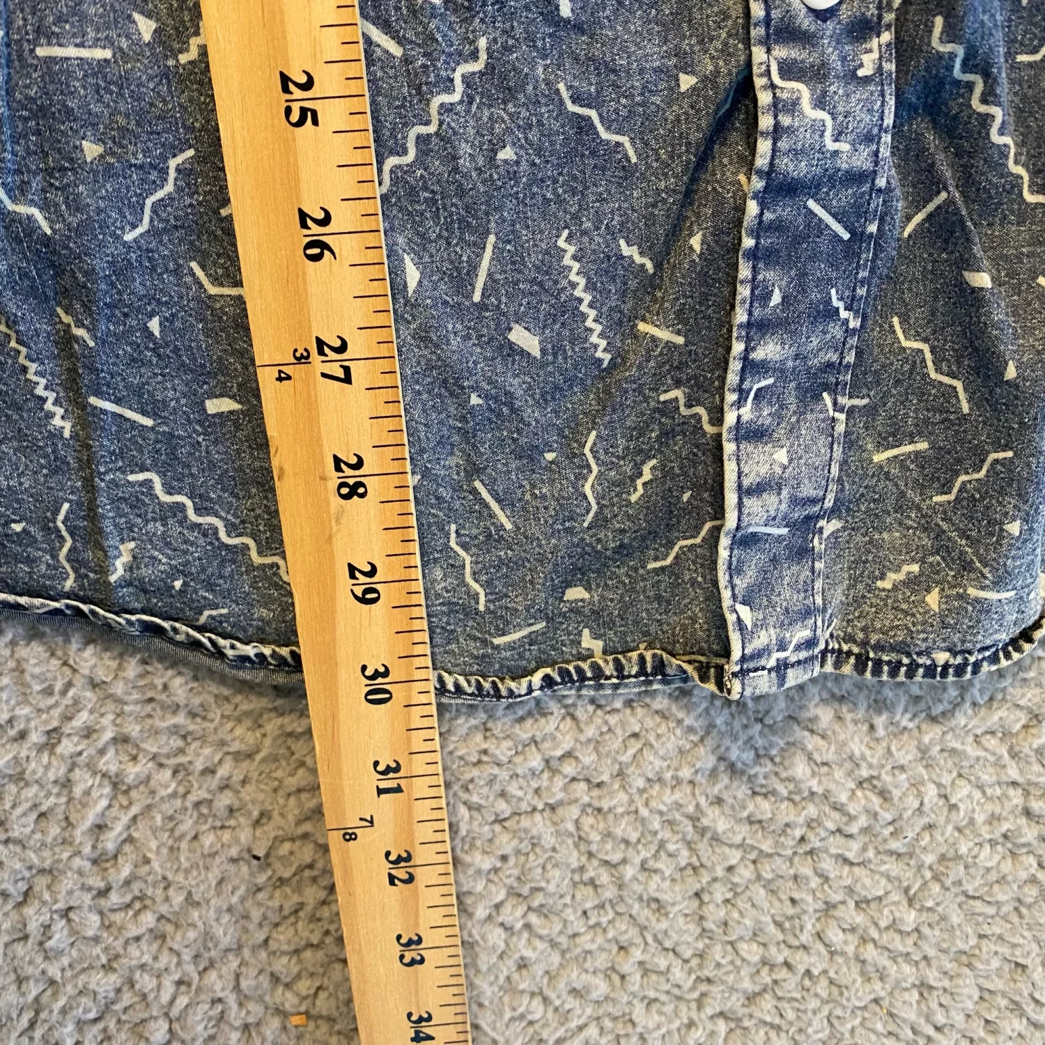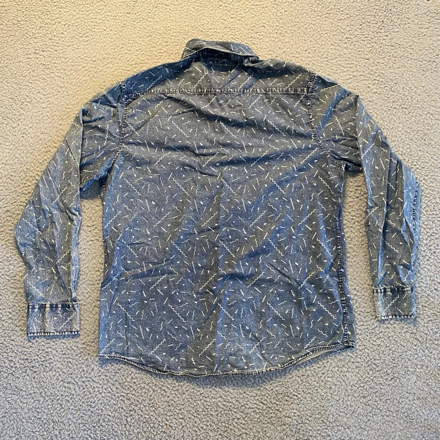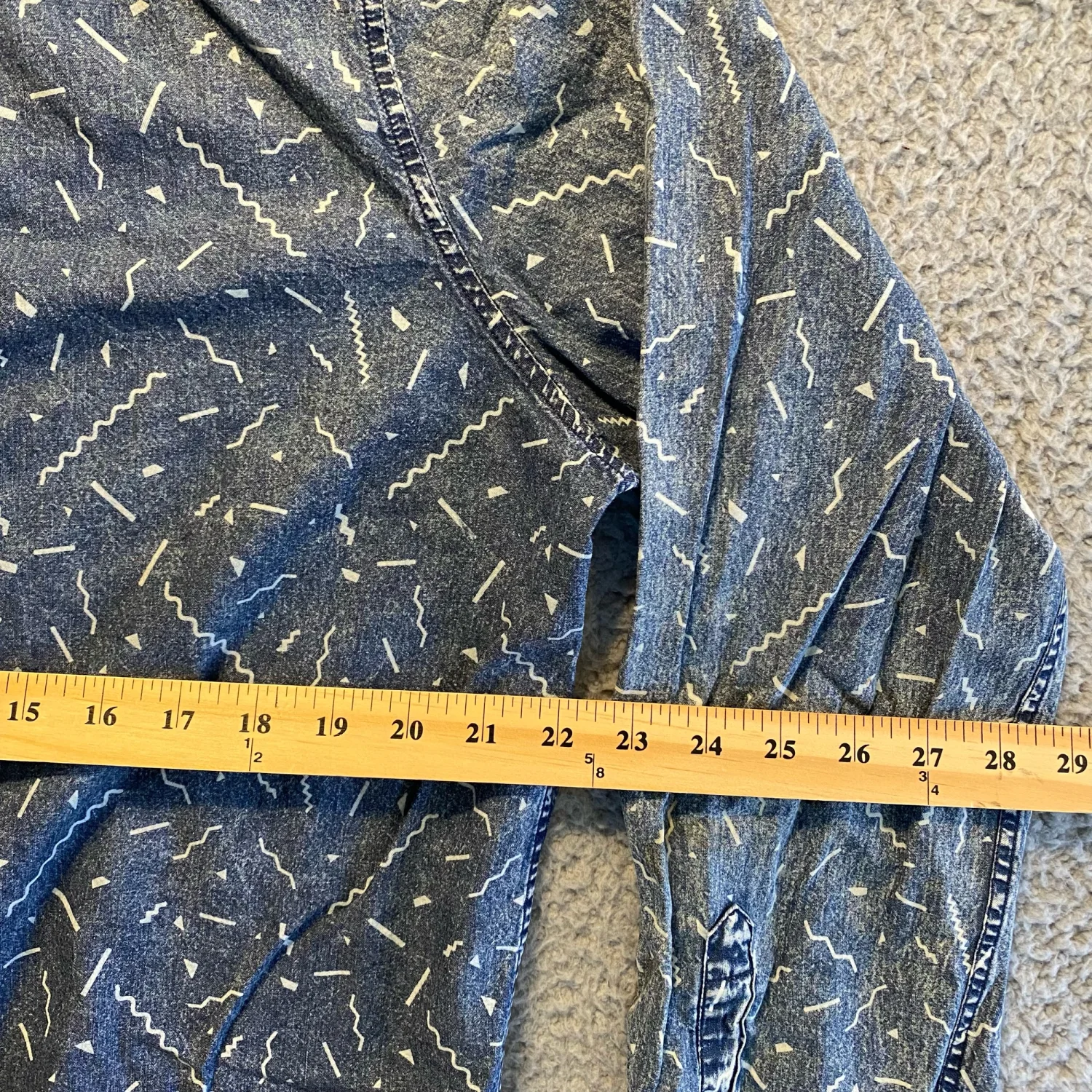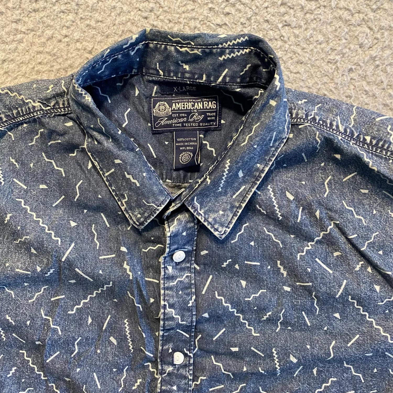 American Rag Long Sleeve Button Up Shirt Blue White Confetti Print Denim Men’s Size XL