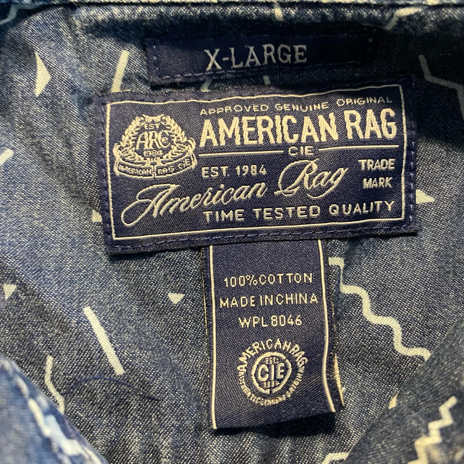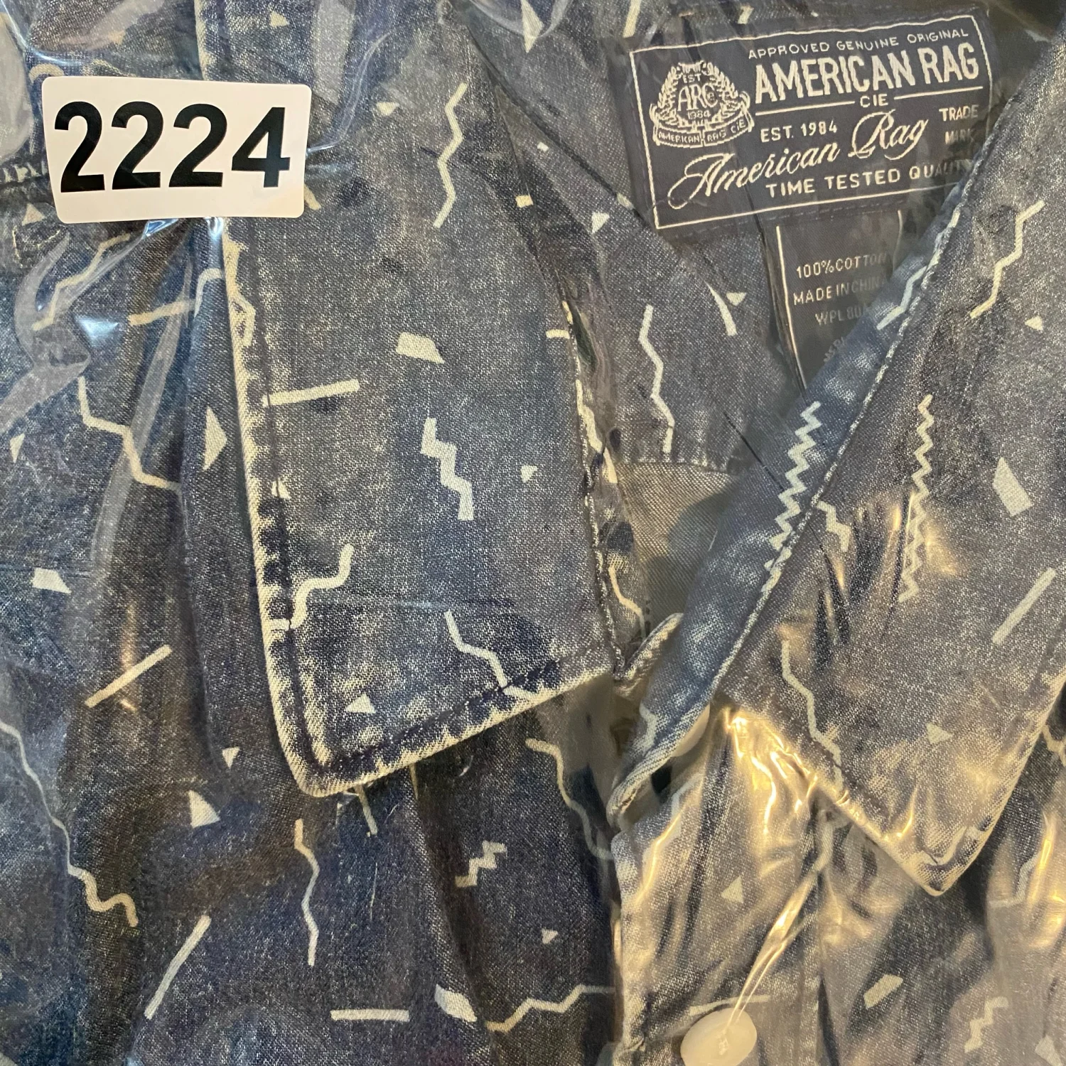 American Rag Long Sleeve Button Up Shirt Blue White Confetti Print Denim Men XL