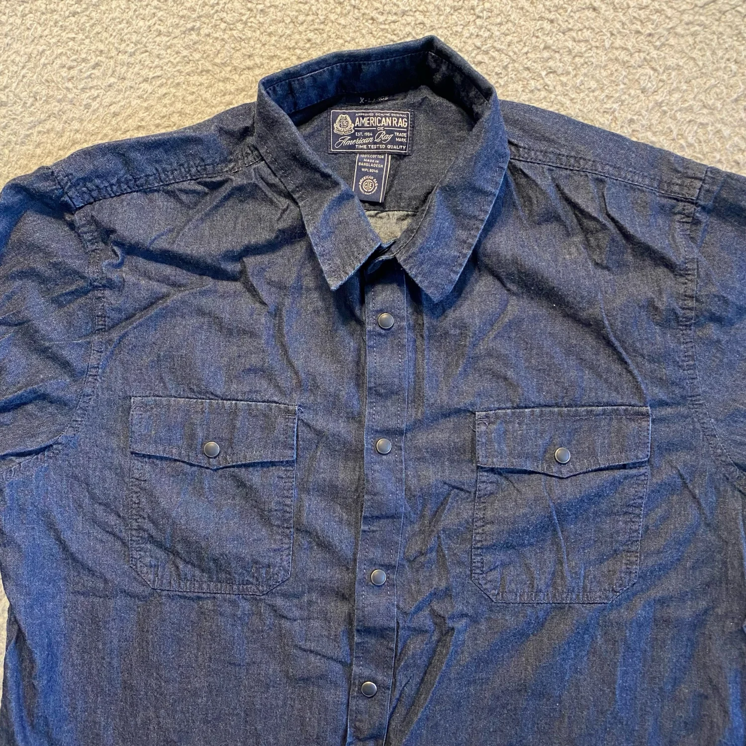 American Rag Long Sleeve Button Up Shirt Dark Blue Denim Men’s Size XL