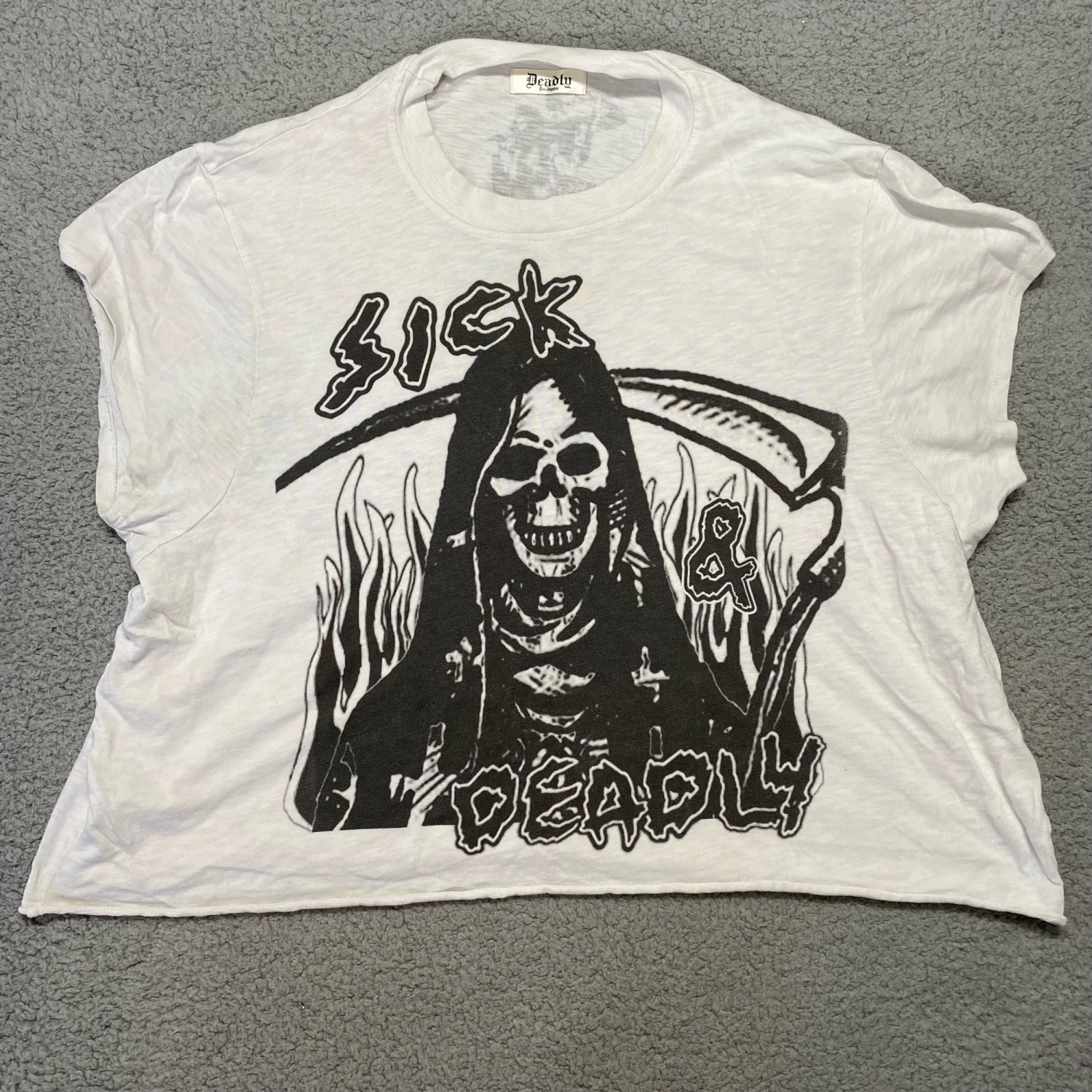 Deadly Los Angeles:The Sick Art Show - Sick & Deadly Grim Reaper Graphic Print White T-Shirt Women’s Small