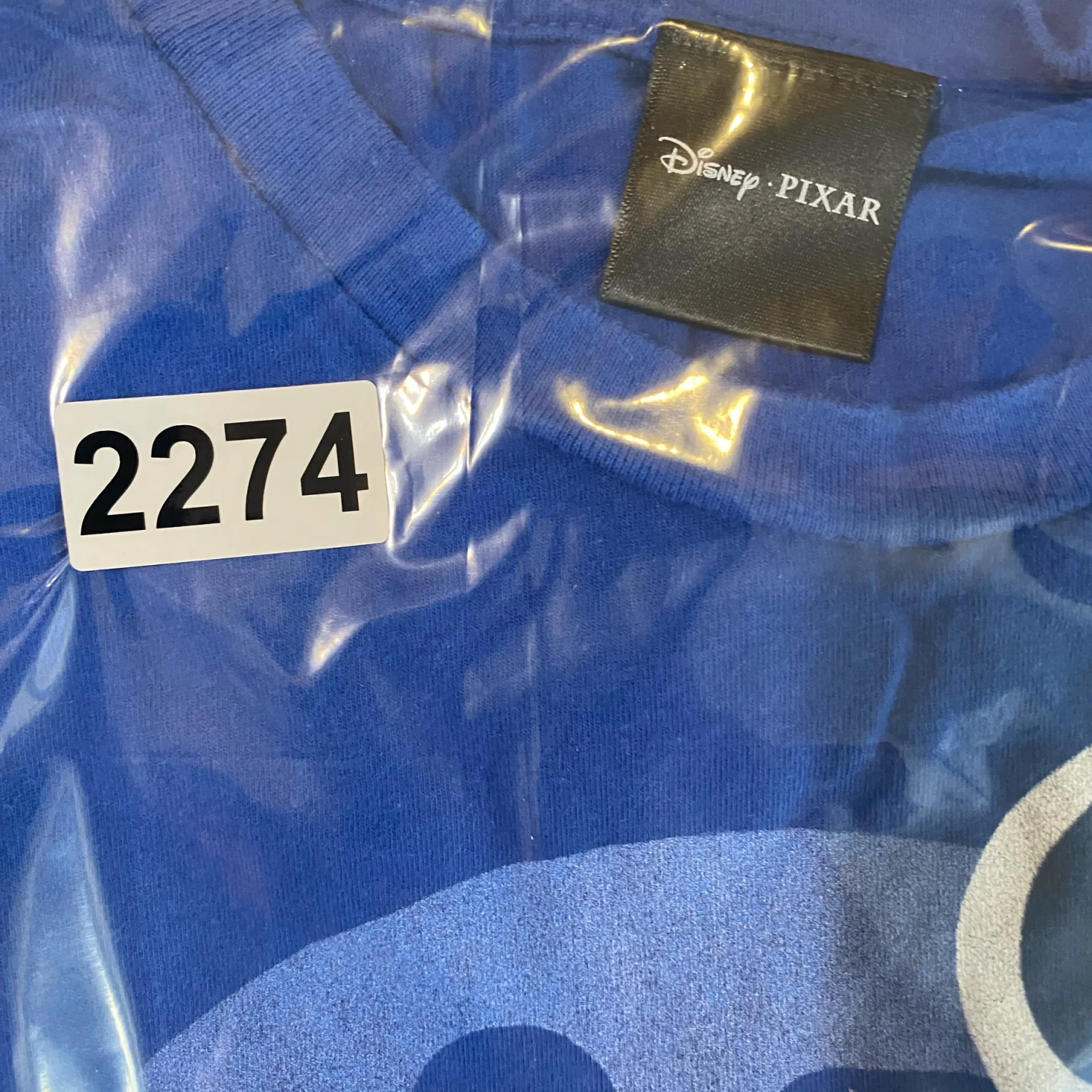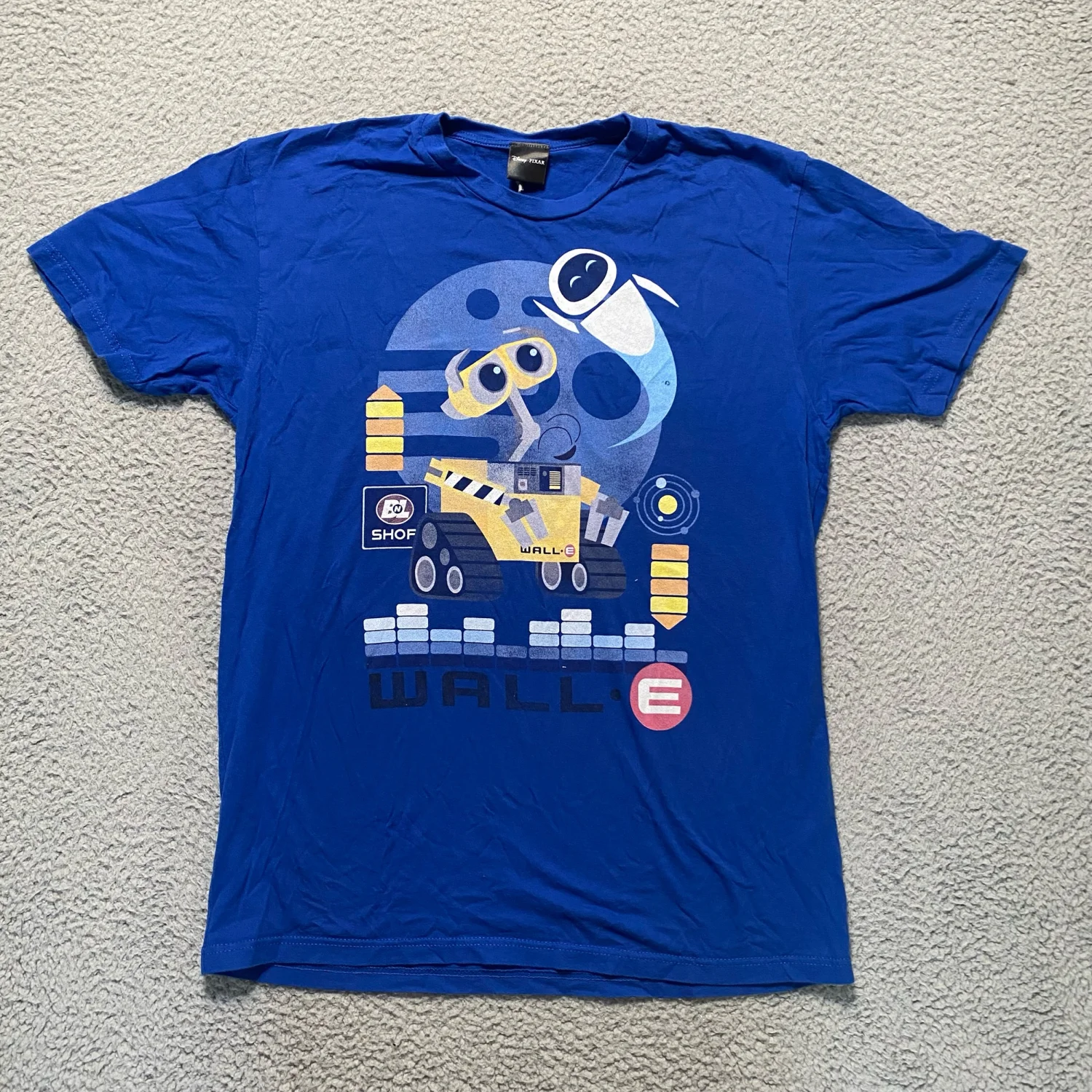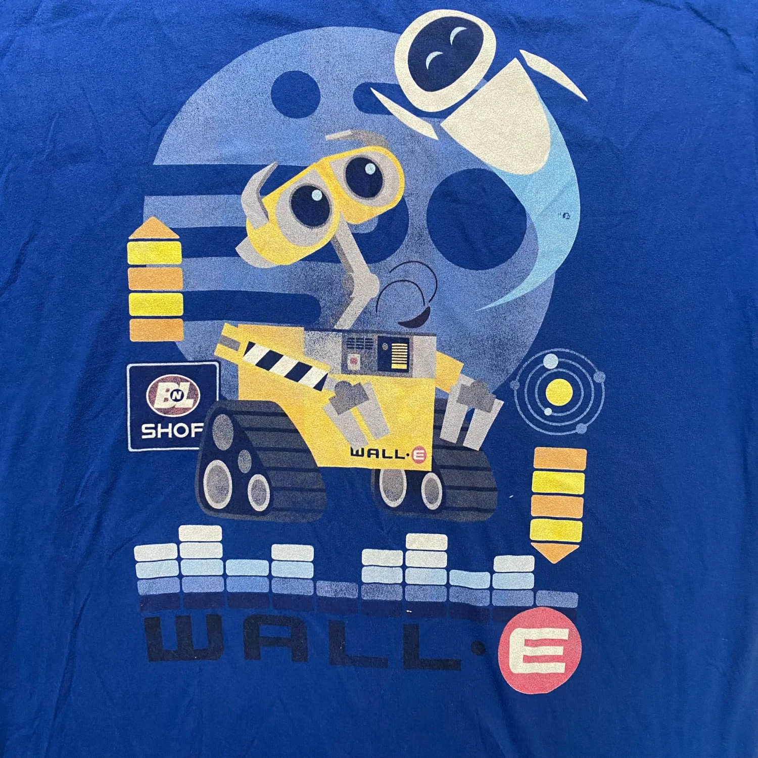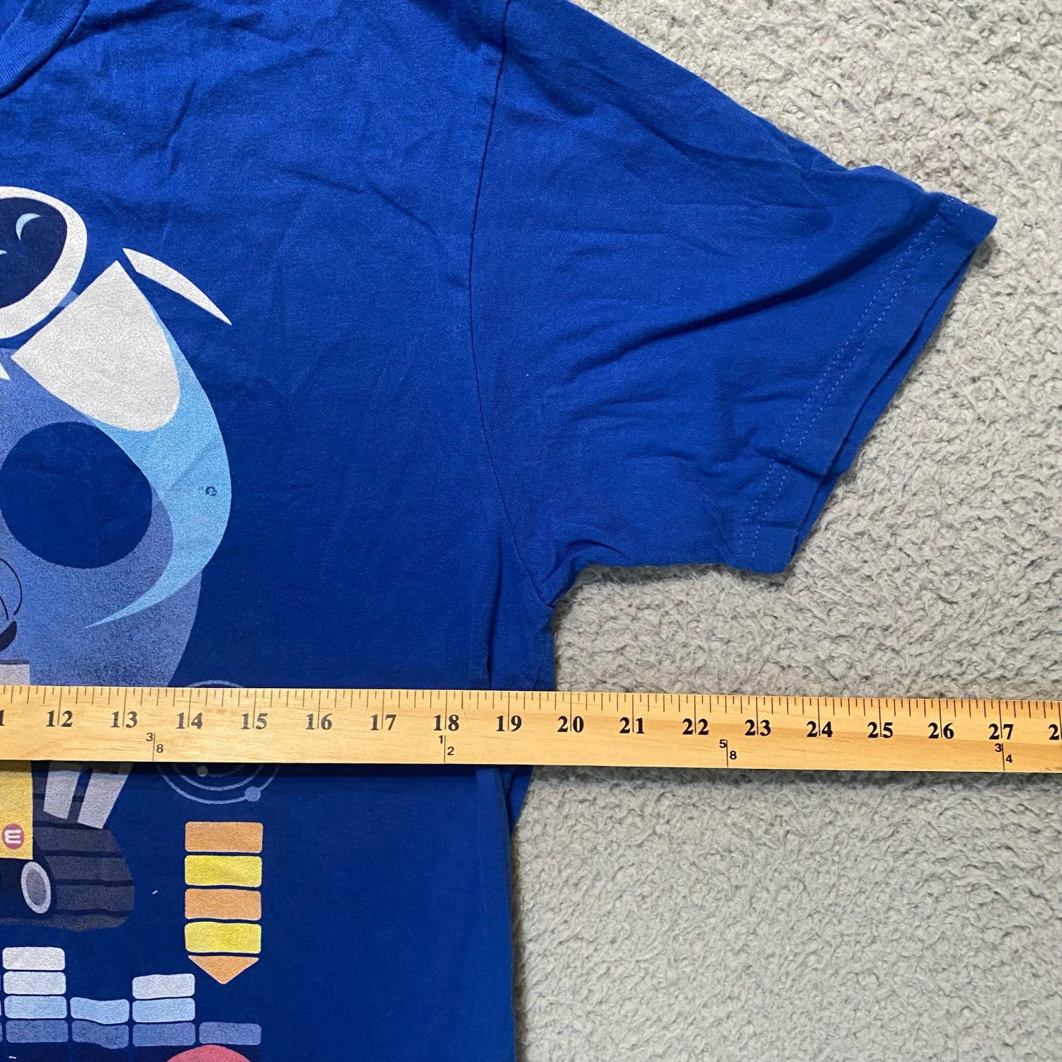 Disney Pixar WALL-E and EVE Flight Graphic Cotton T-Shirt Royal Blue Men’s Size Large