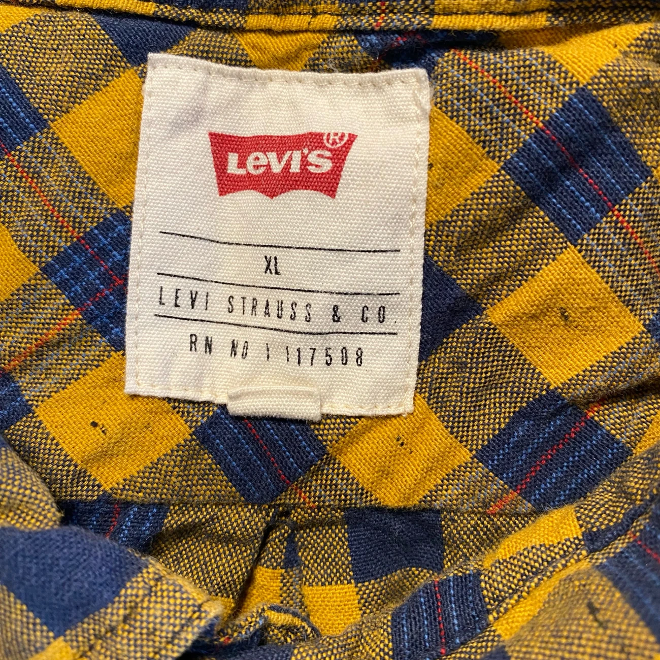 Levi's Long Sleeve Blue & Yellow Check Plaid Button Up Shirt Men's Size XL