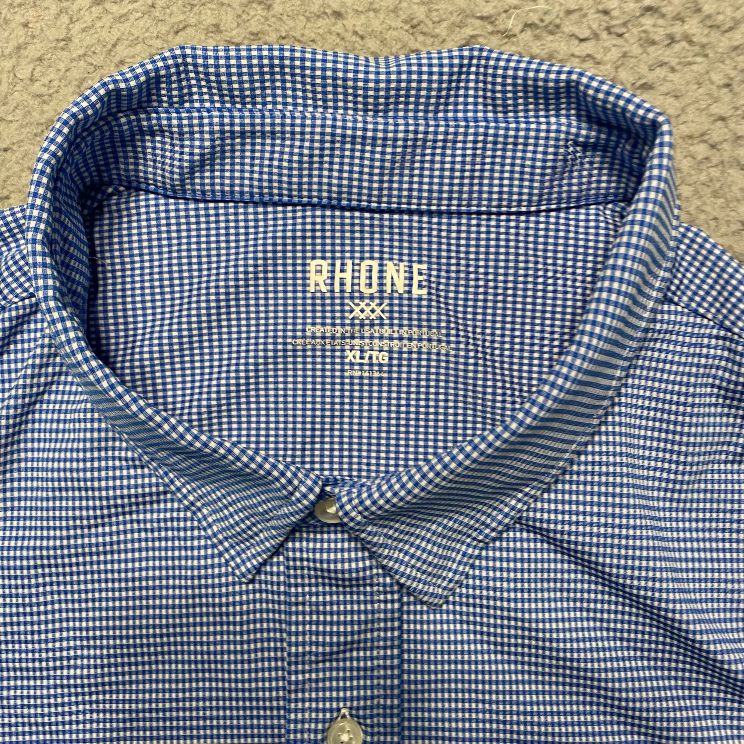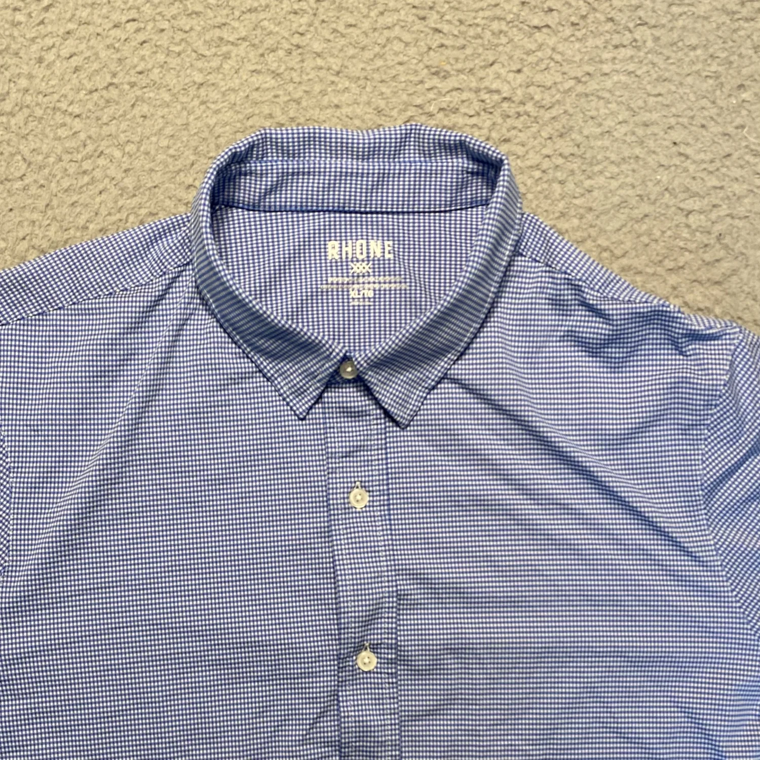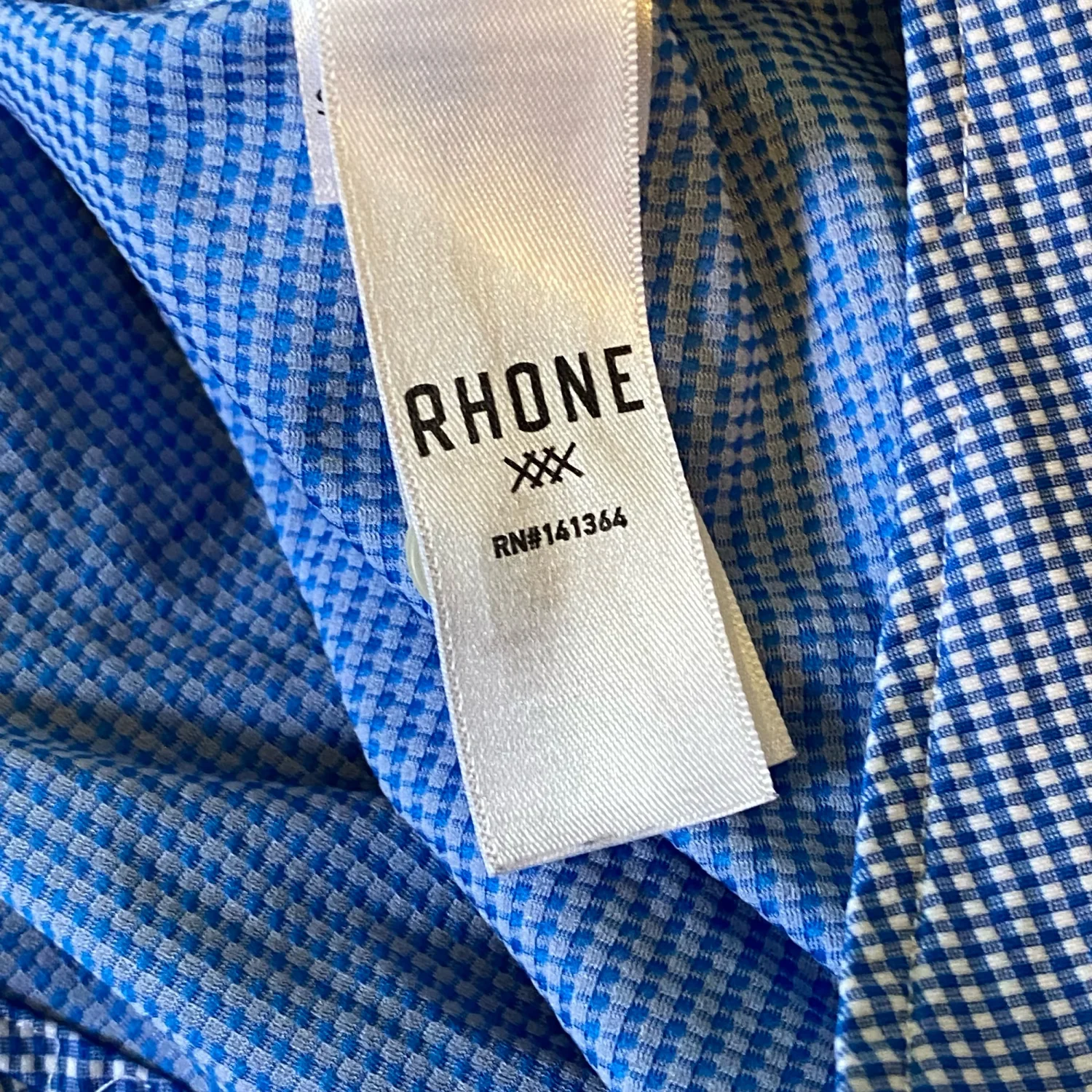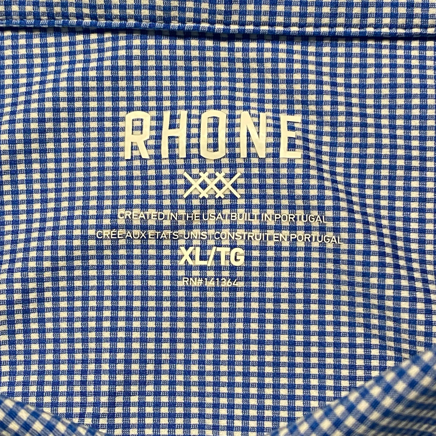 Rhone Blue Checked Gingham Nylon Stretch Commuter Business Button Down Long Sleeve Shirt Men’s Size XL