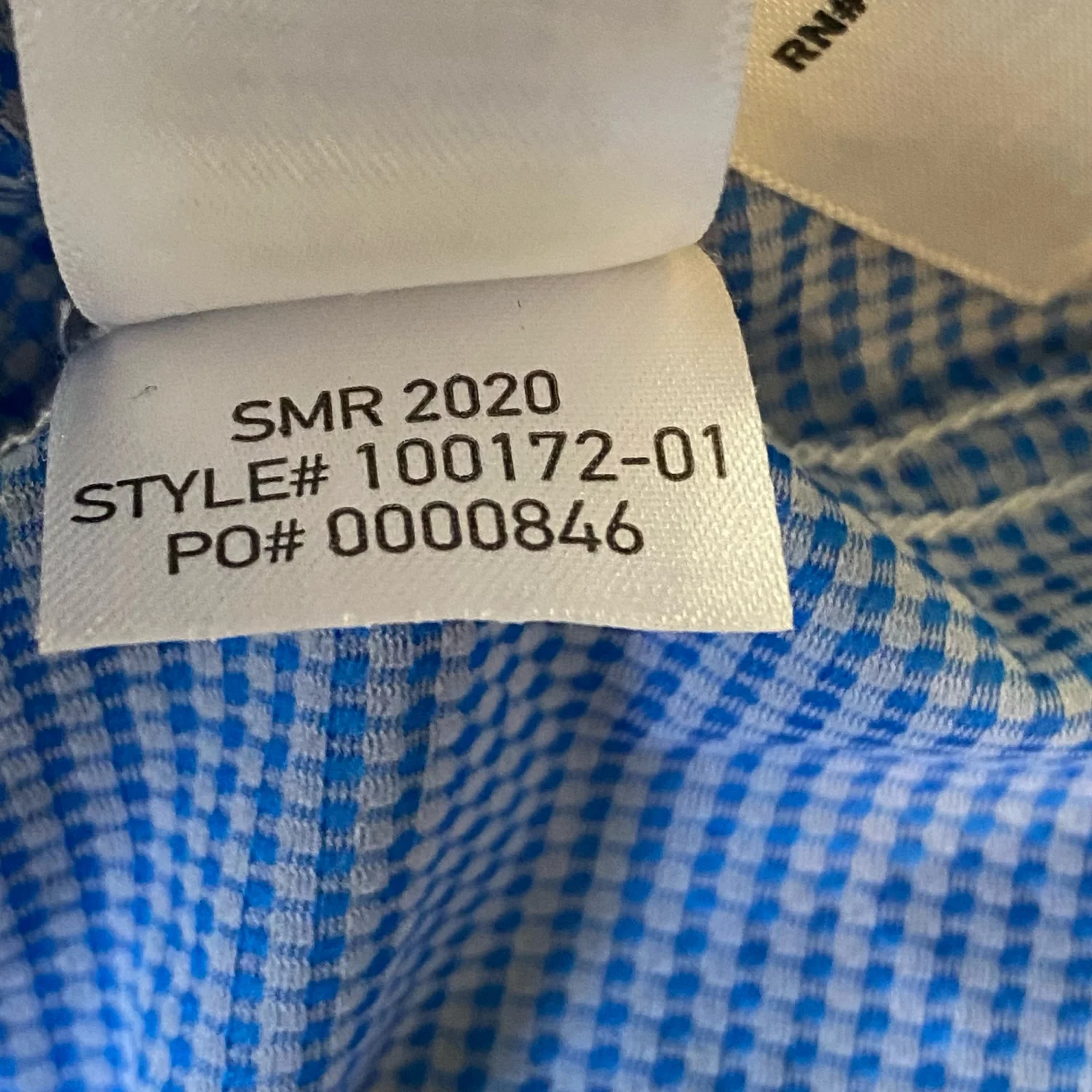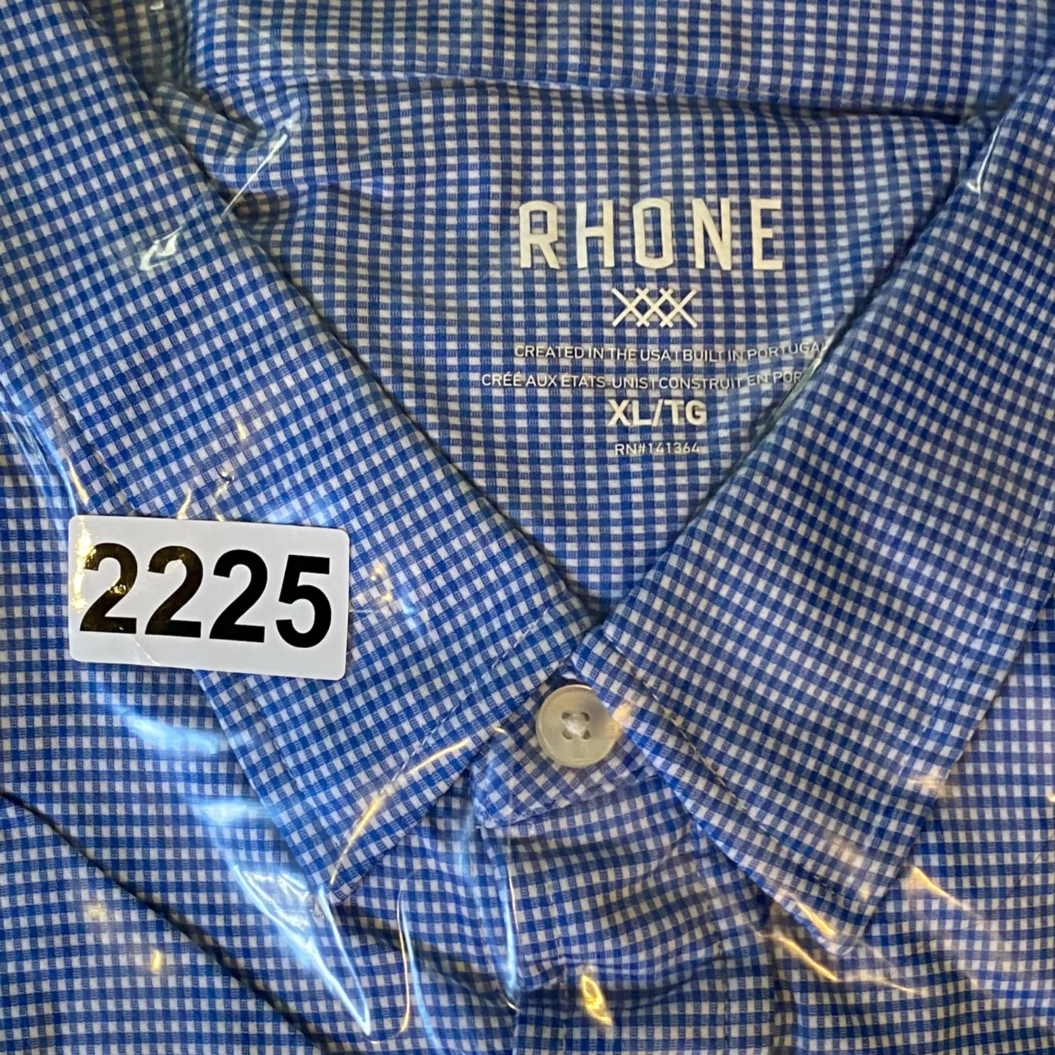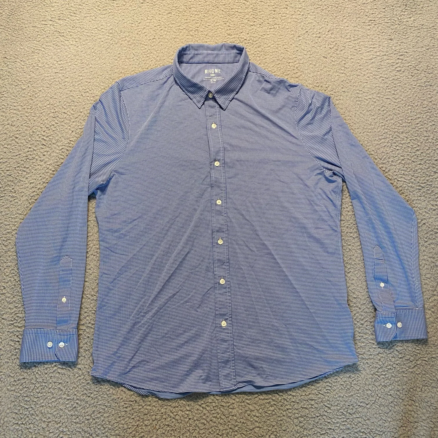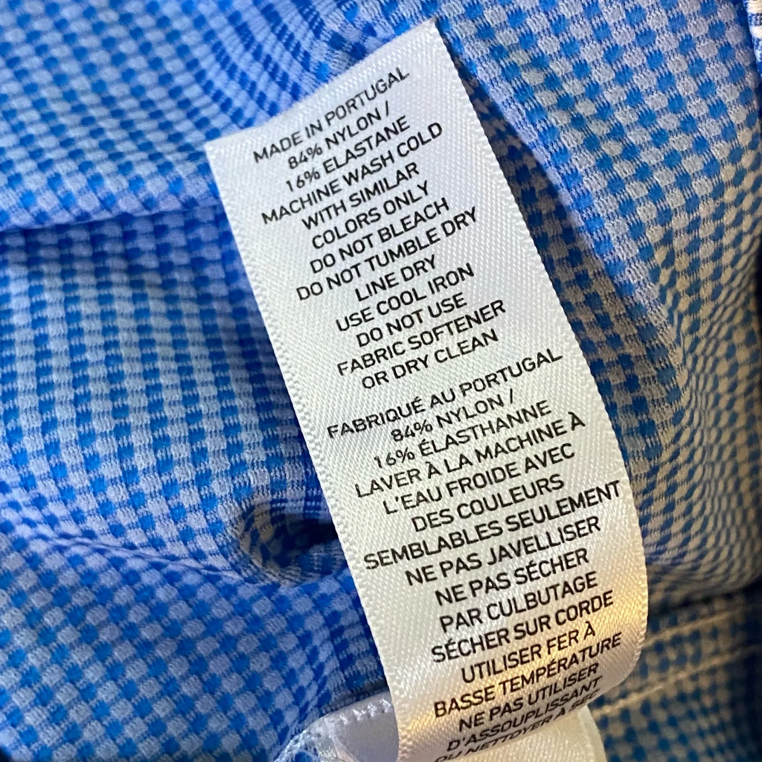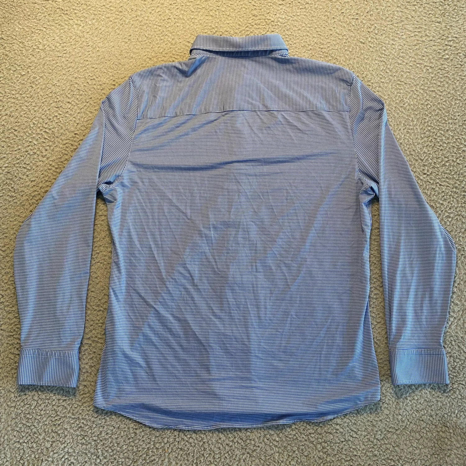 Rhone Blue Checked Gingham Nylon Stretch Commuter Business Button Down Long Sleeve Shirt Men’s Size XL