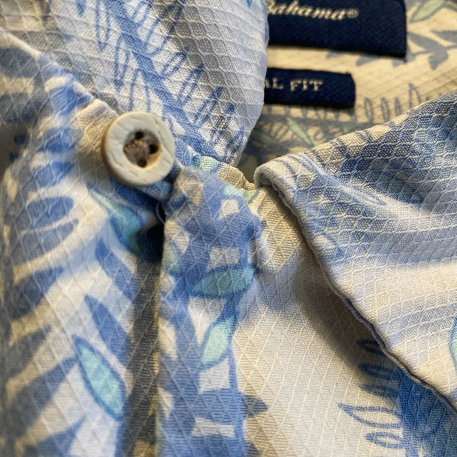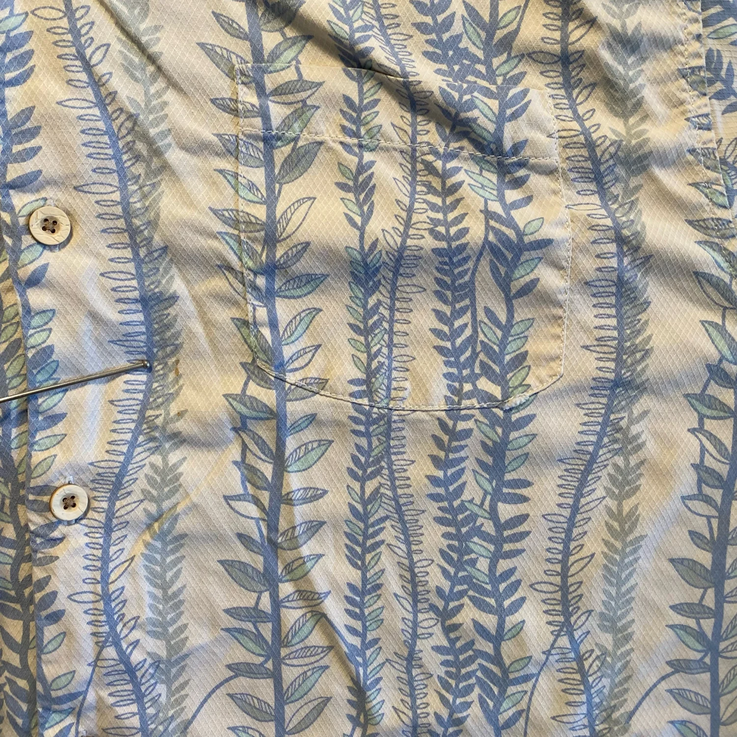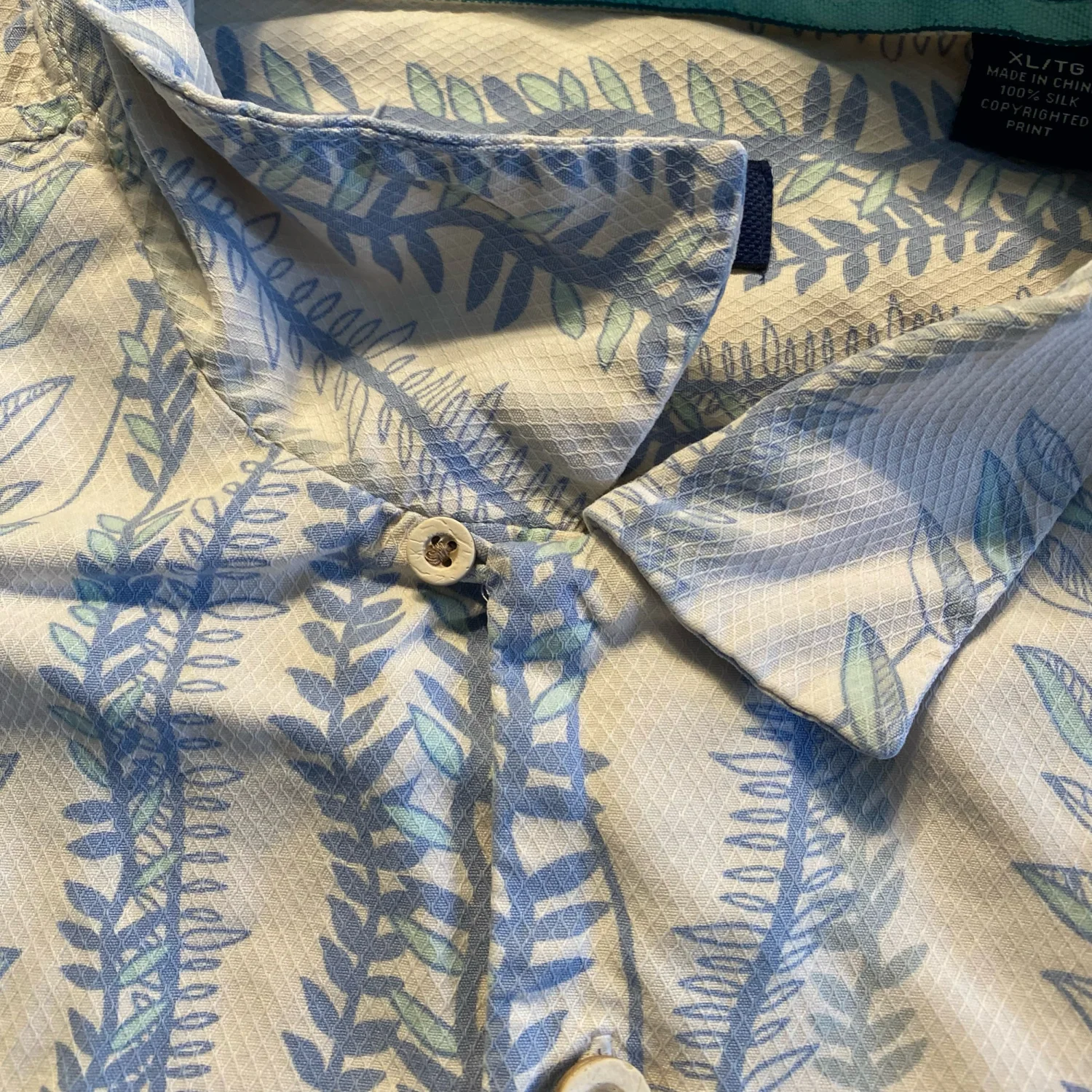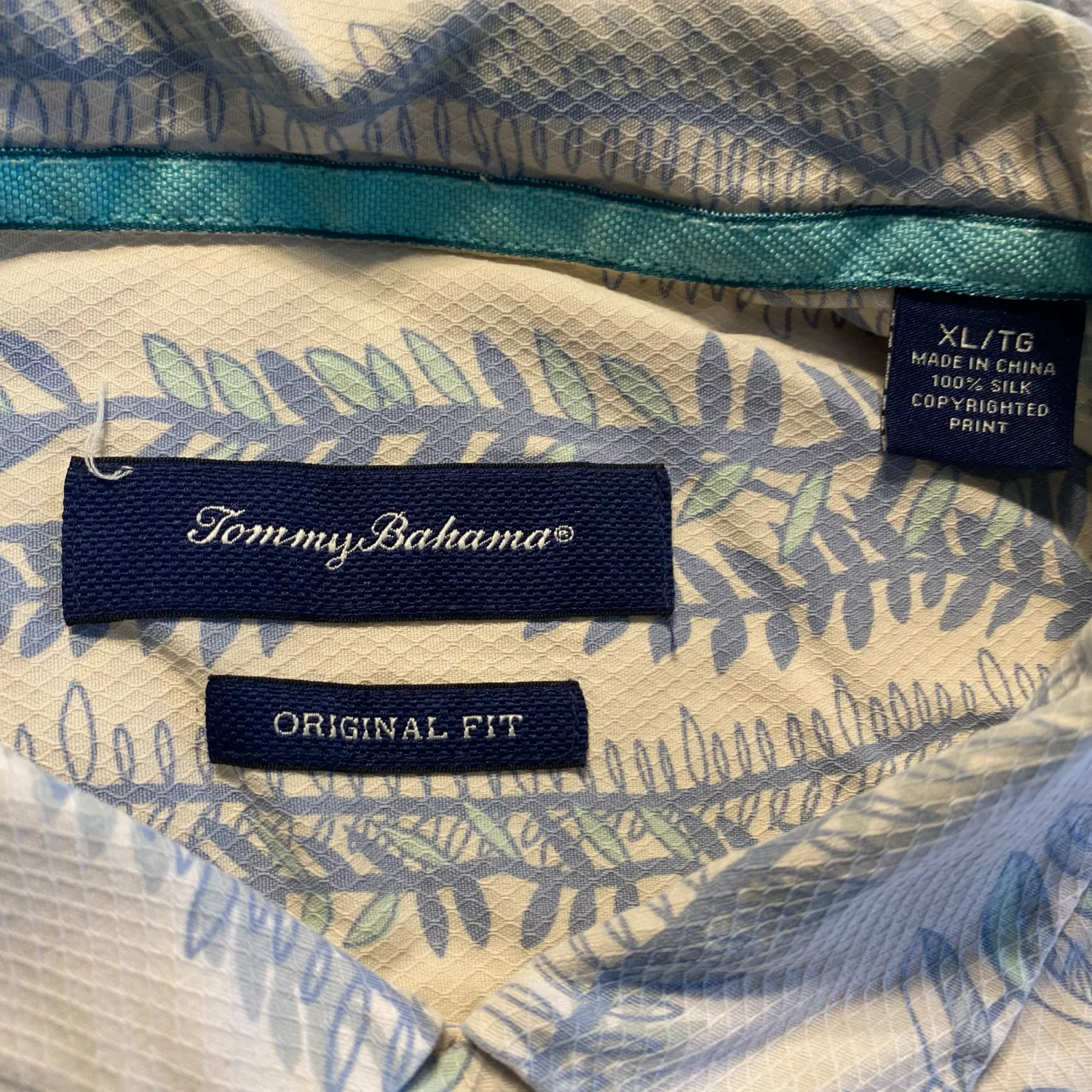 Tommy Bahama Blue White Seaweed Kelp All Over Print Original Fit Loop Collar Light Weight Men’s Size XL