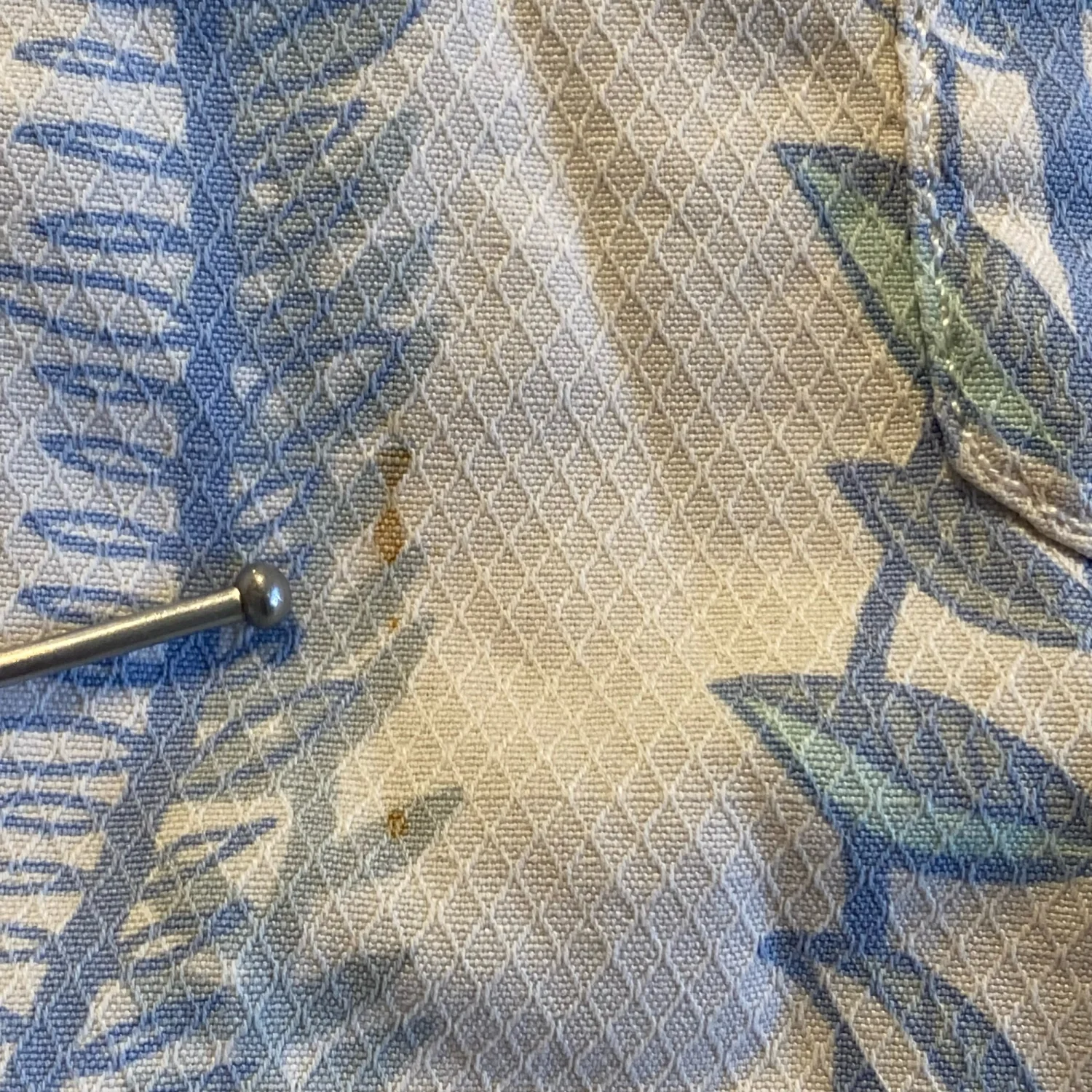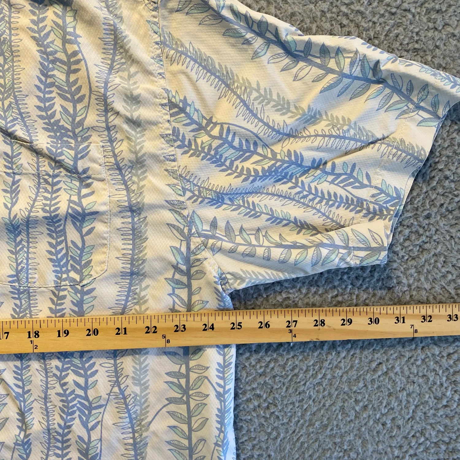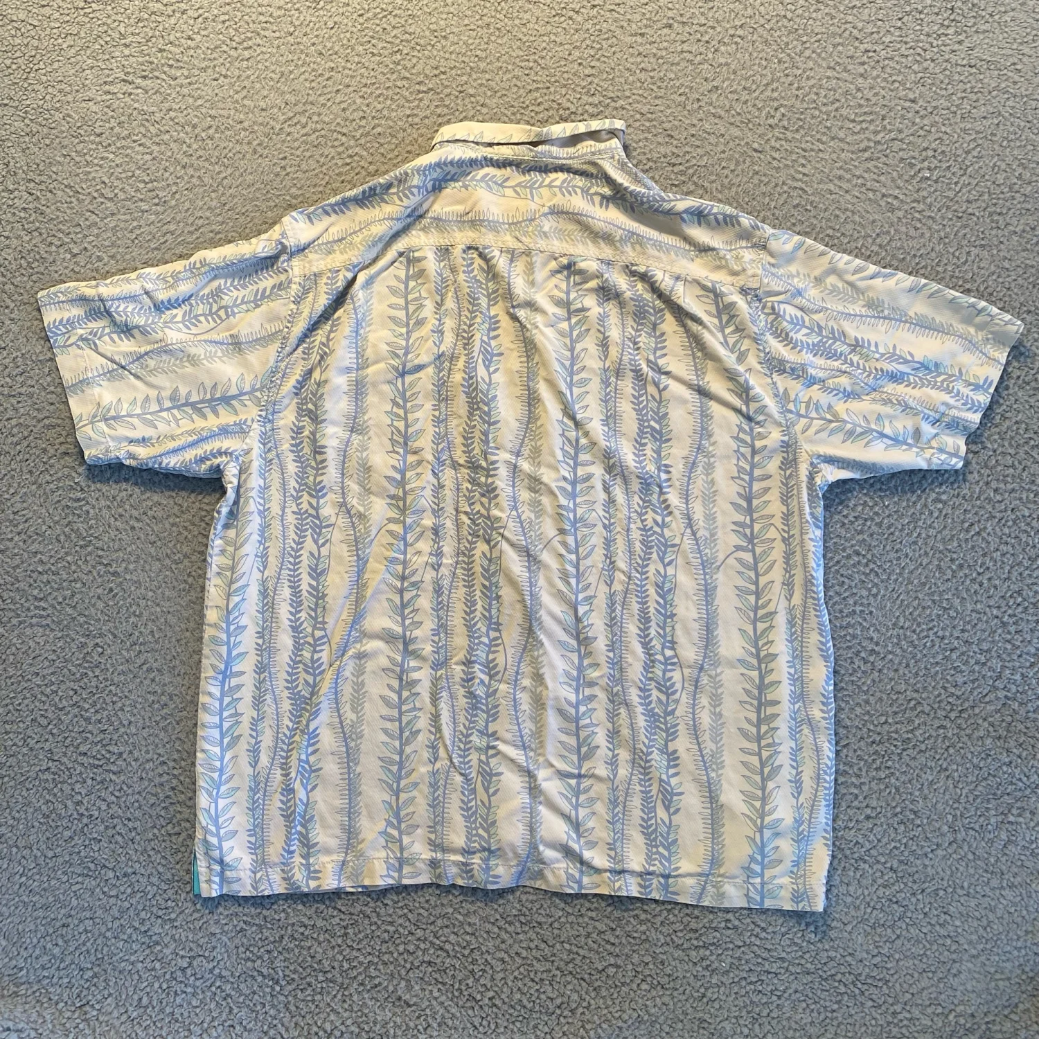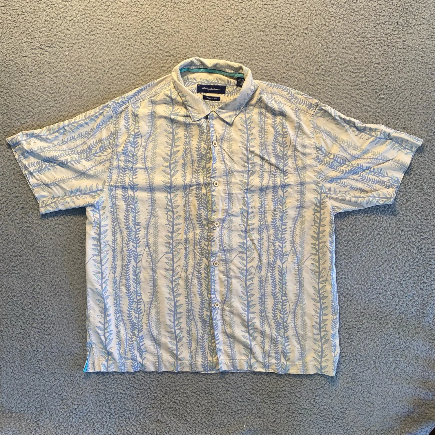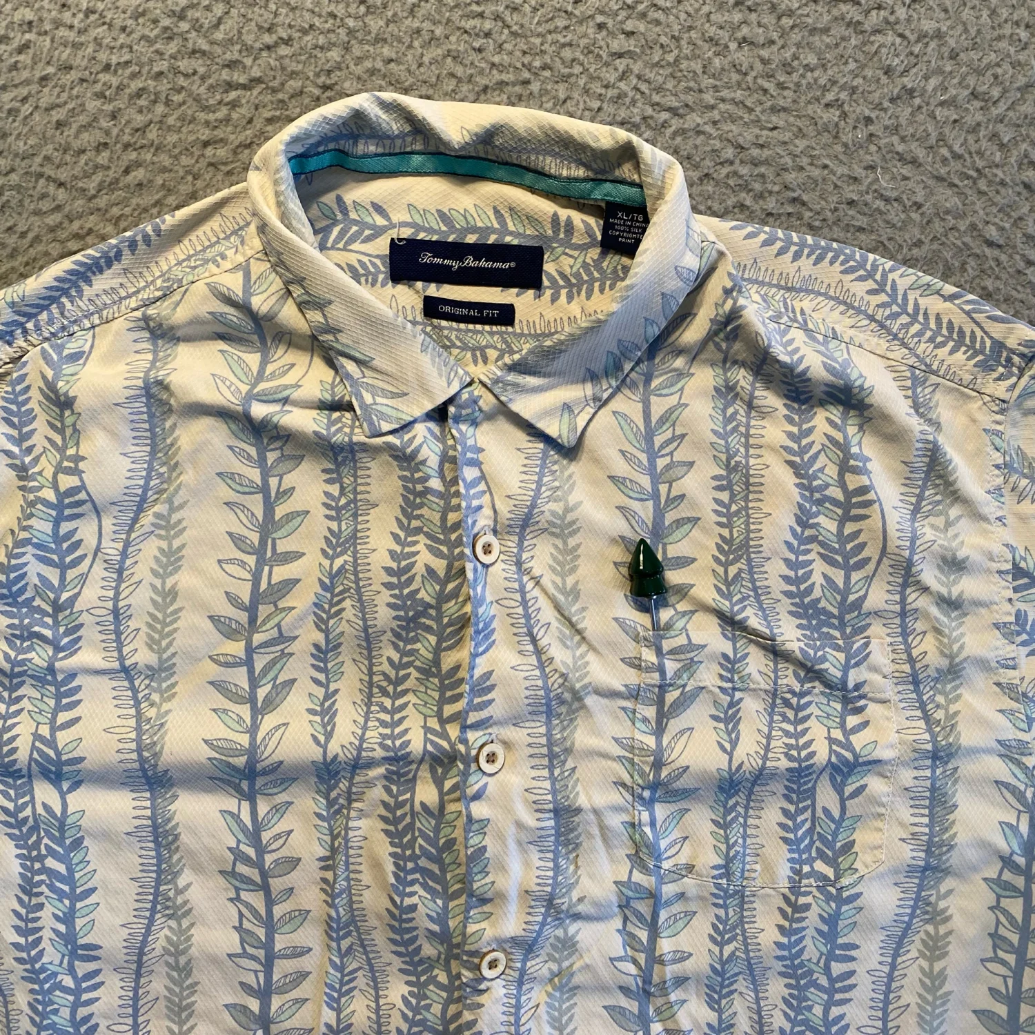 Tommy Bahama Blue White Seaweed Kelp All Over Print Original Fit Loop Collar Light Weight Men’s Size XL