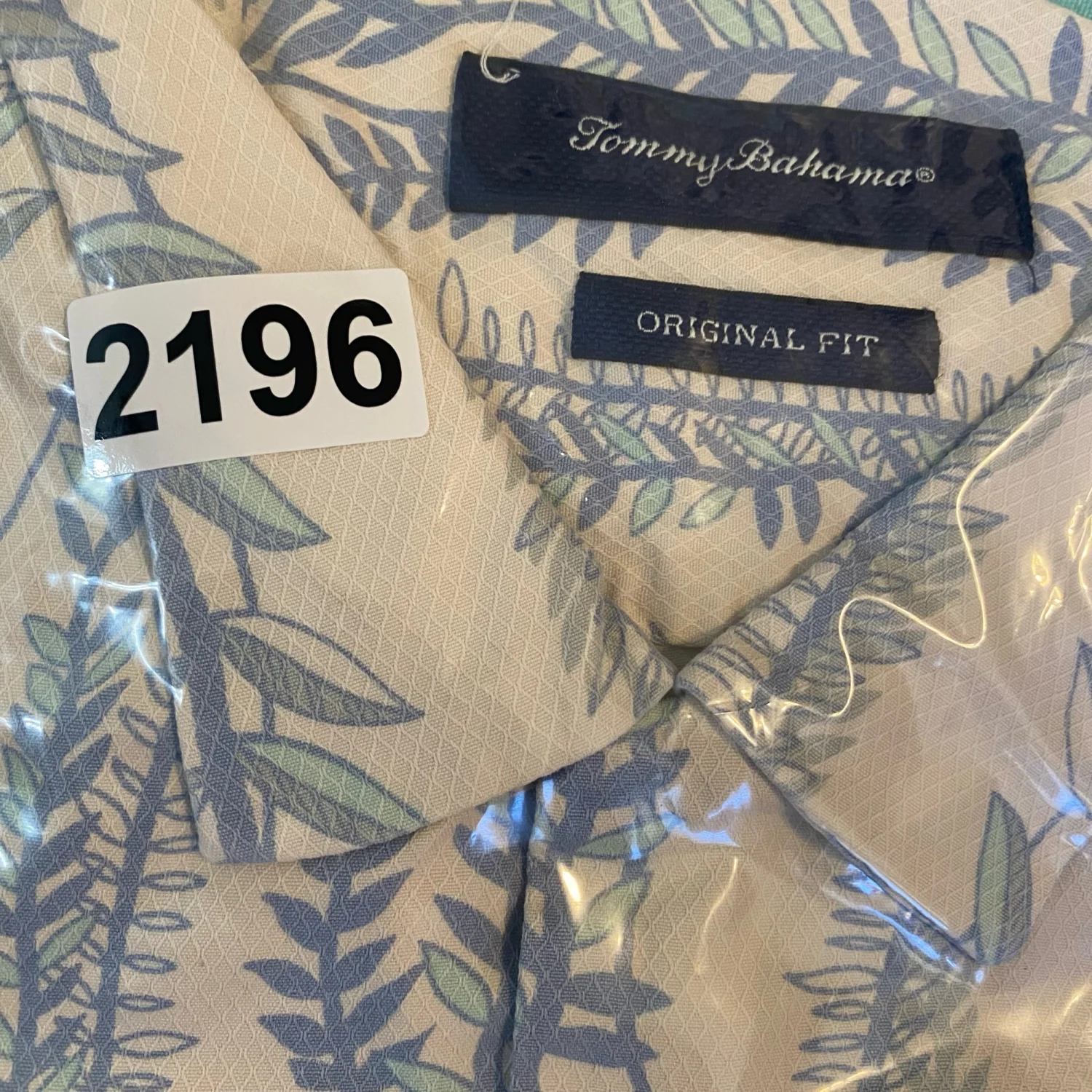 Tommy Bahama Blue White Seaweed AOP Loop Collar Original Fit Light Weight Men XL