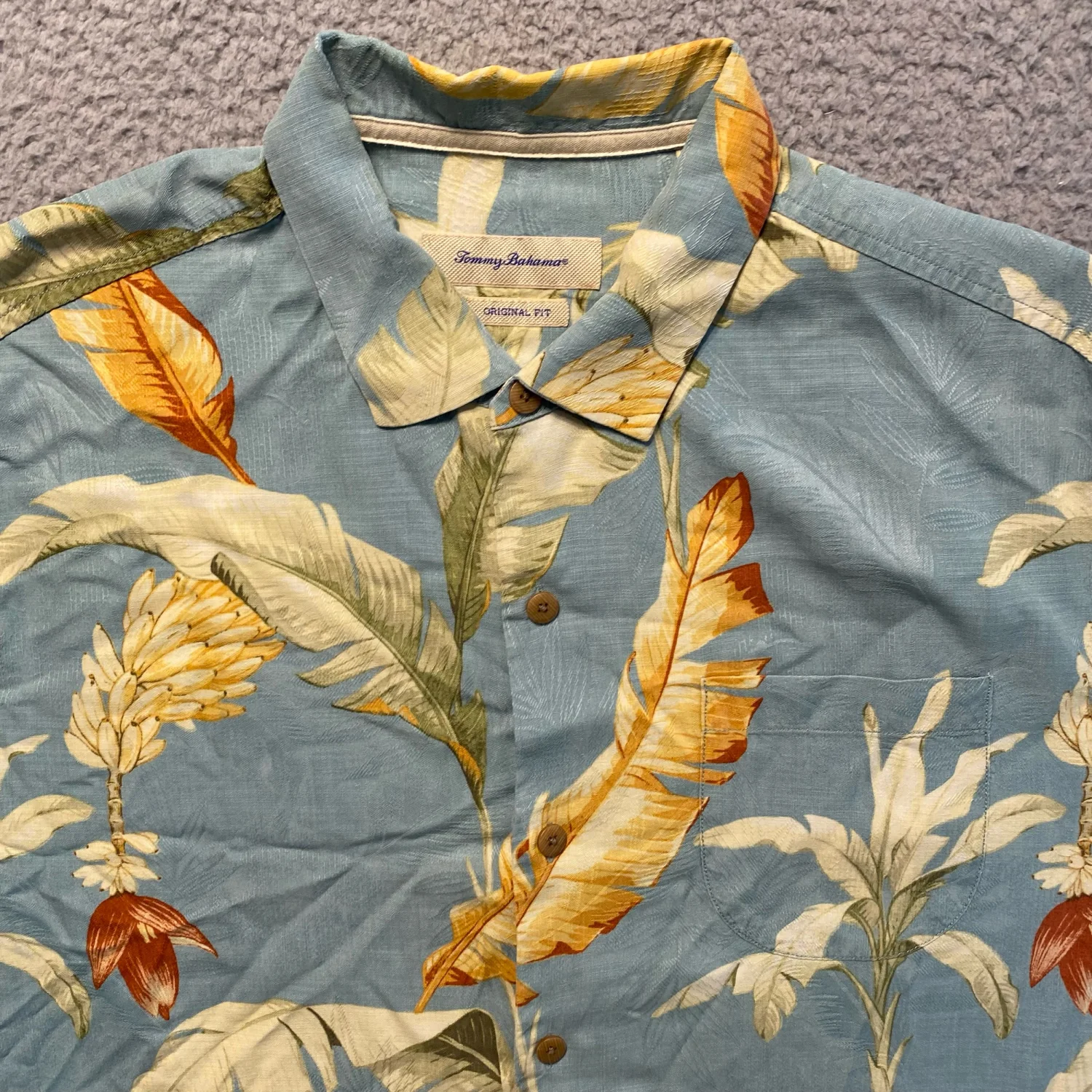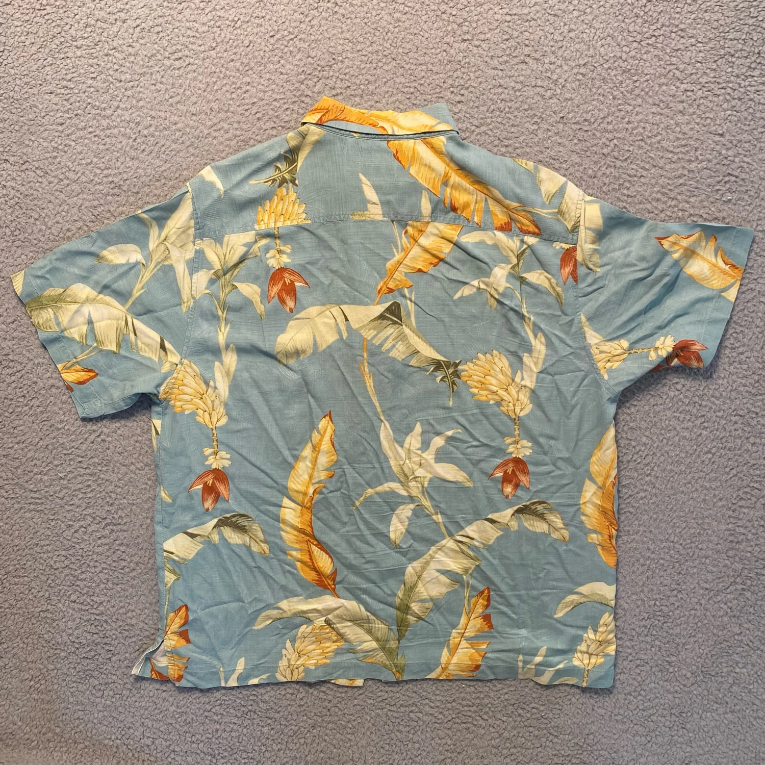 Tommy Bahama Original Fit Short Sleeve Button Up Banana Leaf Floral Print 100% Silk Hawaiian Shirt SKU: 2213