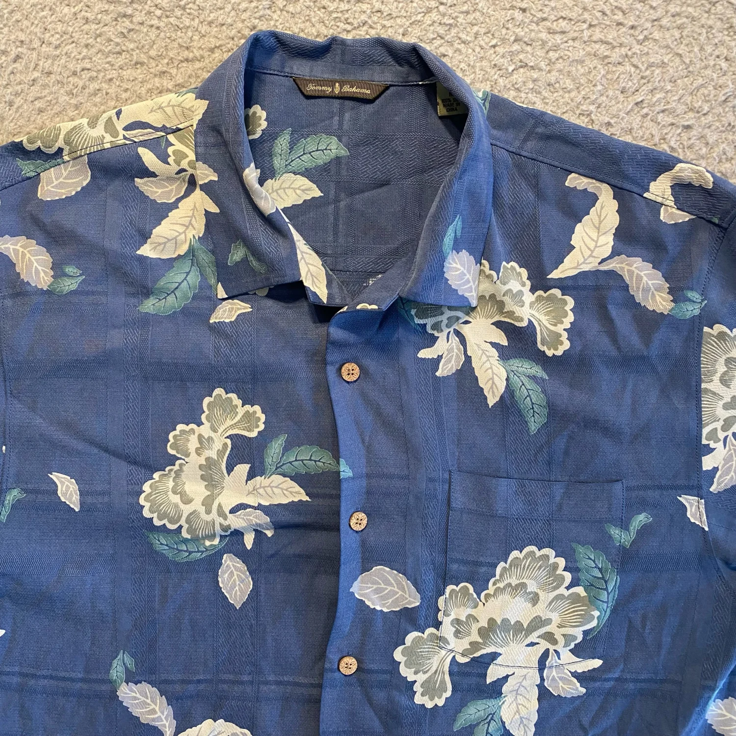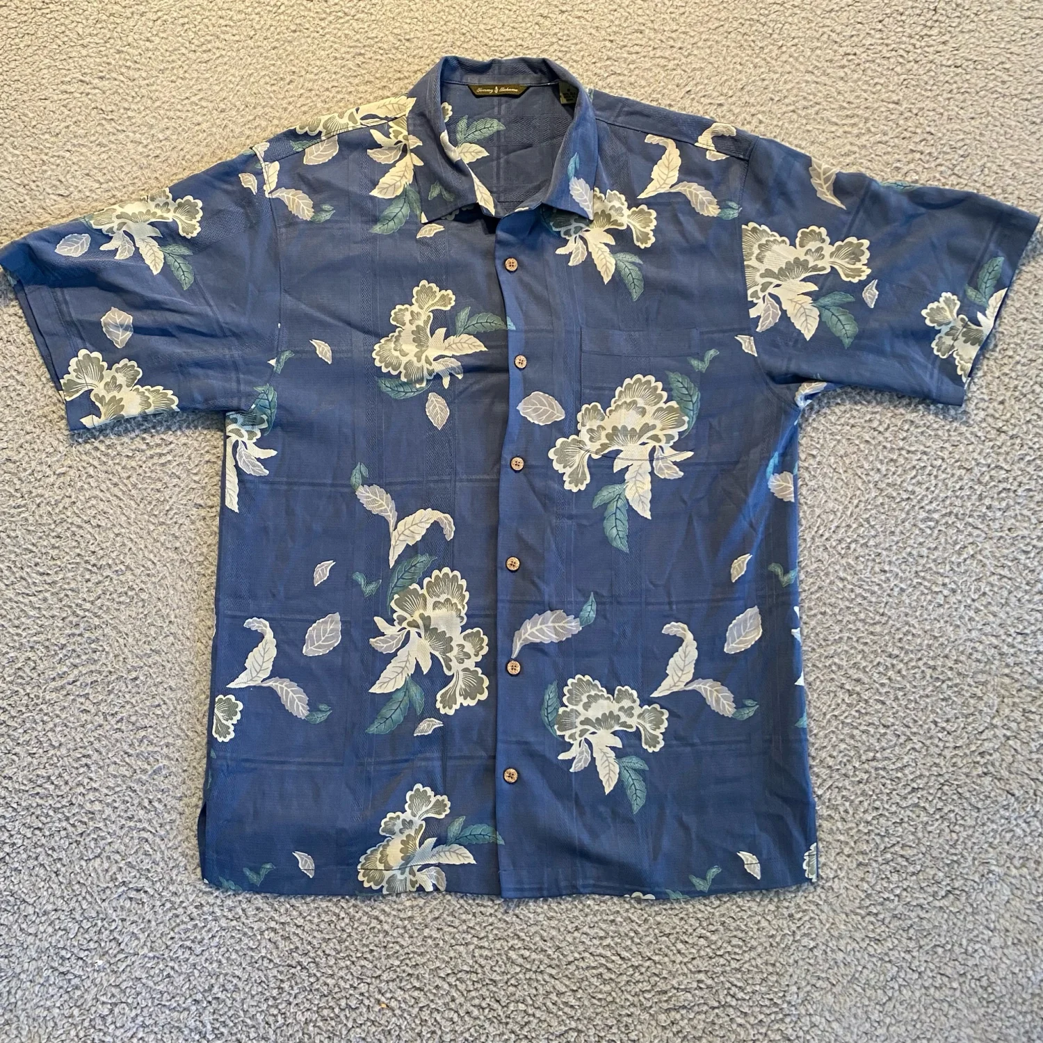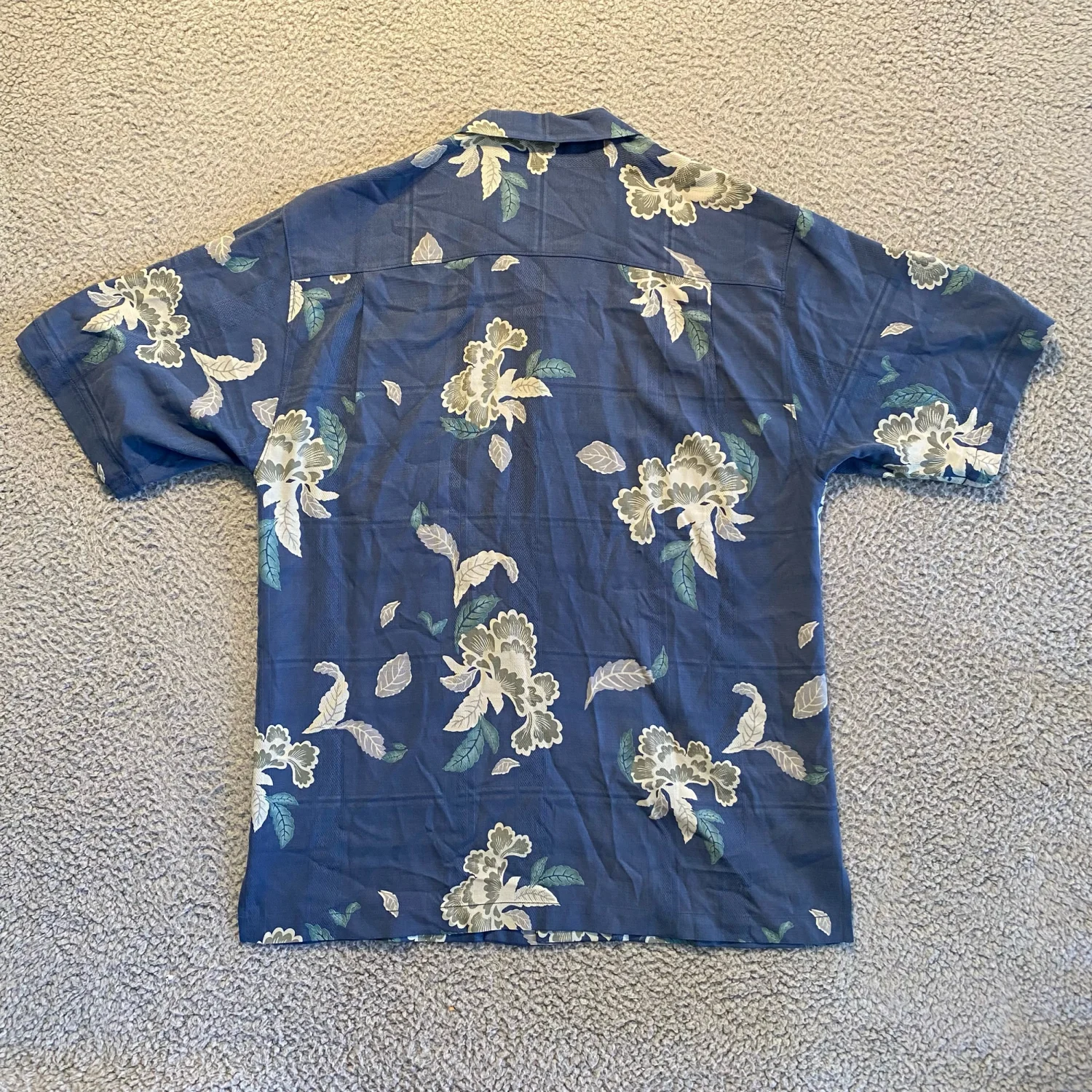 Tommy Bahama Short Sleeve Blue Floral Hawaiian Shirt 100% Silk Men’s Medium