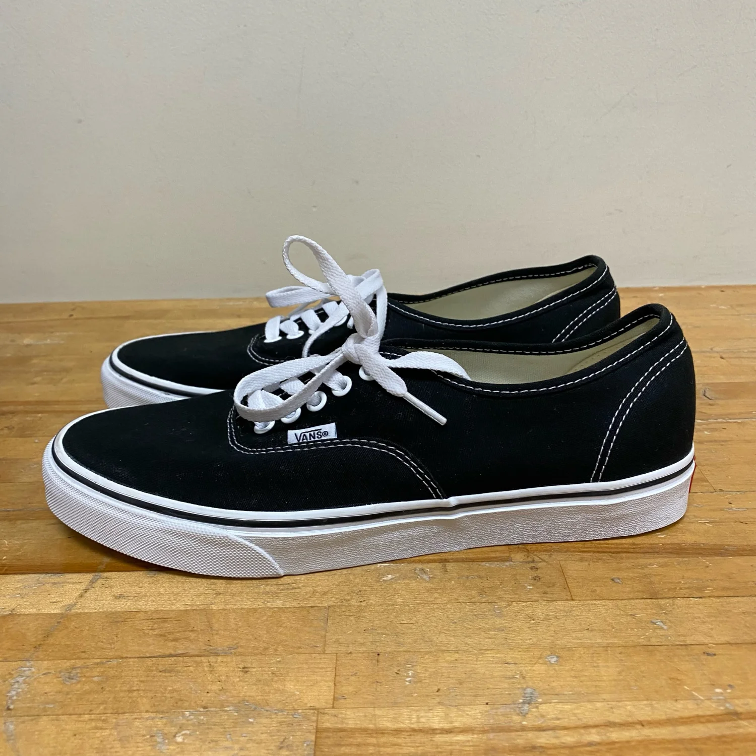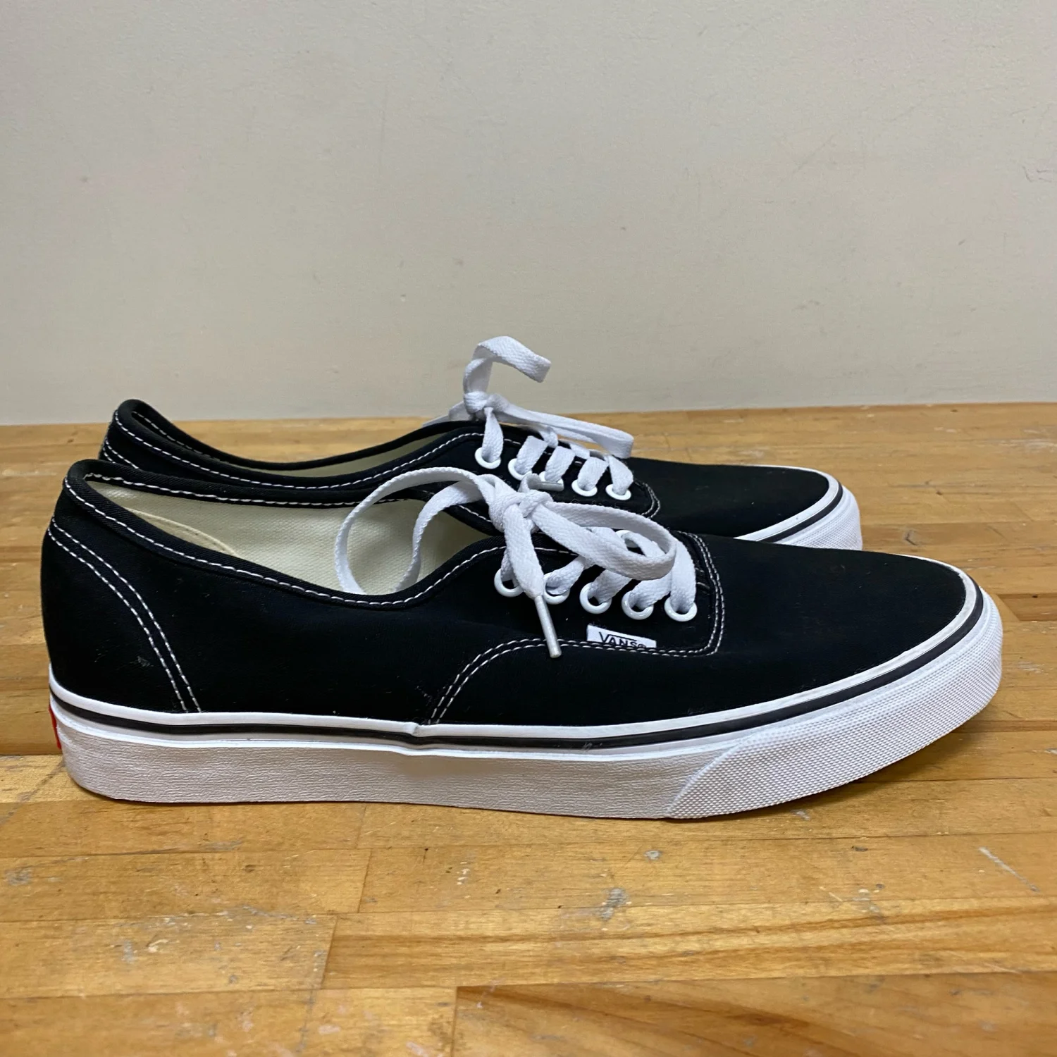 Vans Authentic Lace Up Canvas Low Top Skateboarding Black Sneakers Men Size 12