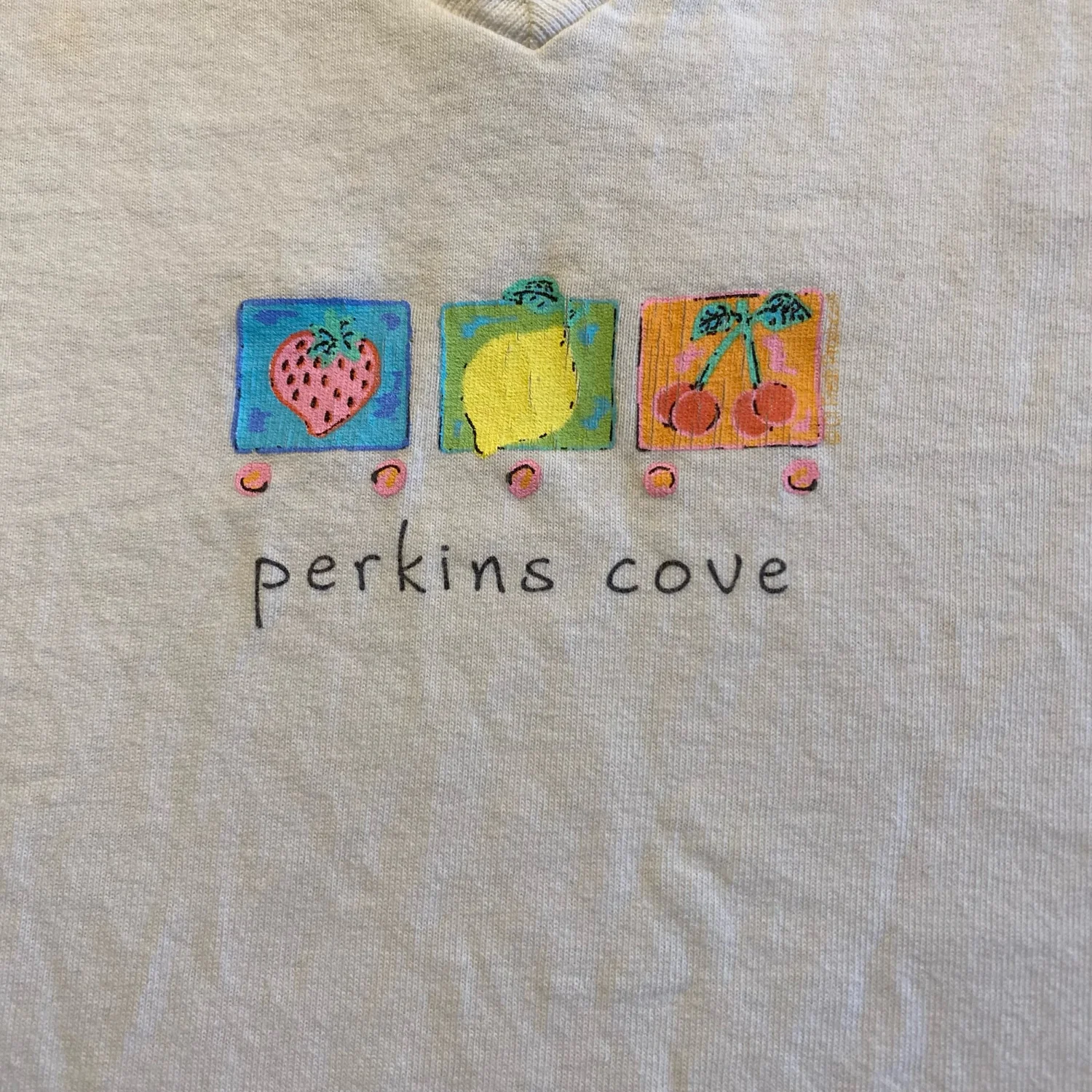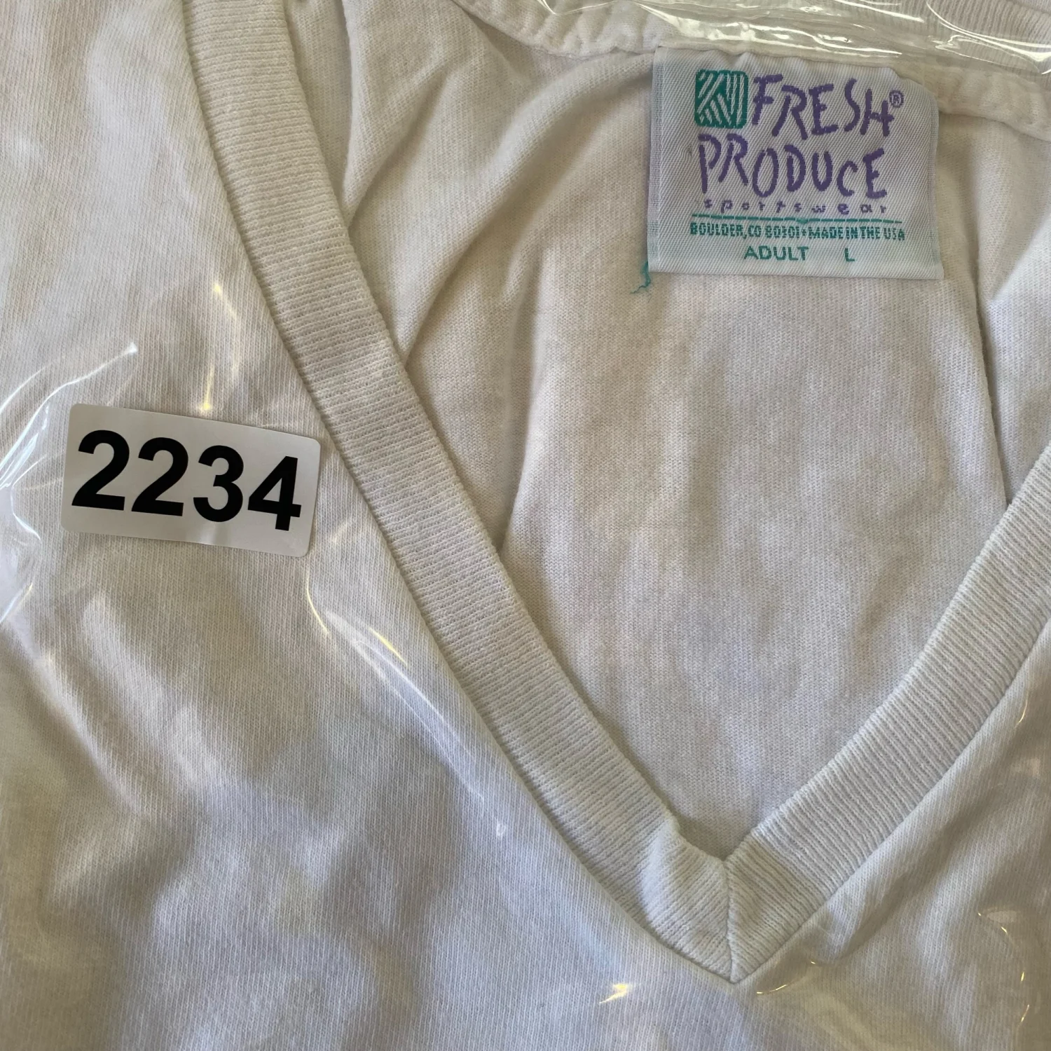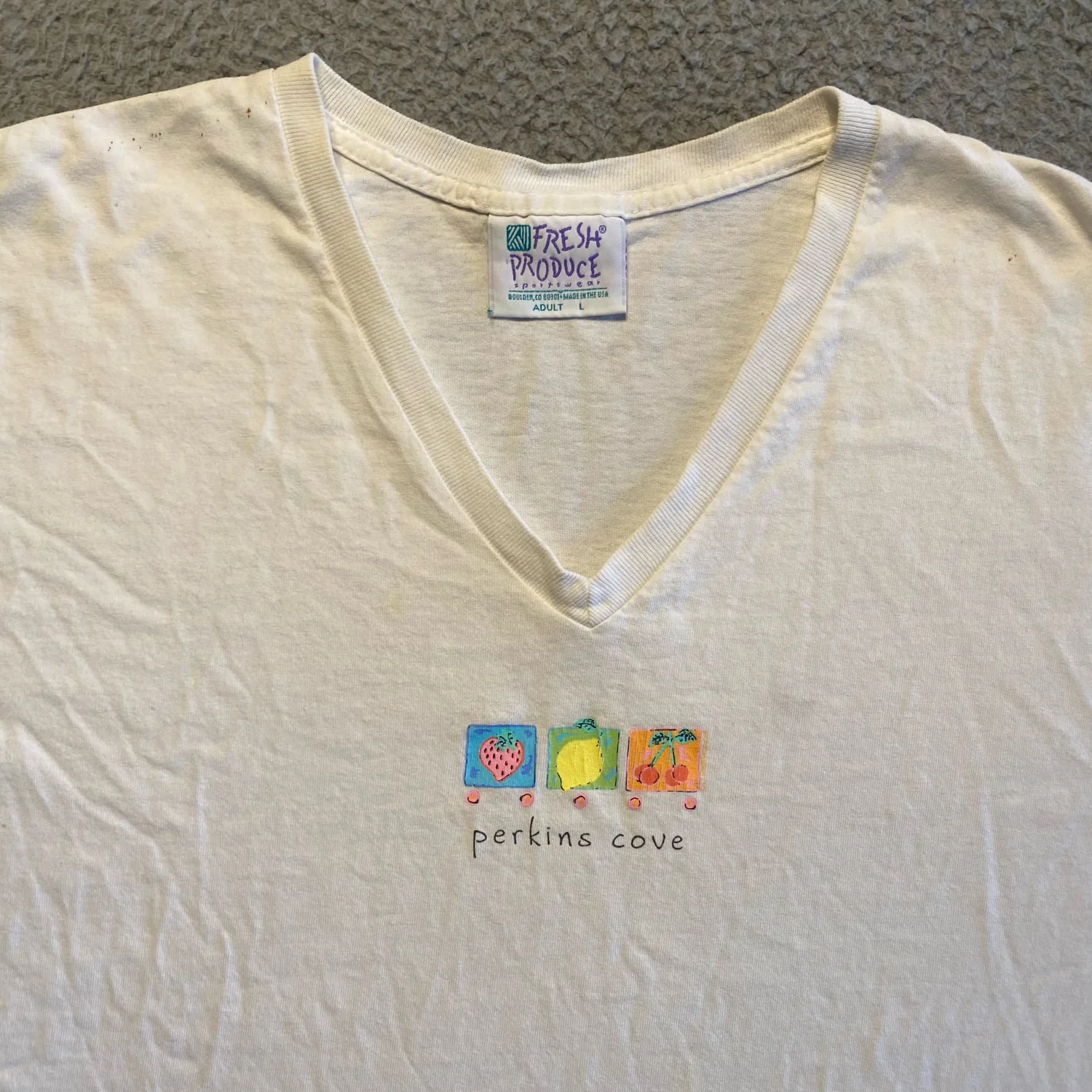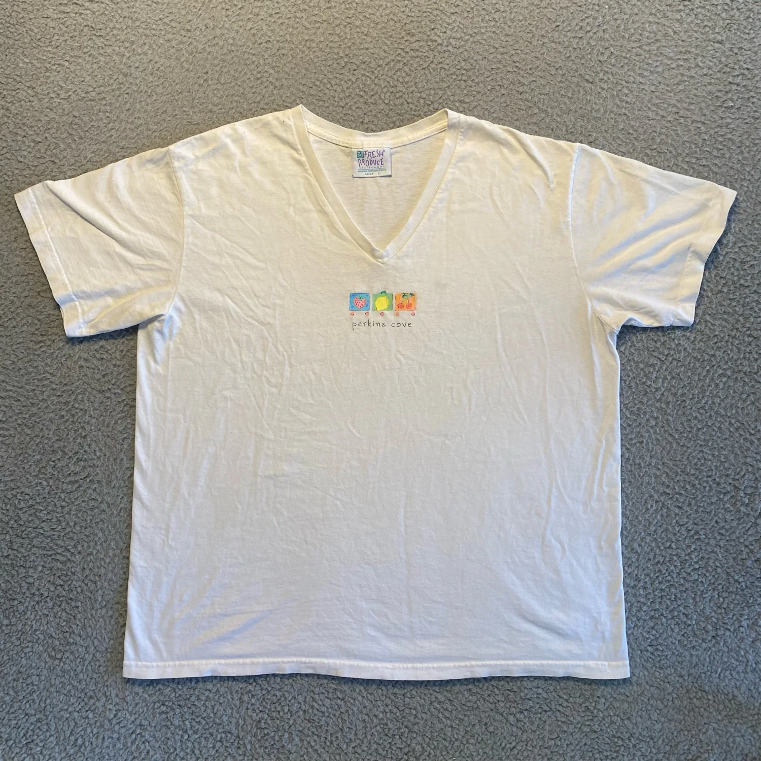 Vintage Fresh Produce Sportswear White V-Neck T-Shirt Perkins Cove Graphics Adult Large