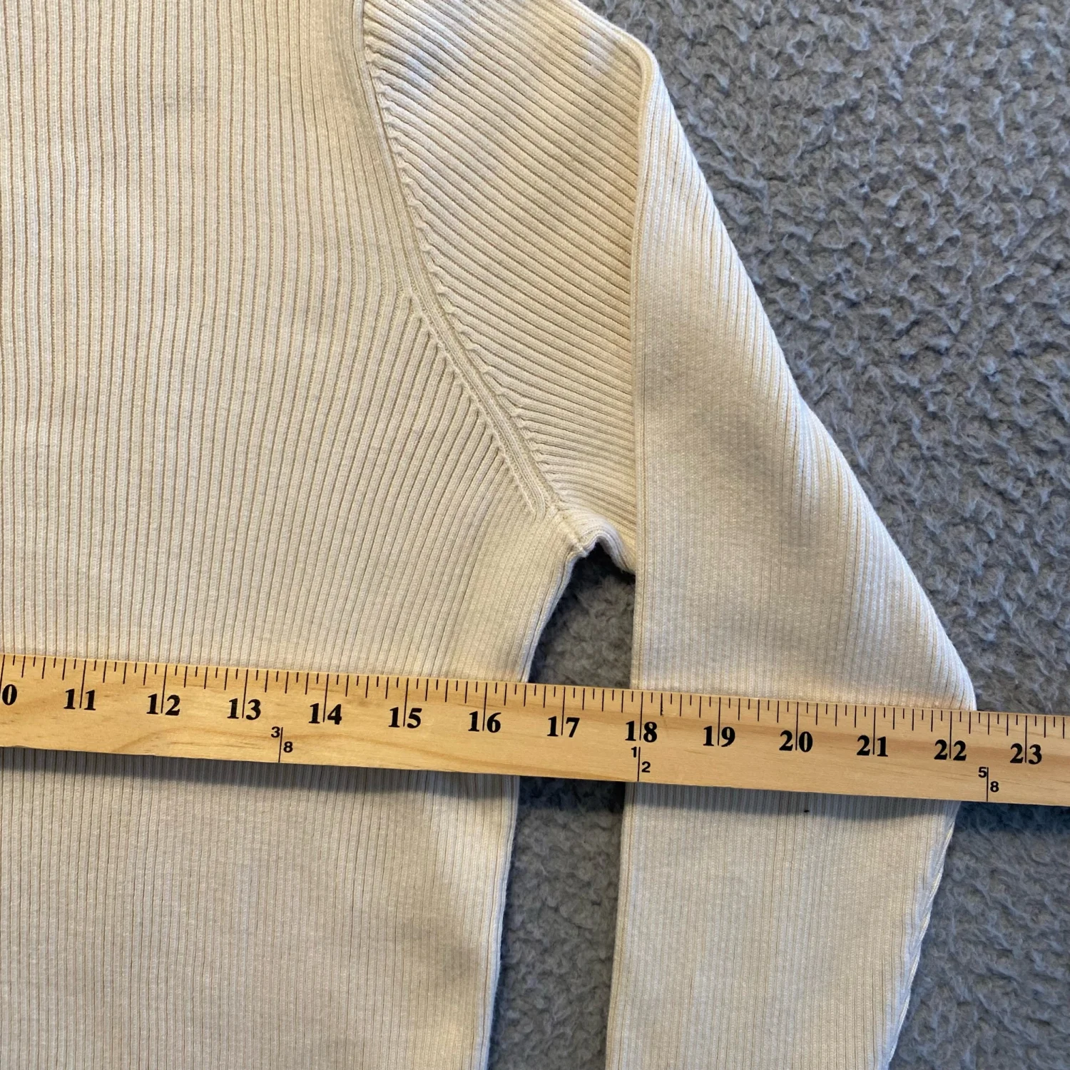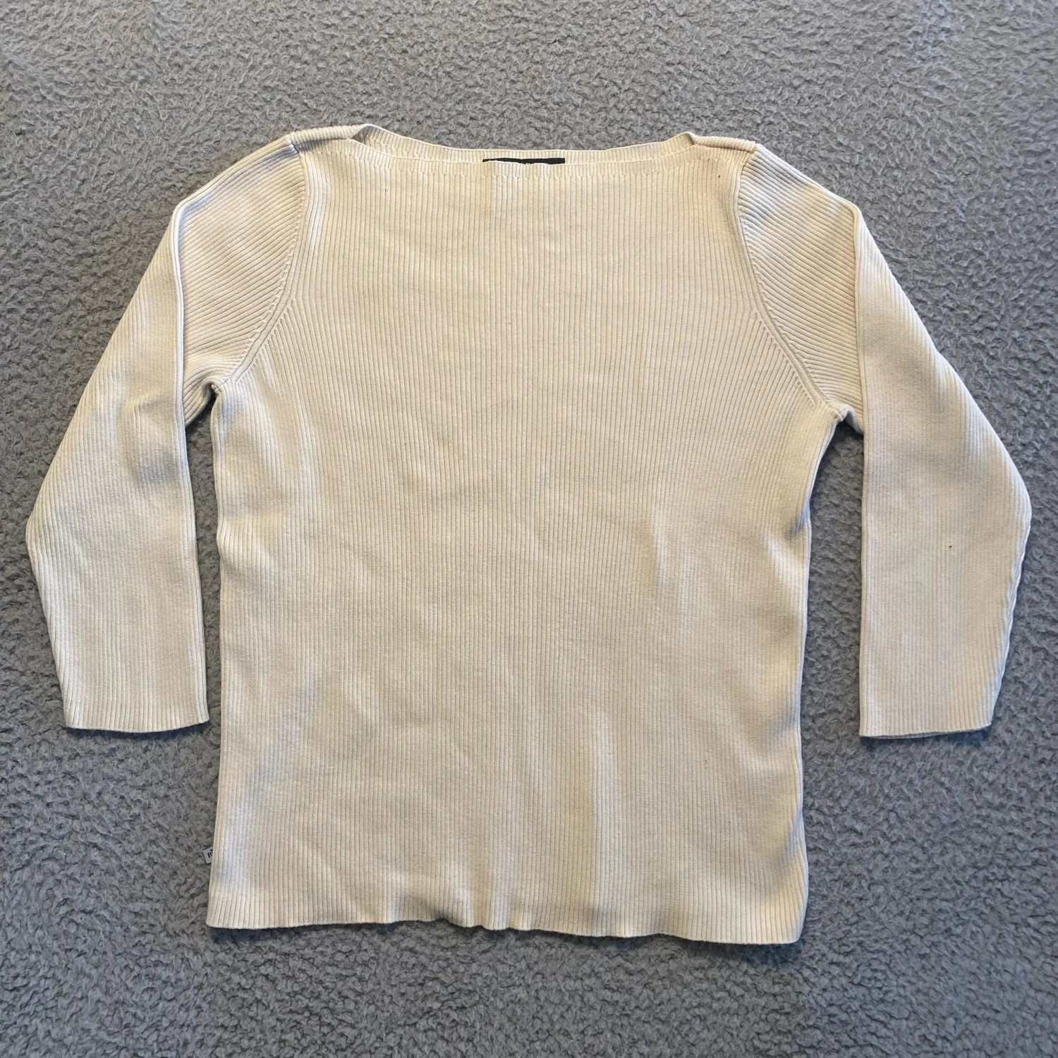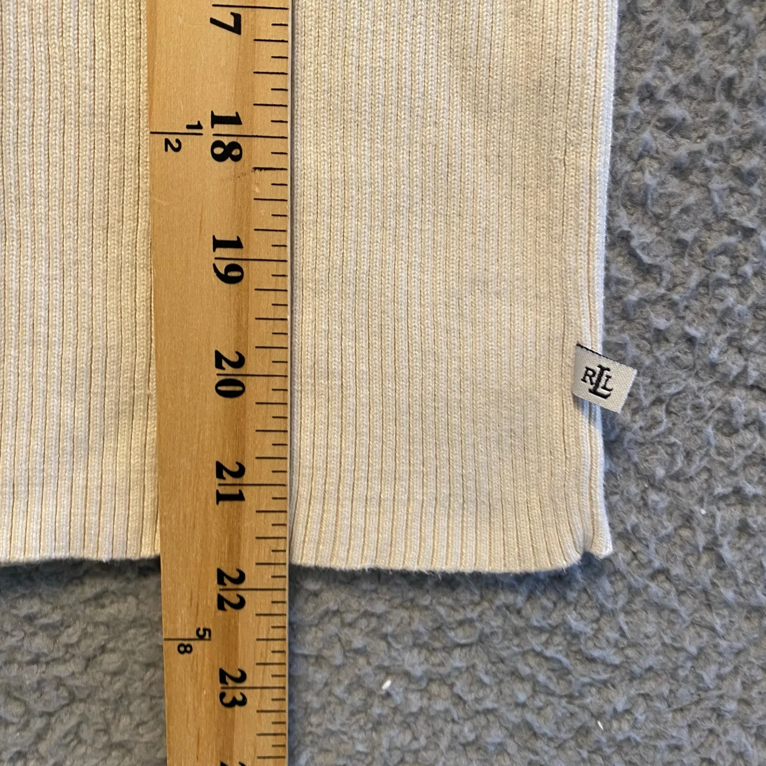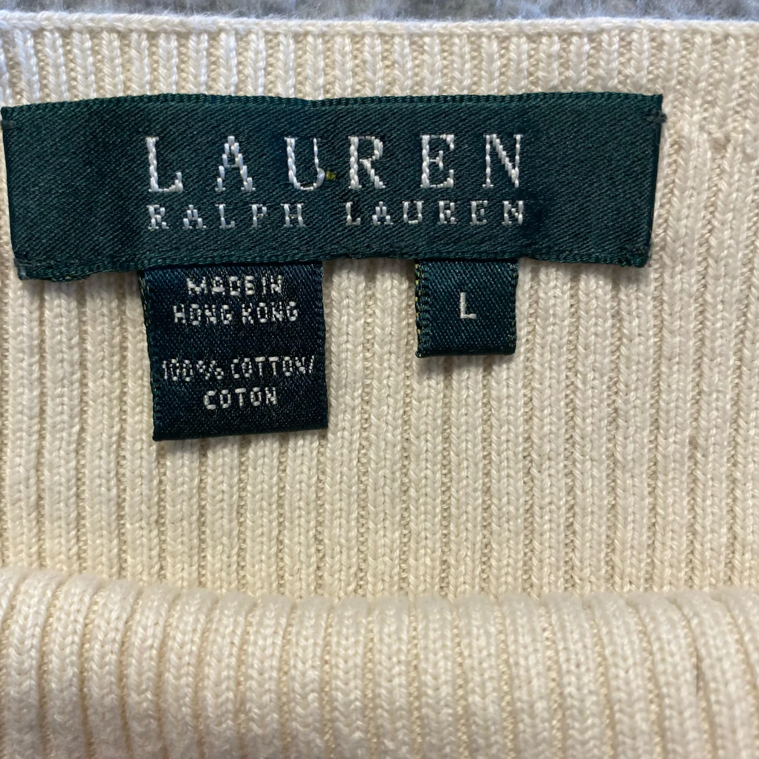 Vintage Lauren Ralph Lauren 100% Cotton White Ribbed Sweater 3/4 Length Sleeves Made in Hong Kong Women’s Size Large