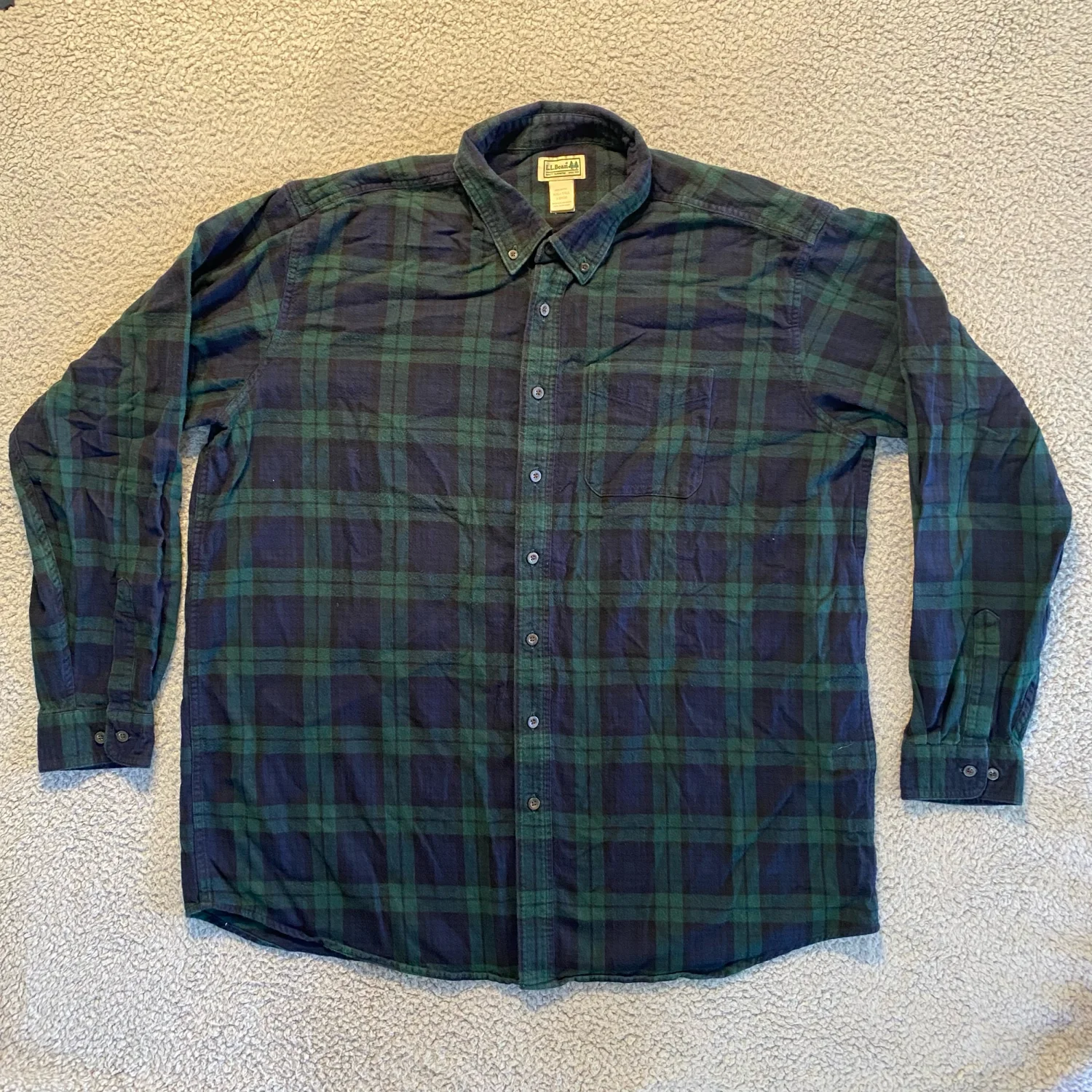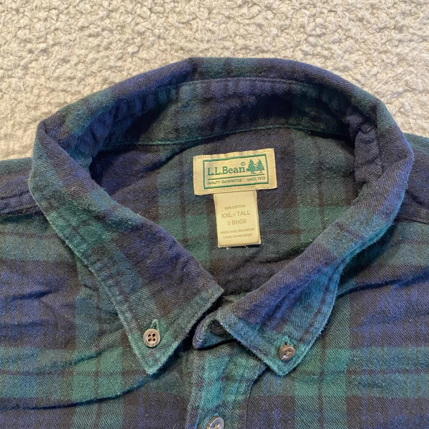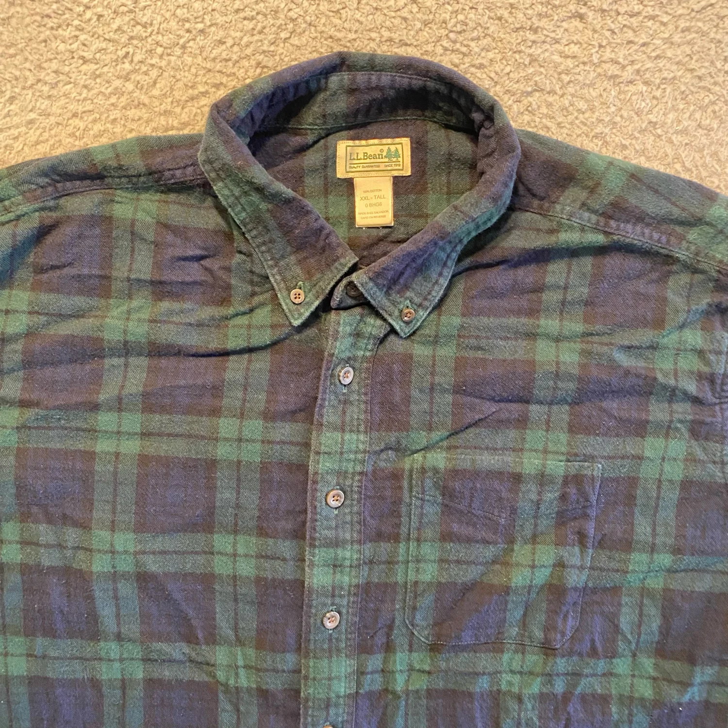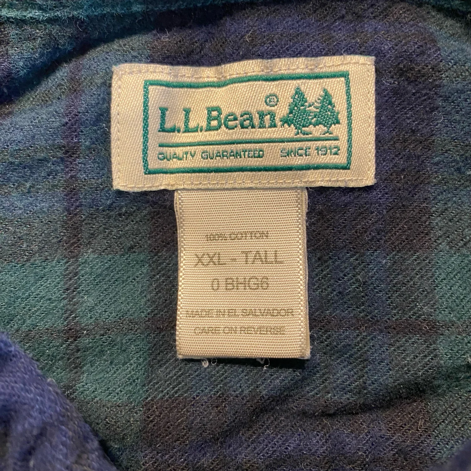 VTG L.L.Bean Green Blue Plaid LS Flannel Button Down Shirt Men’s XXL-Tall