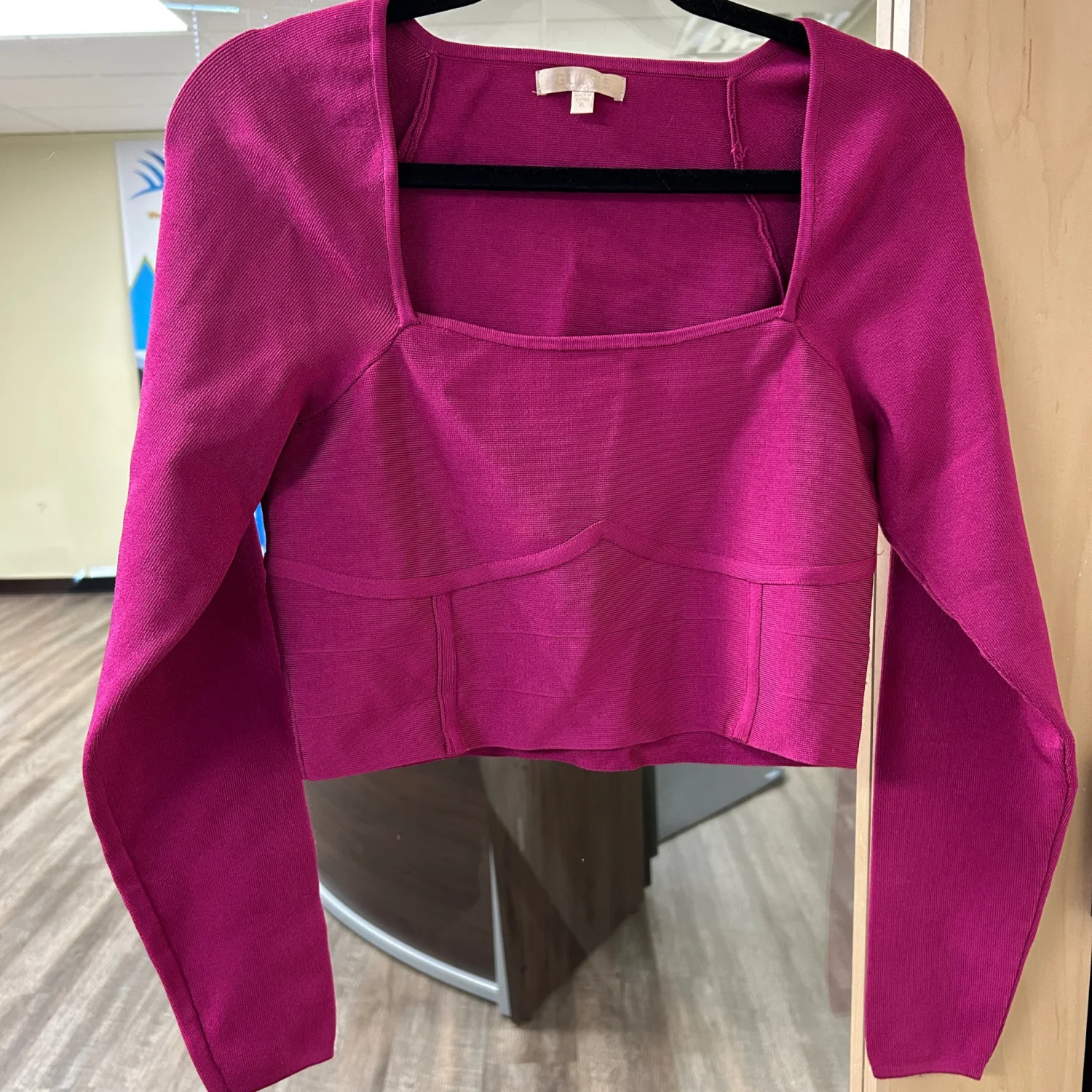 Guess Sweater Womens L Purple Anemone Bloom LS Crop Zaylee Mirage Top Knit Condition: Looks Brand New – no visible flaws, appears never worn Beautiful vibrant purple long sleeve cropped sweater Style Name: LS Crop Zaylee Mirage Top Tag size: L (Womens) Original retail price: Features a square neckline and seam detail at front for a flattering silhouette Material: 85% Viscose Rayon, 13% Polyester, 2% Elastane Hand wash cold, dry flat, do not twist or wring (see care tag for details) Made by Guess – brand label and style tag present Main color: Anemone Bloom (purple) Made in China Great for layering, nights out, or stylish everyday wear Approximate weight: 1 lb 4.5 oz