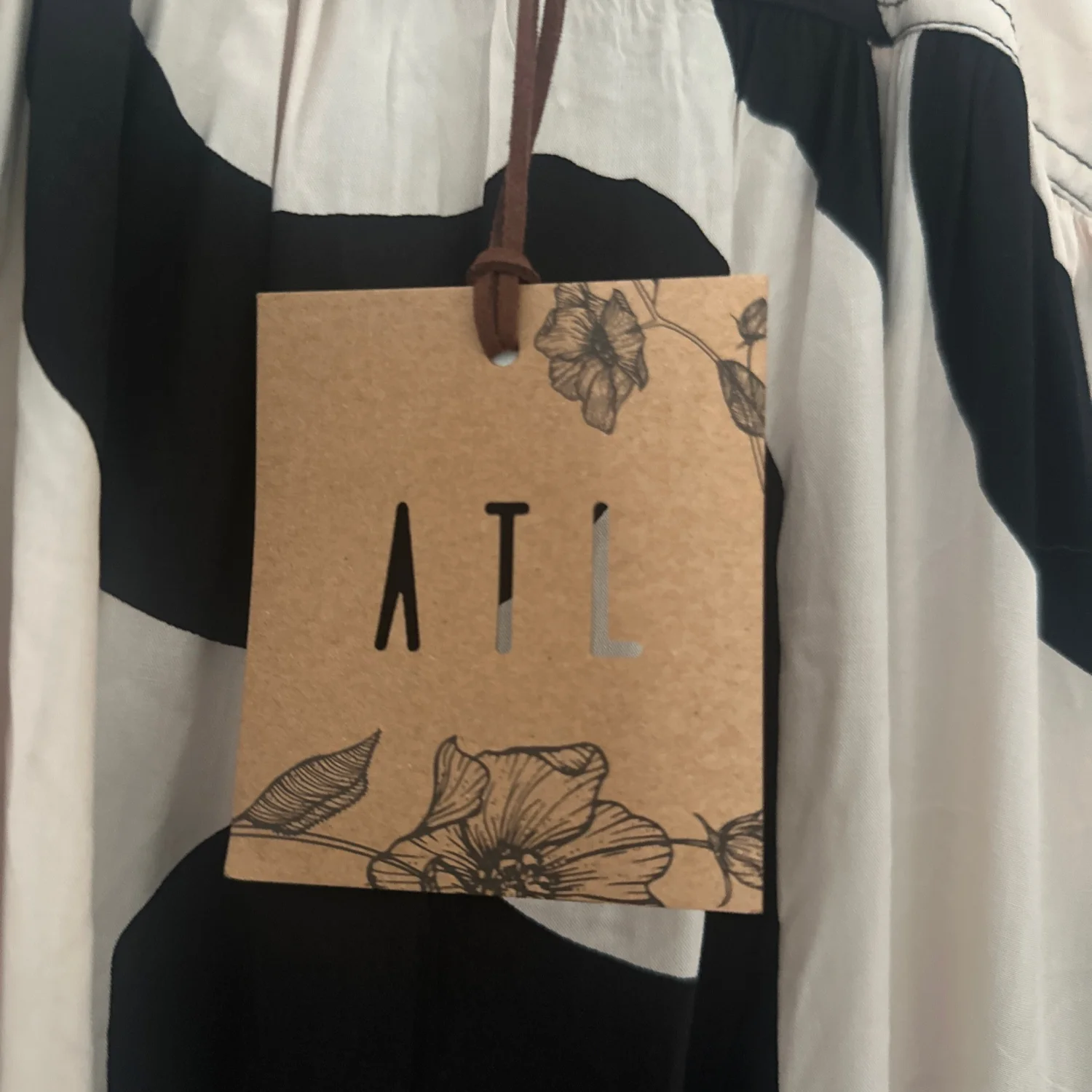 Stylish black and white maxi dress by Abel The Label, featuring a striking abstract pattern. The dress has thin shoulder straps and a flowing silhouette for a comfortable and elegant fit. Perfect for casual outings or semi-formal events. Size small, this dress is made from a lightweight fabric suitable for warmer weather. Tags include #monochrome, #maxi, #summerdress.