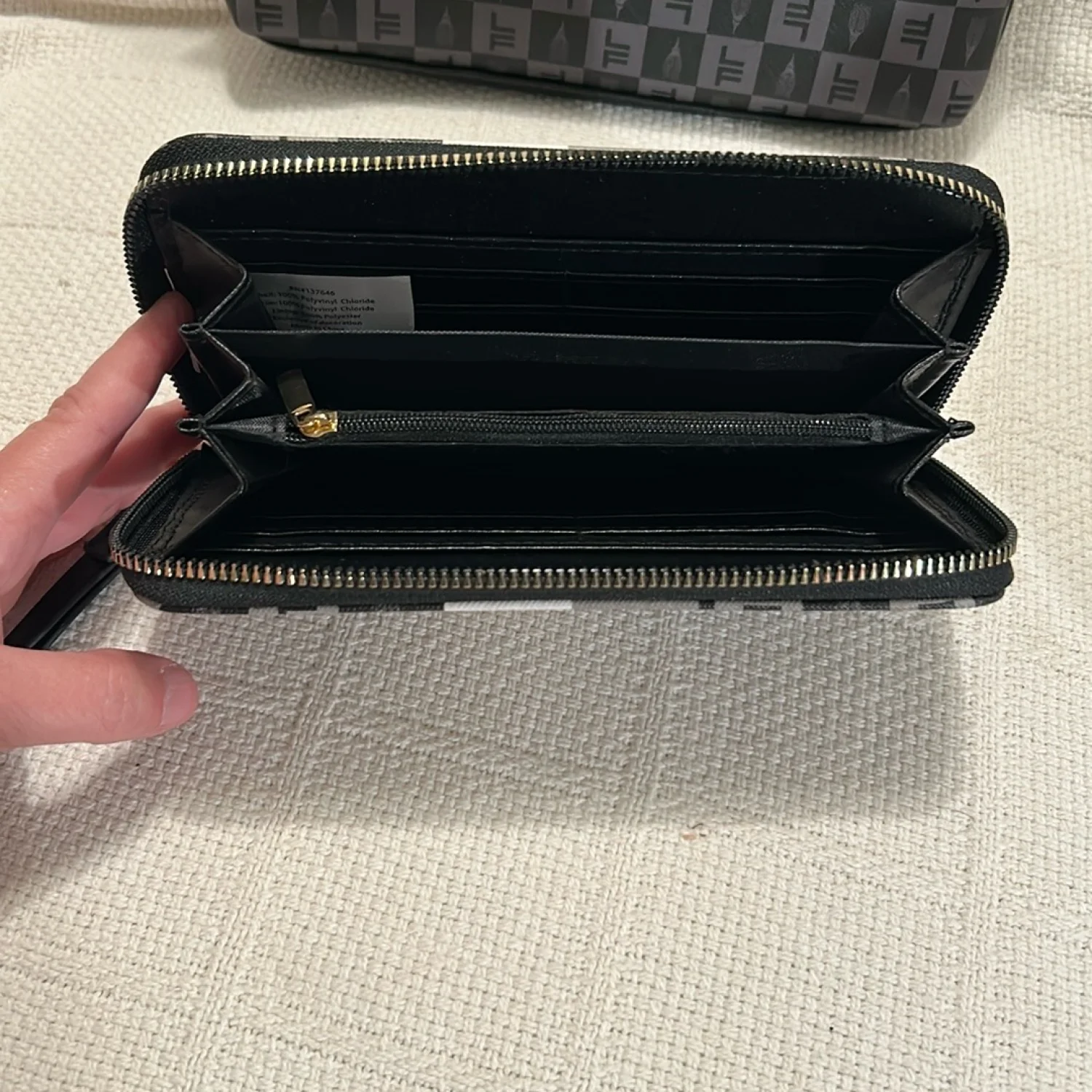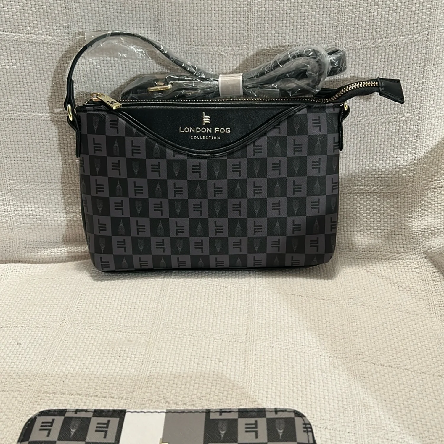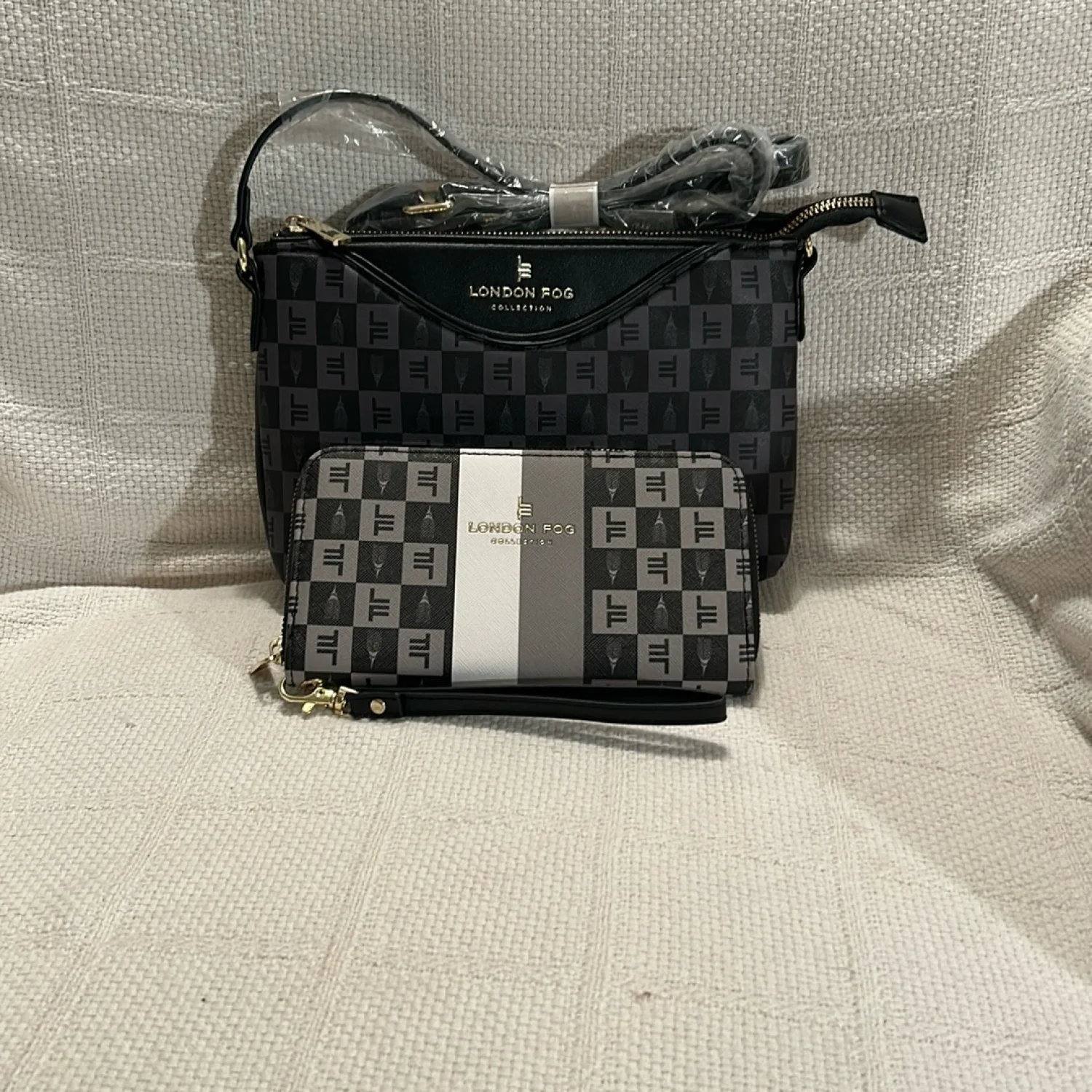 NWT London Fog crossbody bag with matching wallet. Front pocket secured by magnetic closure. Inner wallet has zippered compartment for coins or other small items. Plenty of slots for cards/cash storage. Removable wrist strap.