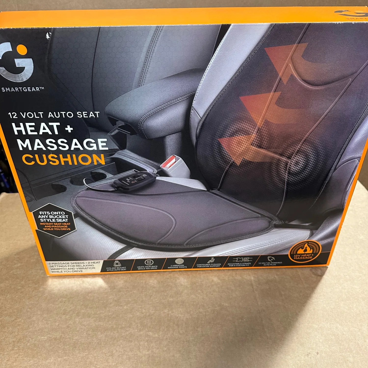 This item is brand new and hasn’t been opened or used prior to the sale . Remains in sealed factory box . Great quality product for a great price . Fits into any seats .. Provides instant seat heat and massage while you drive . Have 2 speed massage settings for relaxing warmth and vibration . . Can be easily adjusted for a custom fit . Also makes it nice gift idea for upcoming holidays. Comes from pets and smoke free home