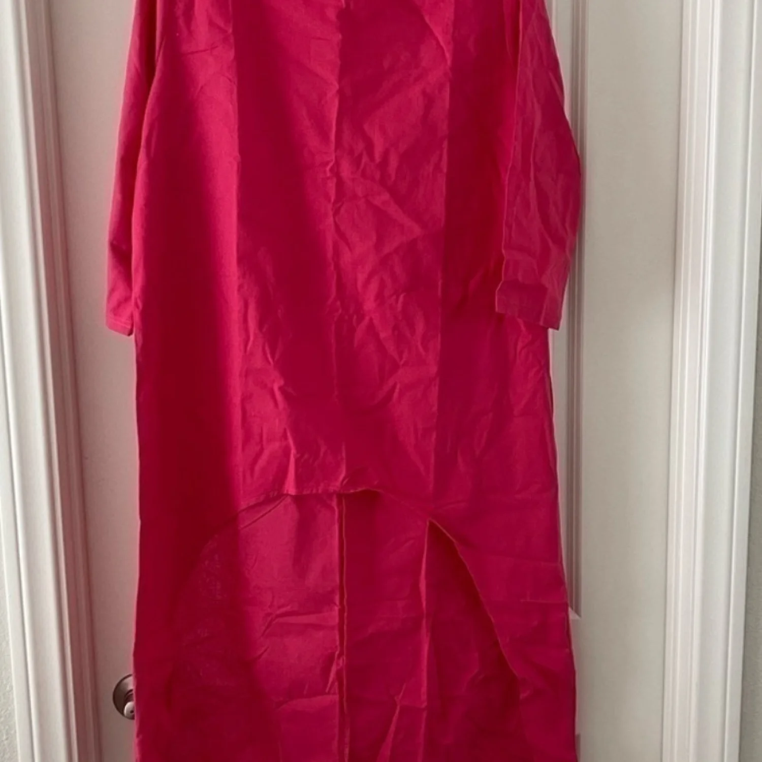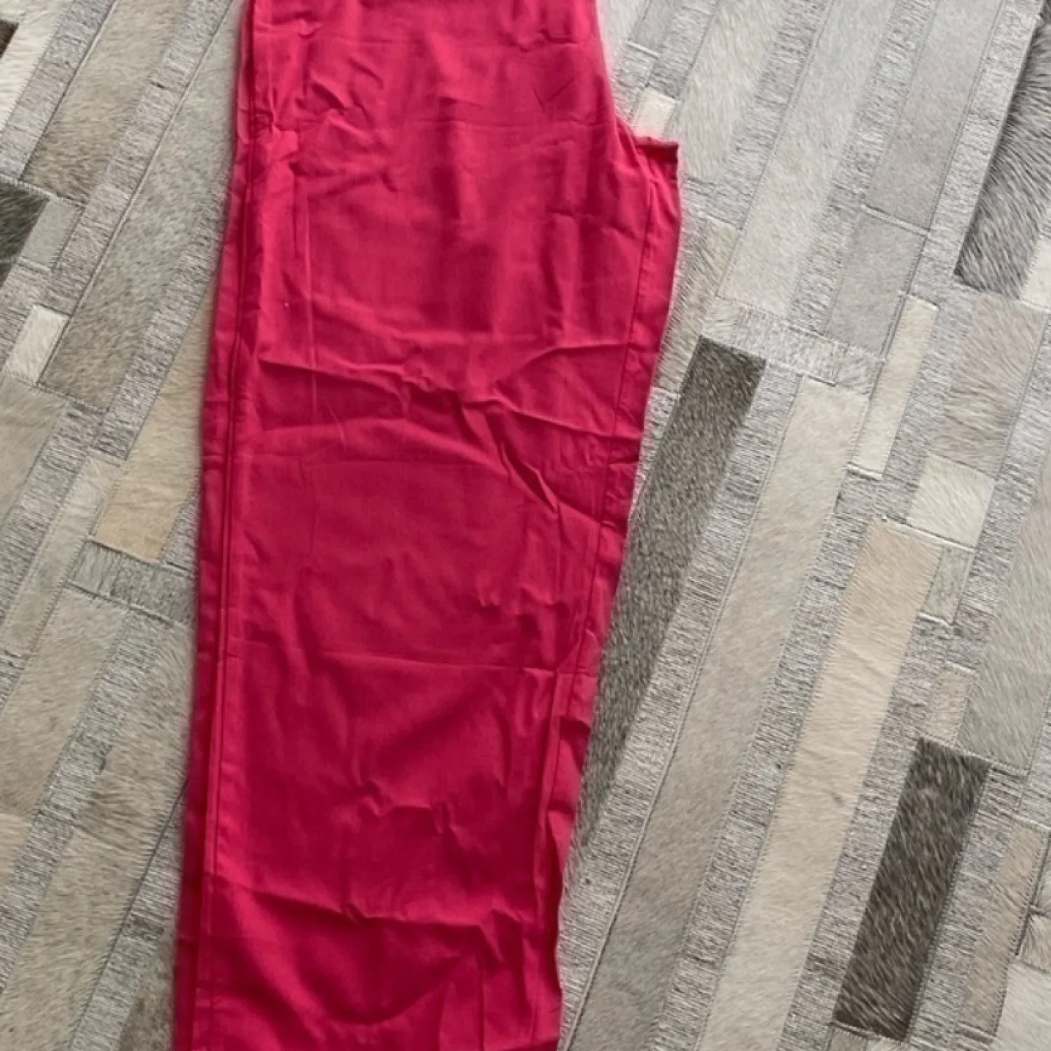 Two Piece Fuchsia Pants & Top. Top is longer in back than front. Pants have elastic waist - 30 inches & inseam is 27 in. 95% Poly & 5% spandex. Size Medium