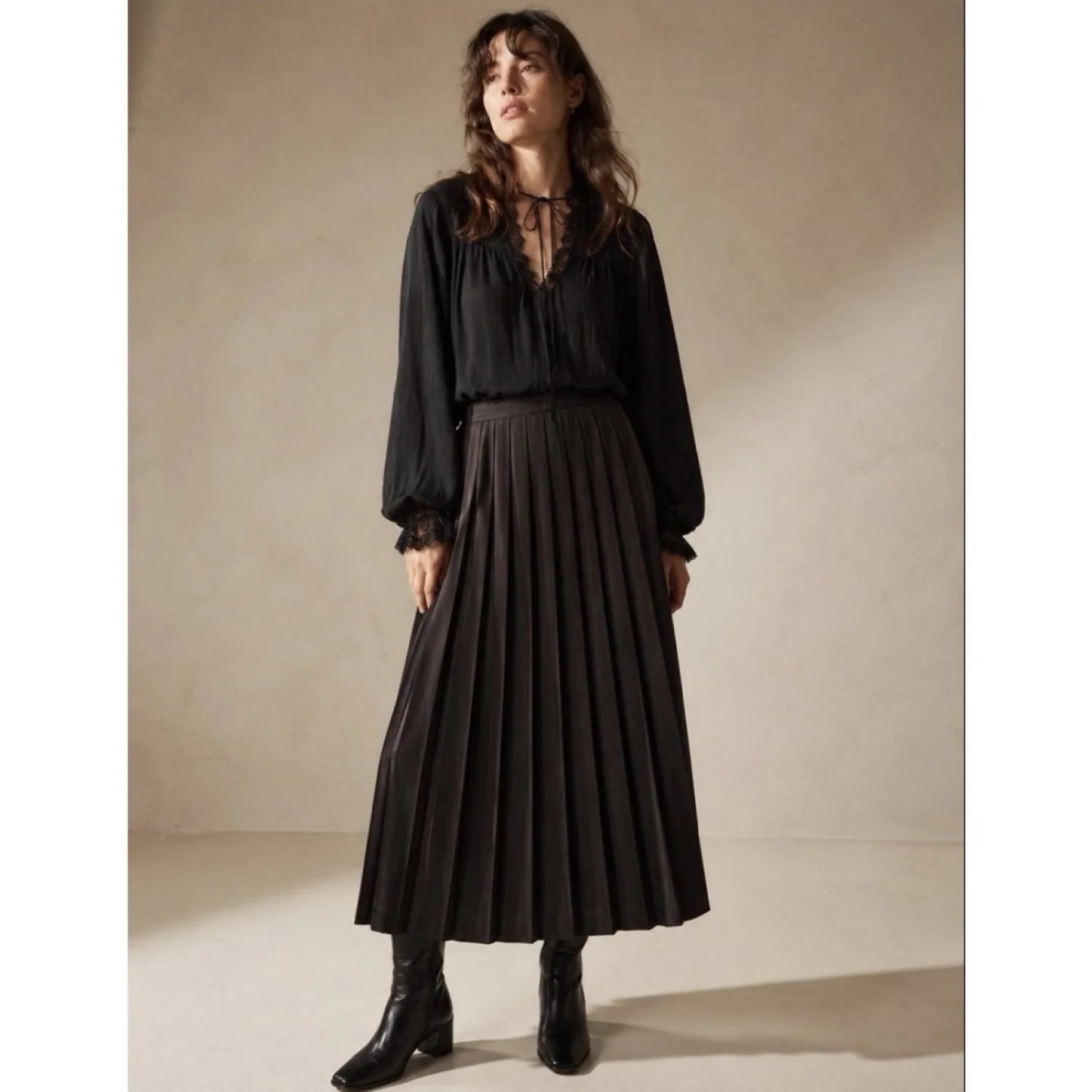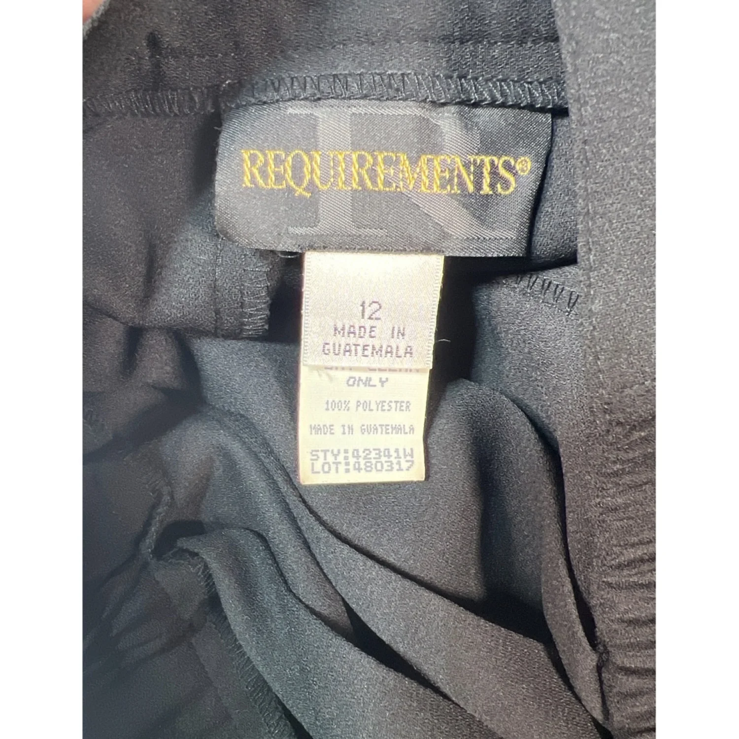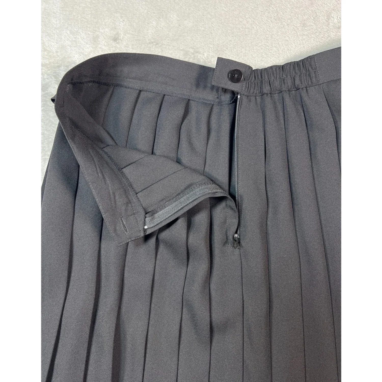 Vtg Black Pleated Midi Skirt Sz 12 Elastic Waist Flowy A Line