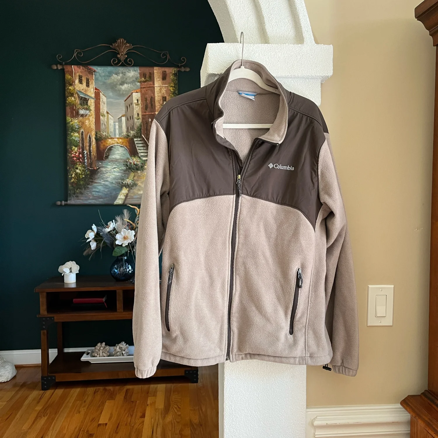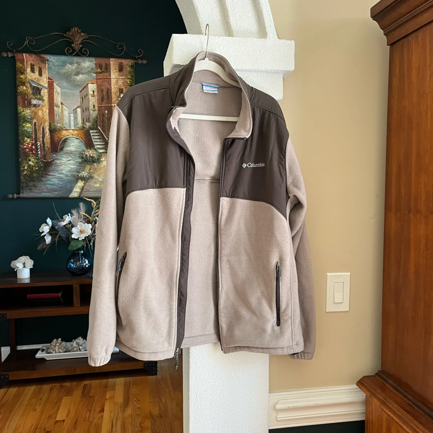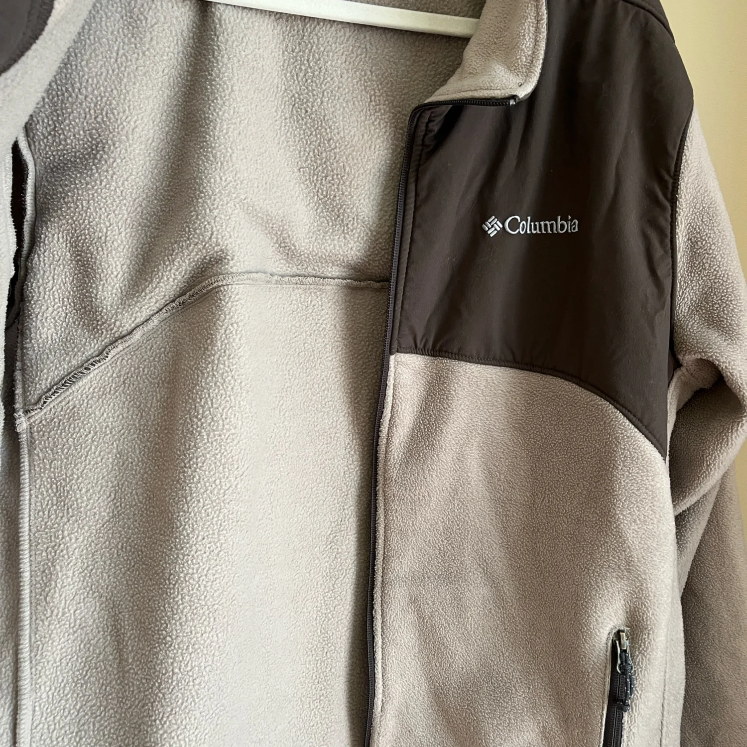 Columbia jacket with a full zip. Features two front pockets. Stylish and comfortable.