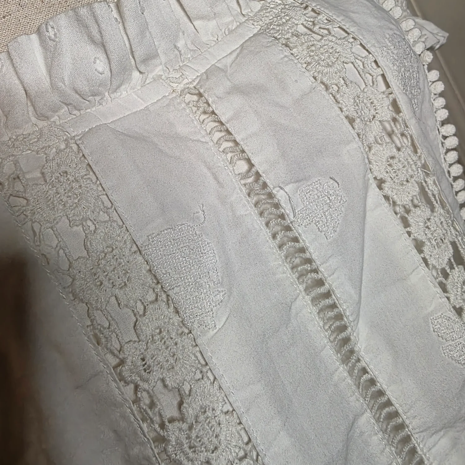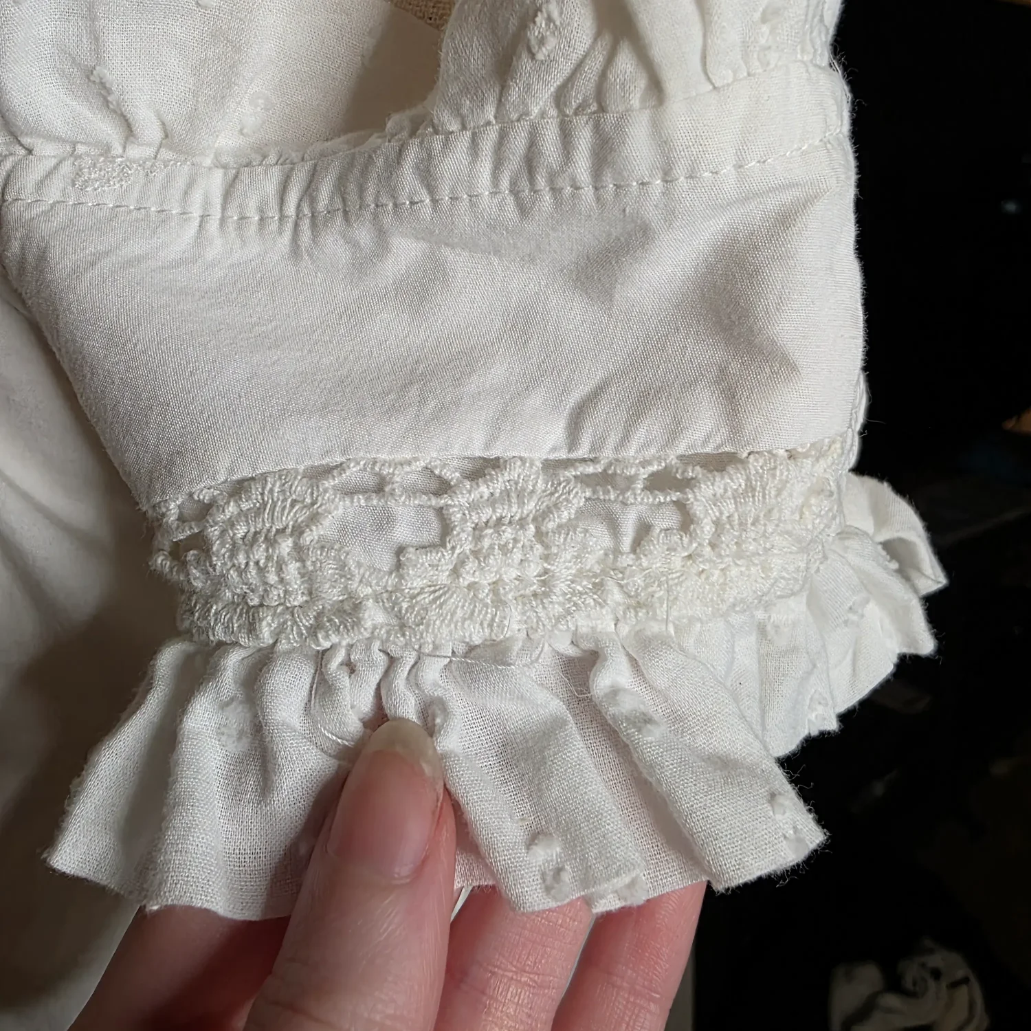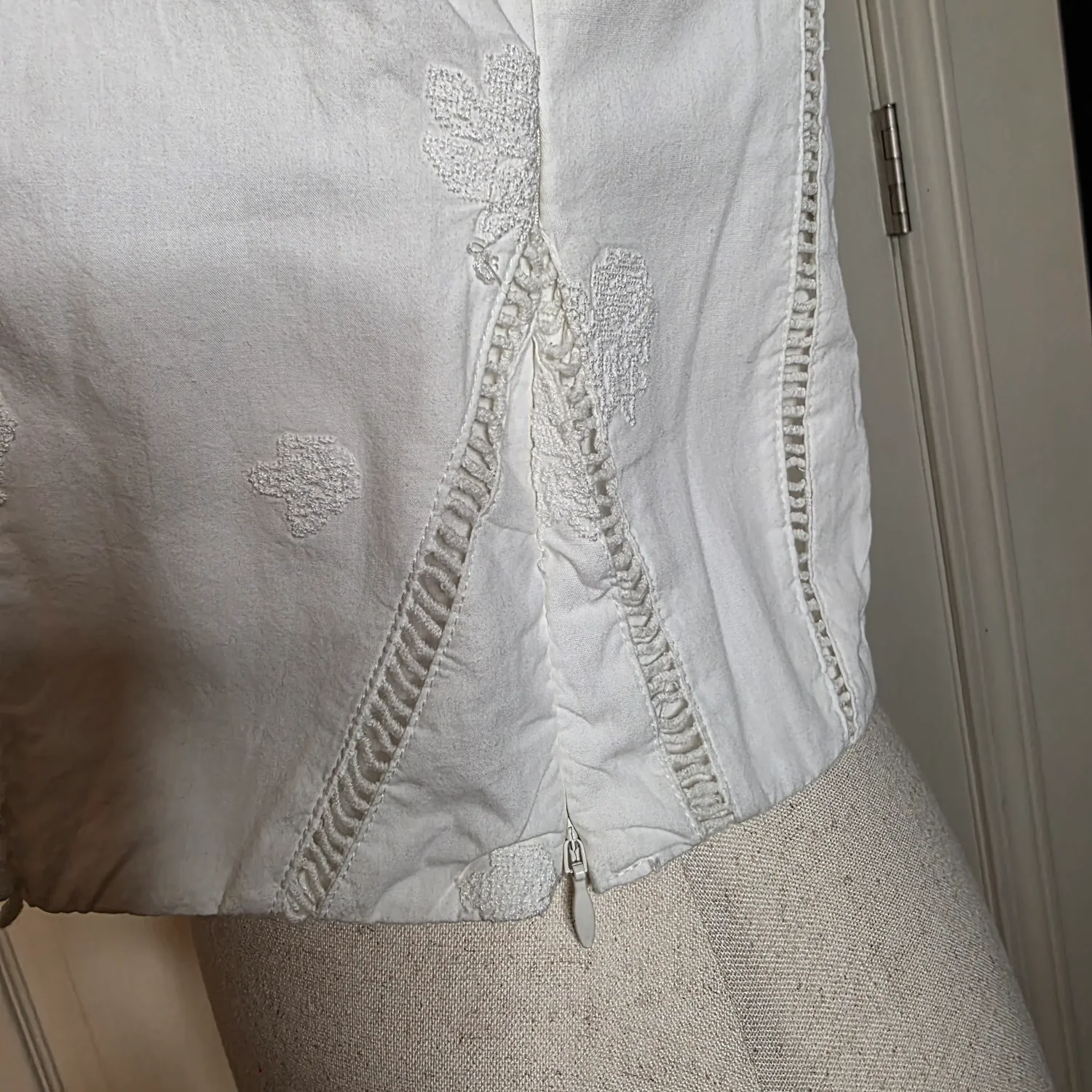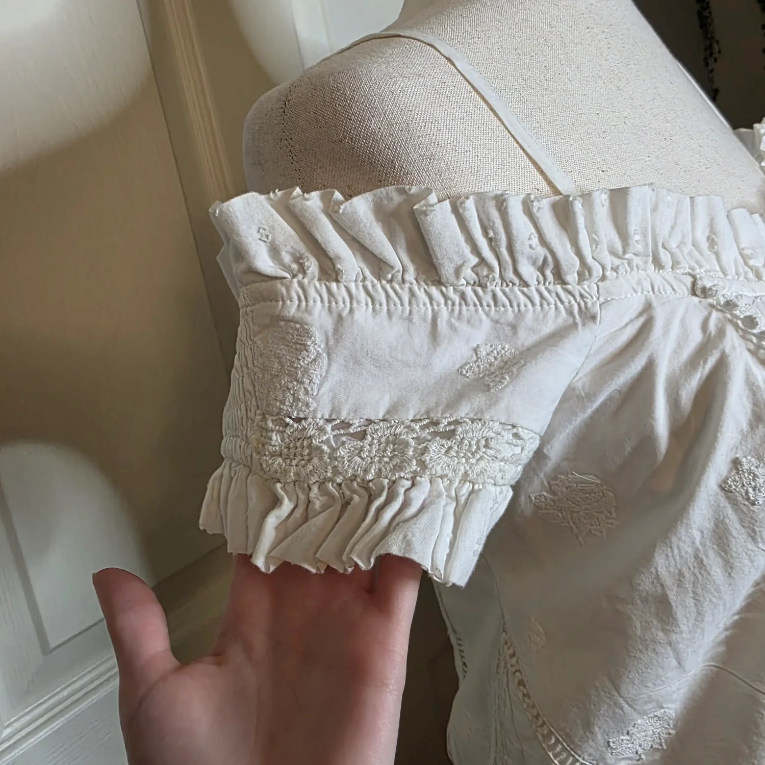 ● In Good Condition ● Has some loose threads & yellowing on one of the sleeves Material: ♡ Shell & Lining - 100% Cotton ♡ Embroidery - 100% Polyester ♡ Trim Fabric - 95% Cotton, 5% Lyocell Care: Handwash Measurements (Taken Laying Flat): Pit: 17 in. Length: 16.5 in. #cottagecore #coquette #coastalcowboy #softfemme
