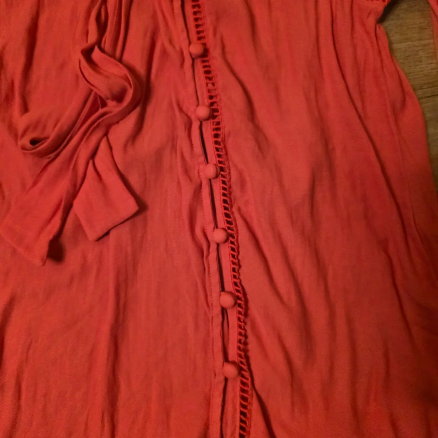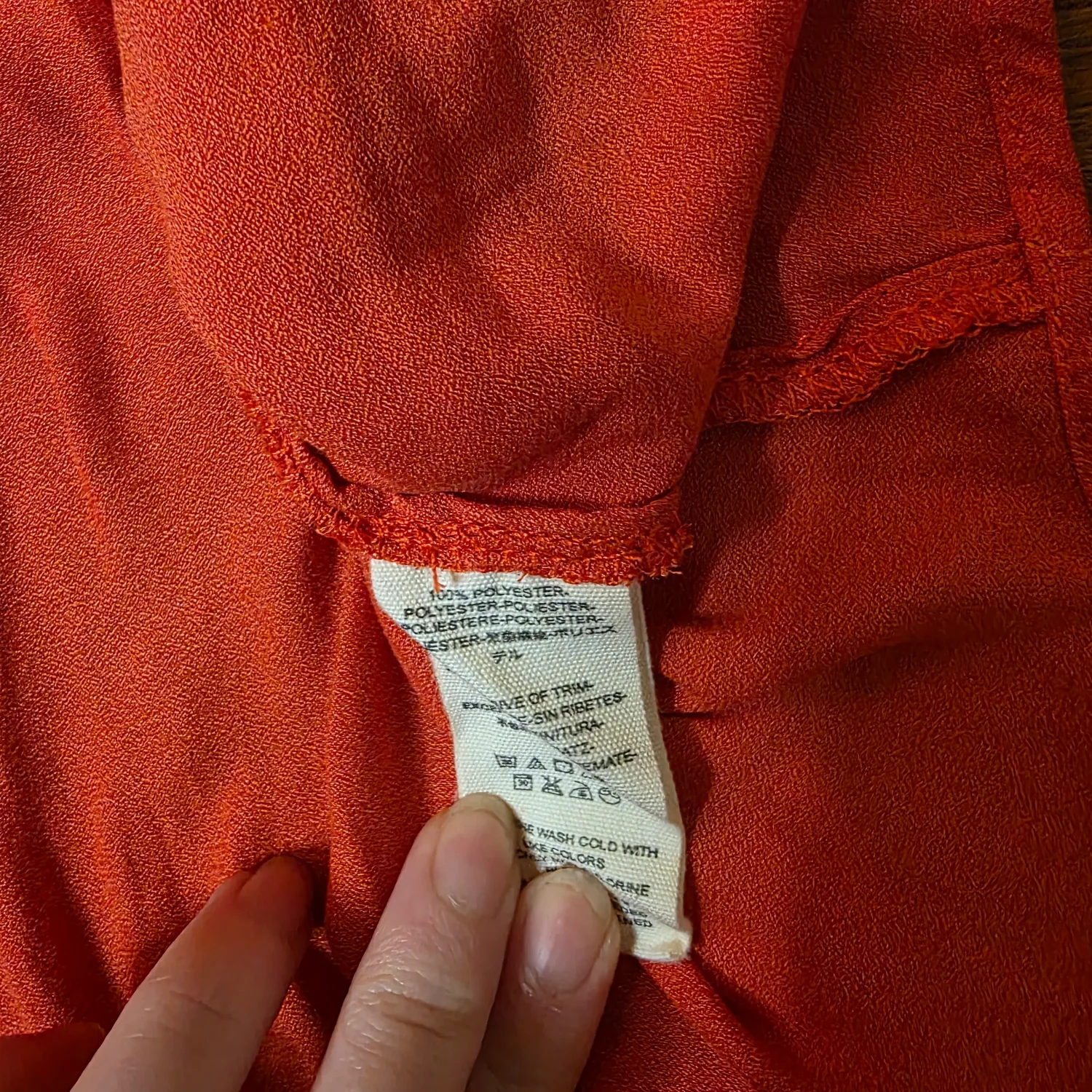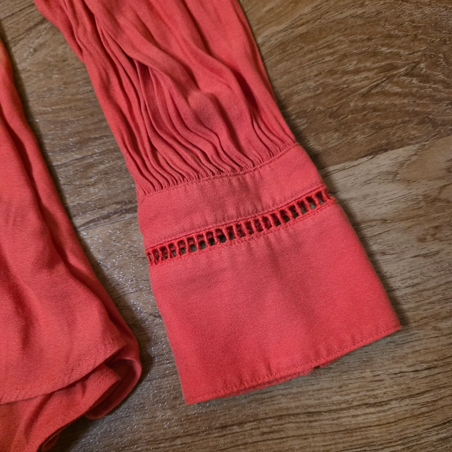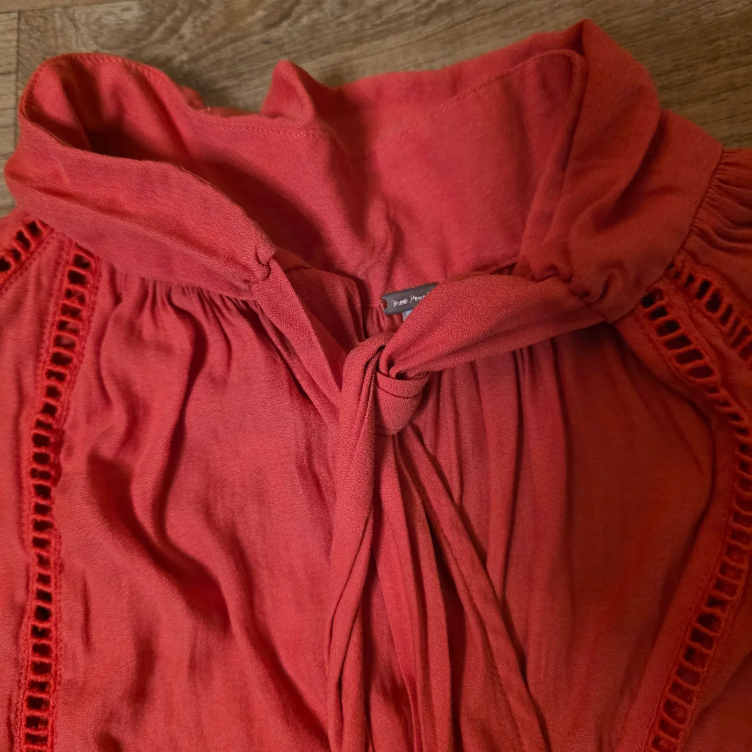 Free People Orange Button Up Tie Collar Long Sleeve Blouse