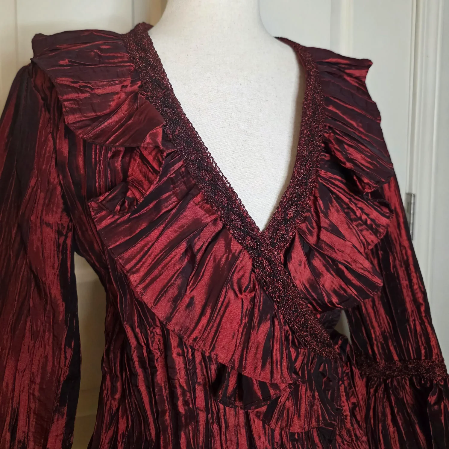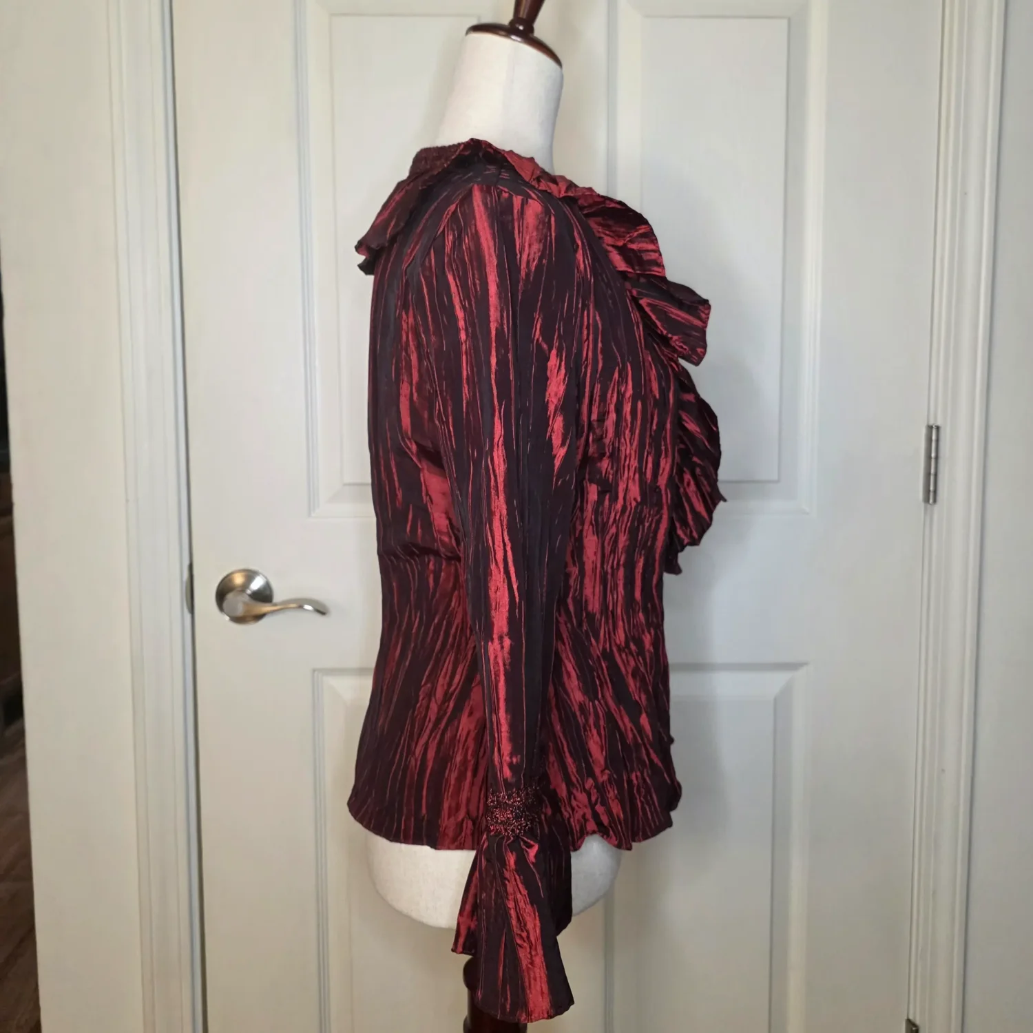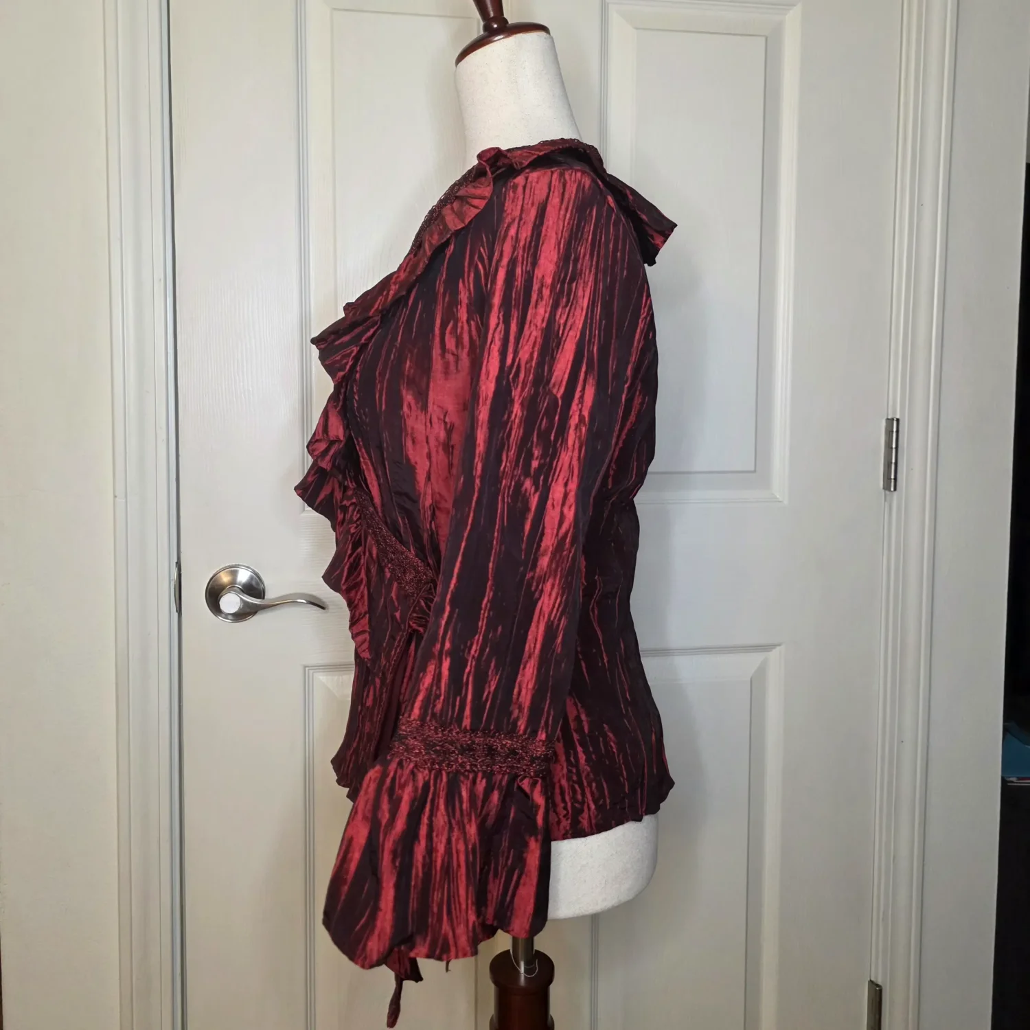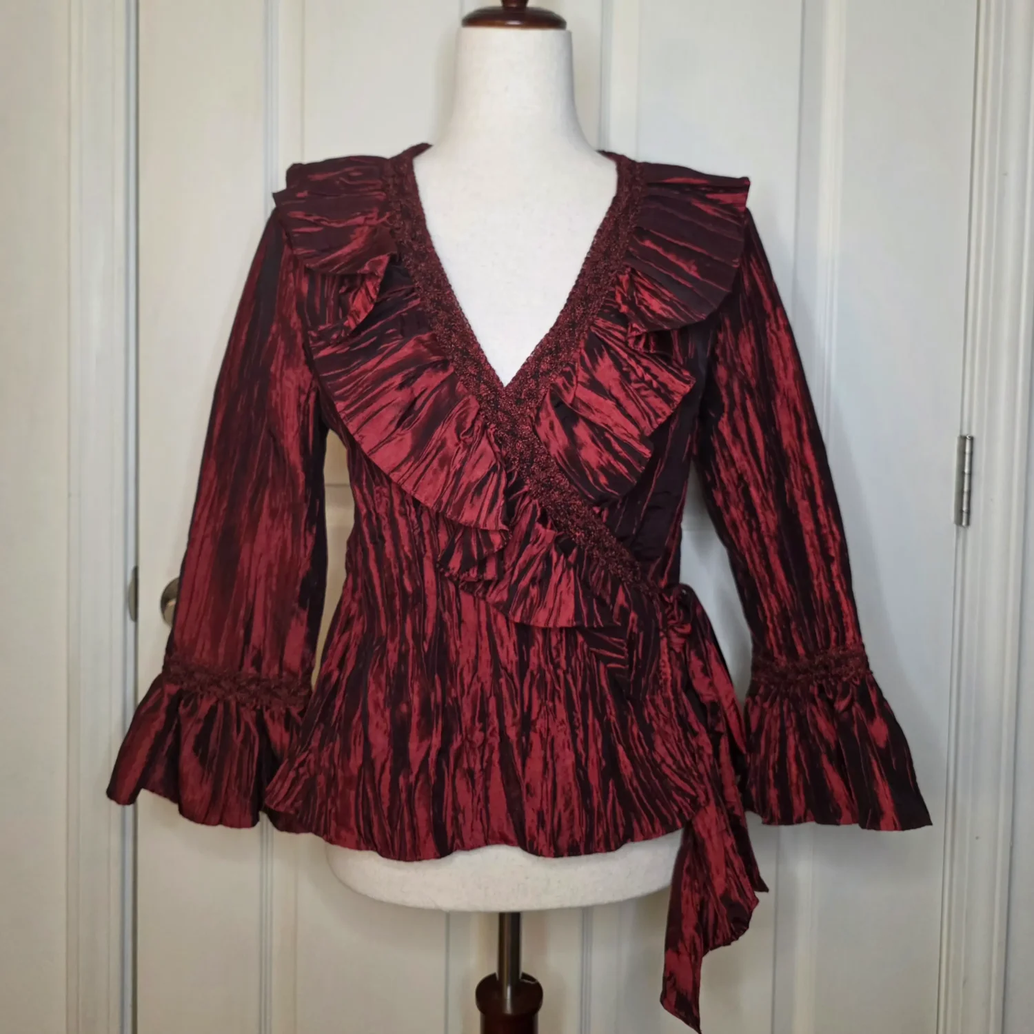 Jackie Jon New York Red Pearlescent Ruffe Wrap Blouse