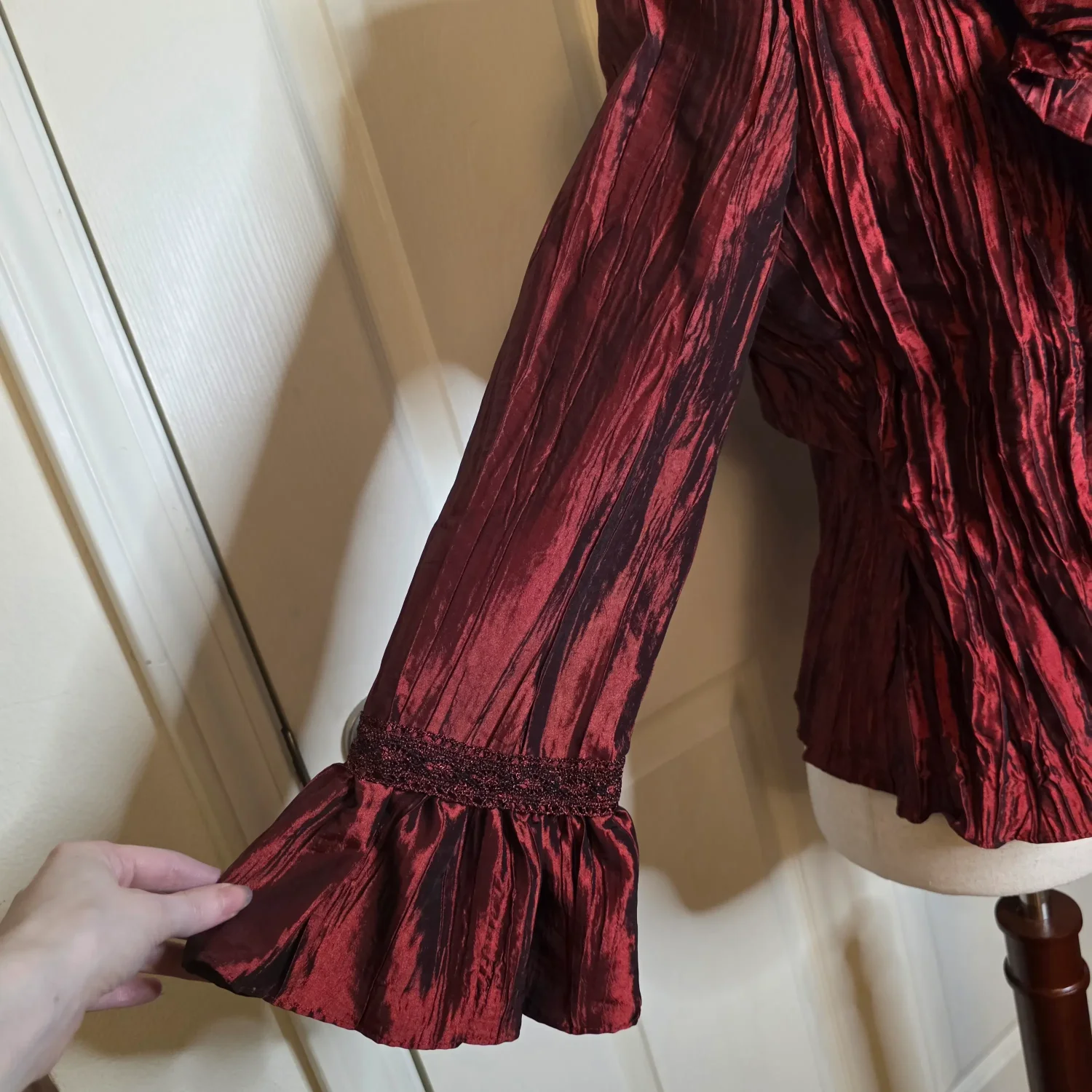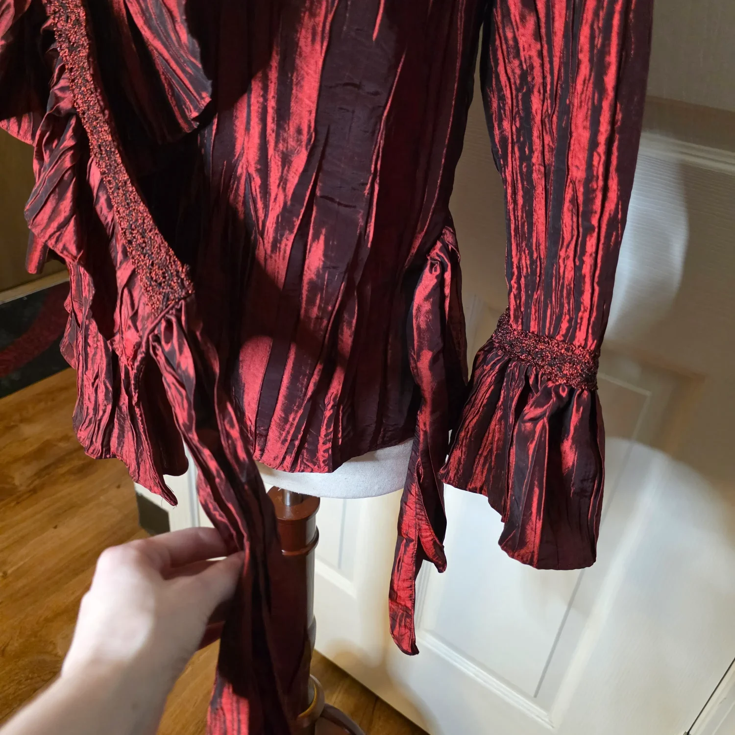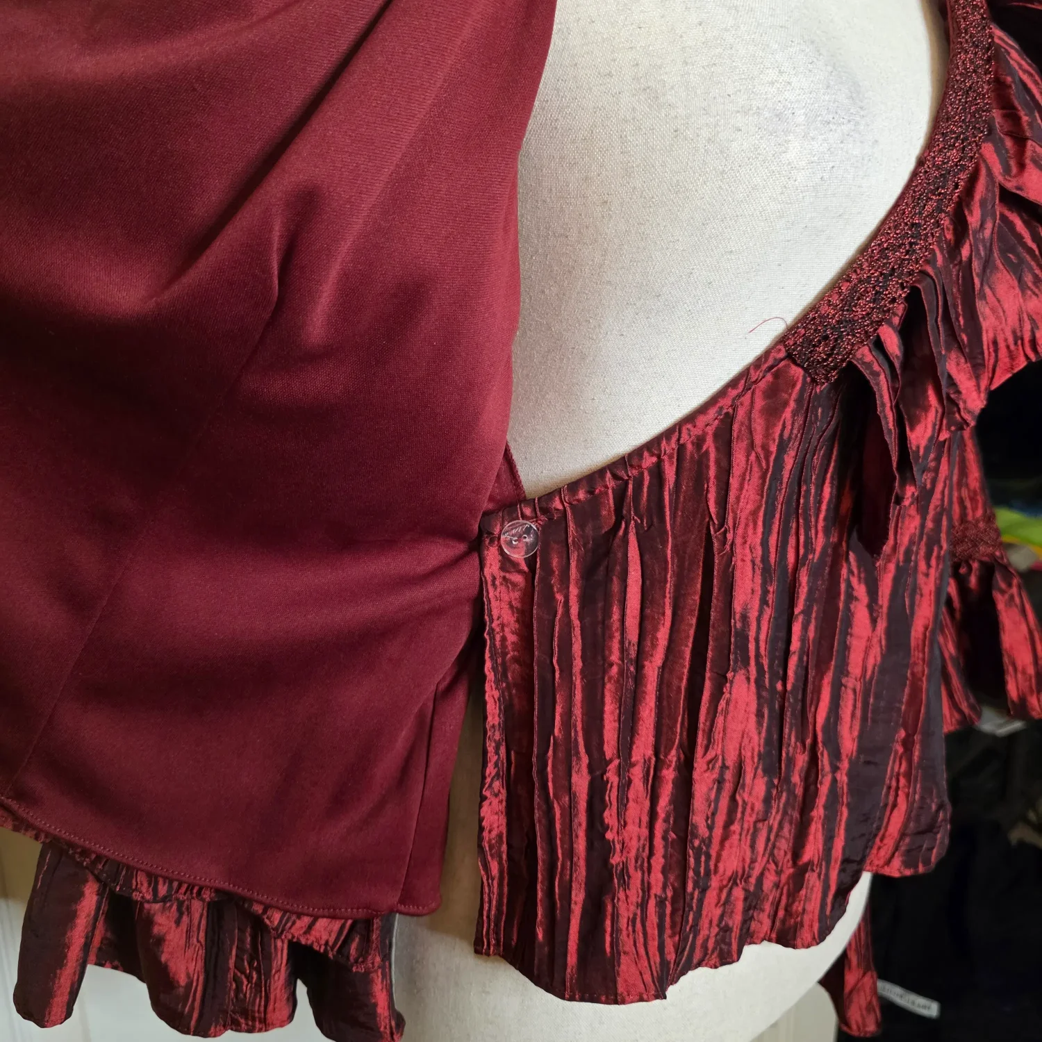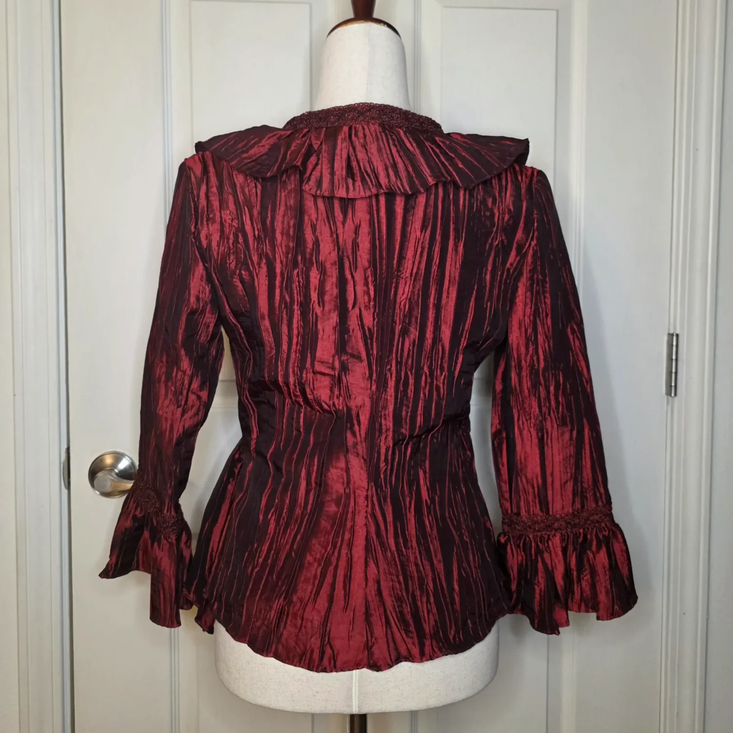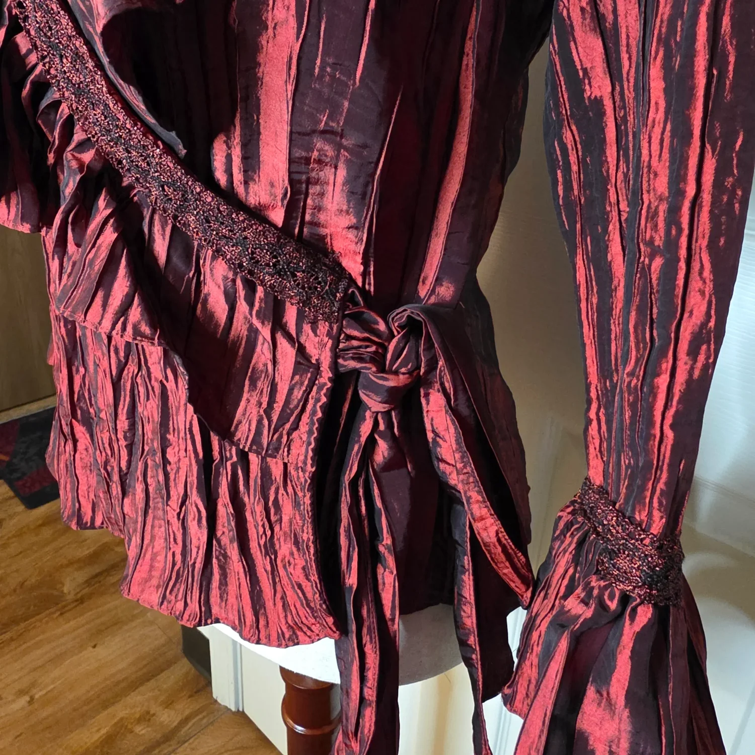 Jackie Jon New York Red Pearlescent Ruffe Wrap Blouse