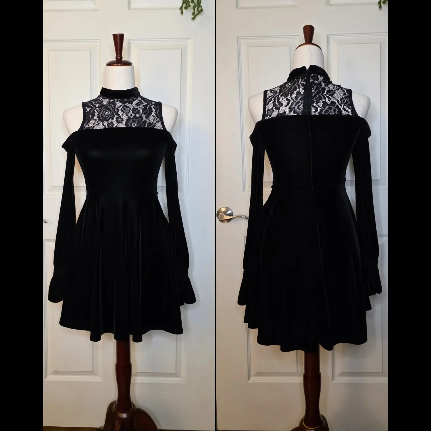 Killstar Black Baby Angeles Velvet Cold Shoulder Mini Dress