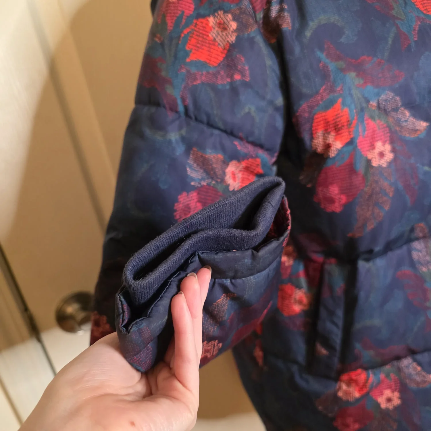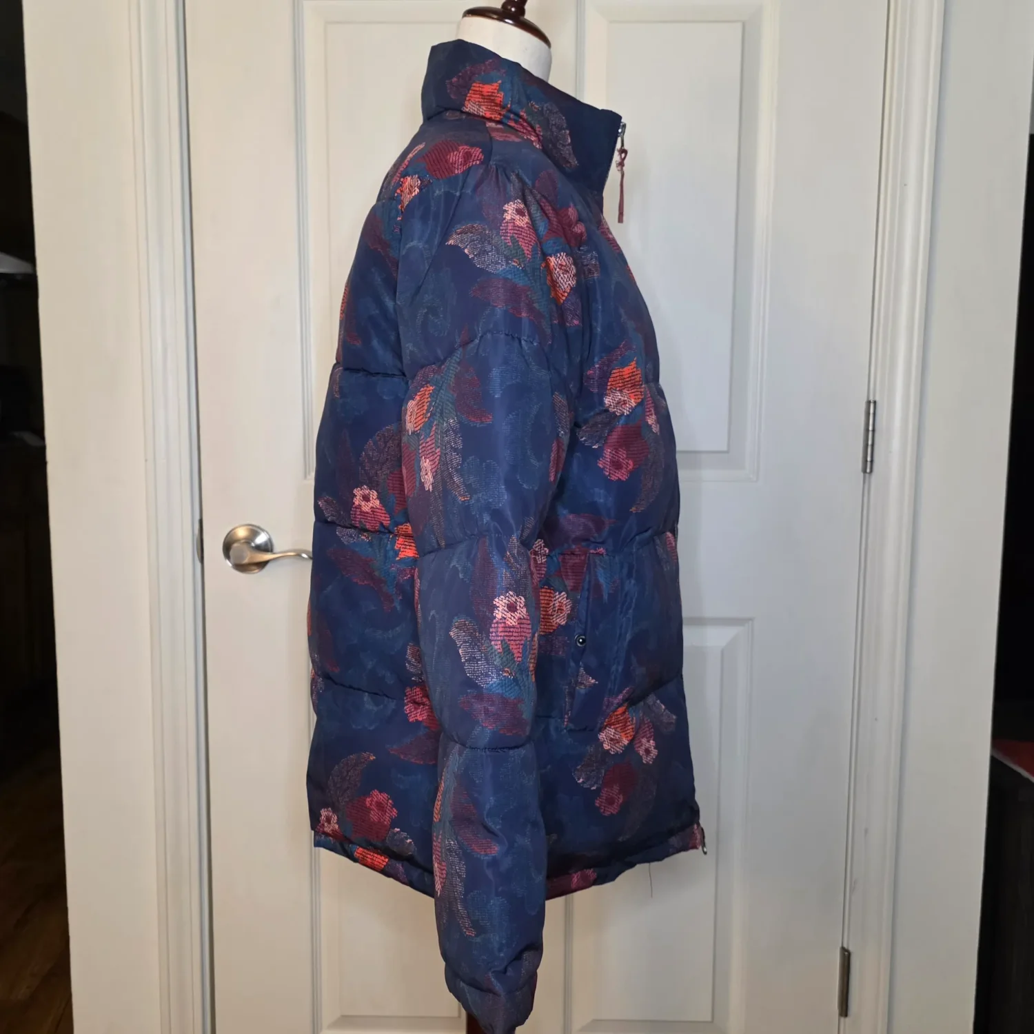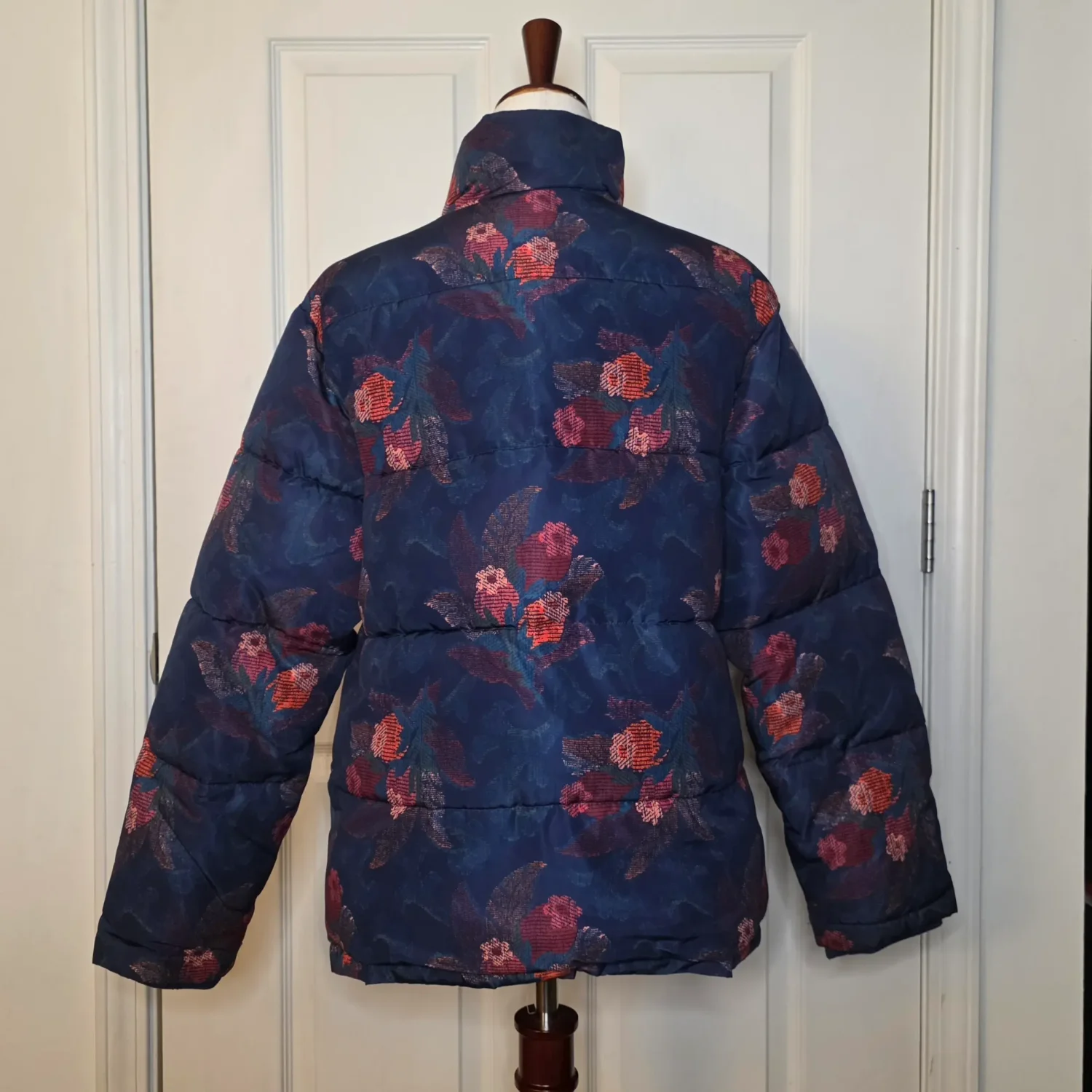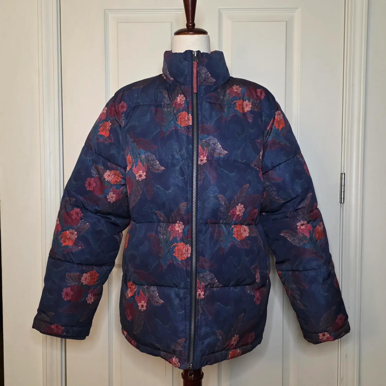 Sundance Catalog Kimmy Navy Blue Floral Puffer Jacket Coat