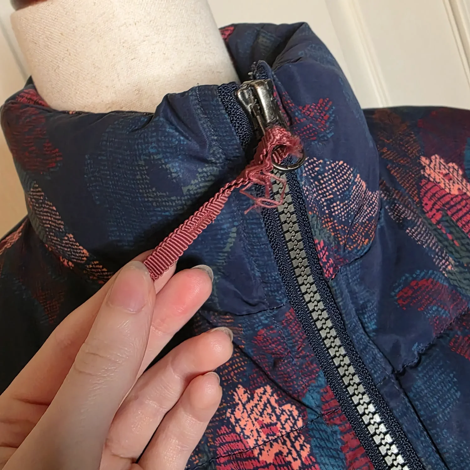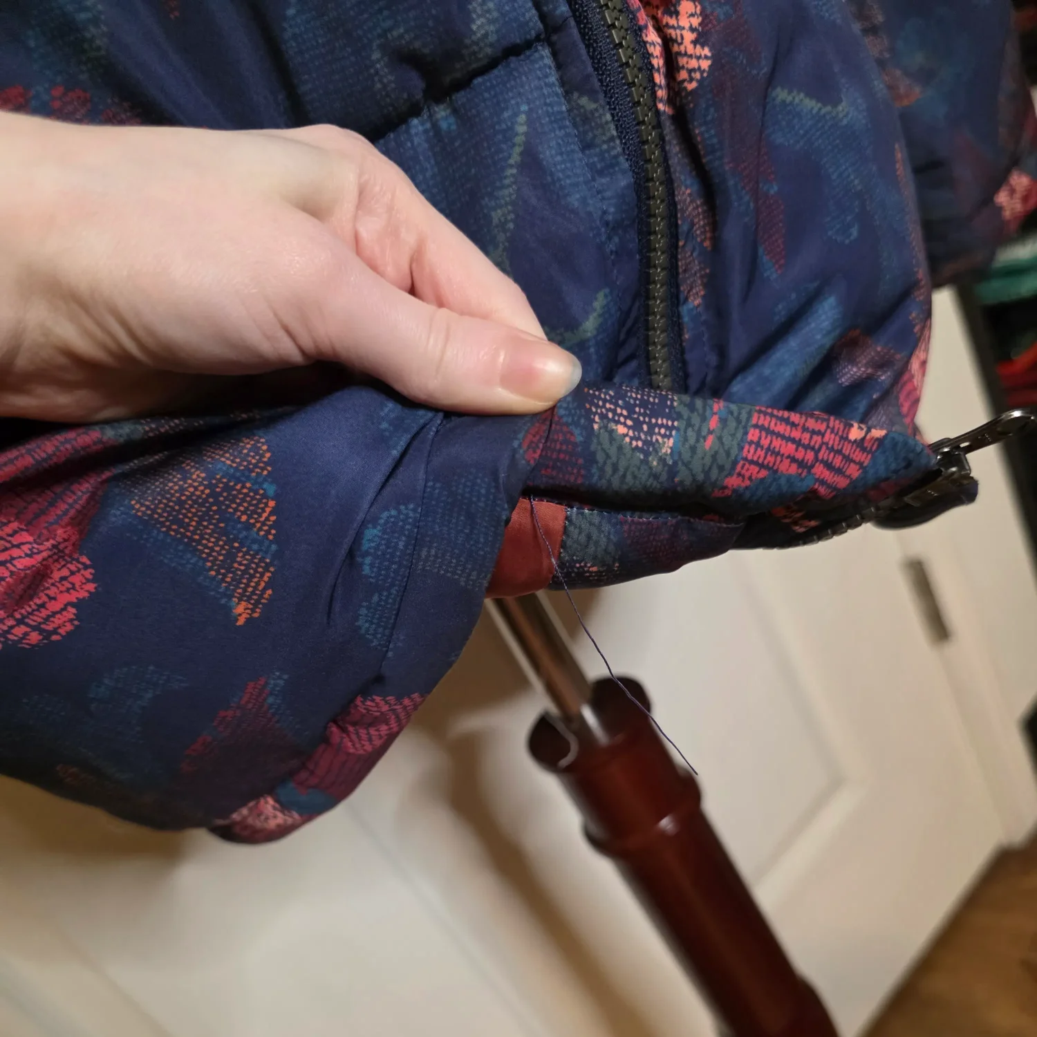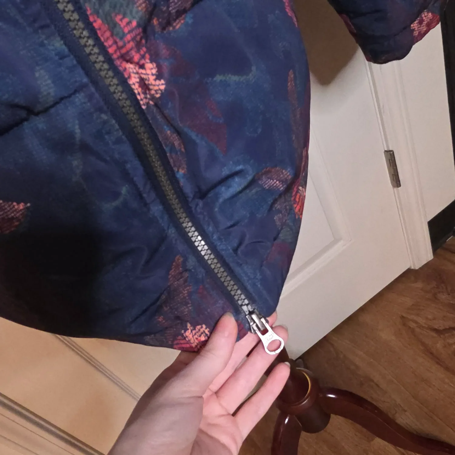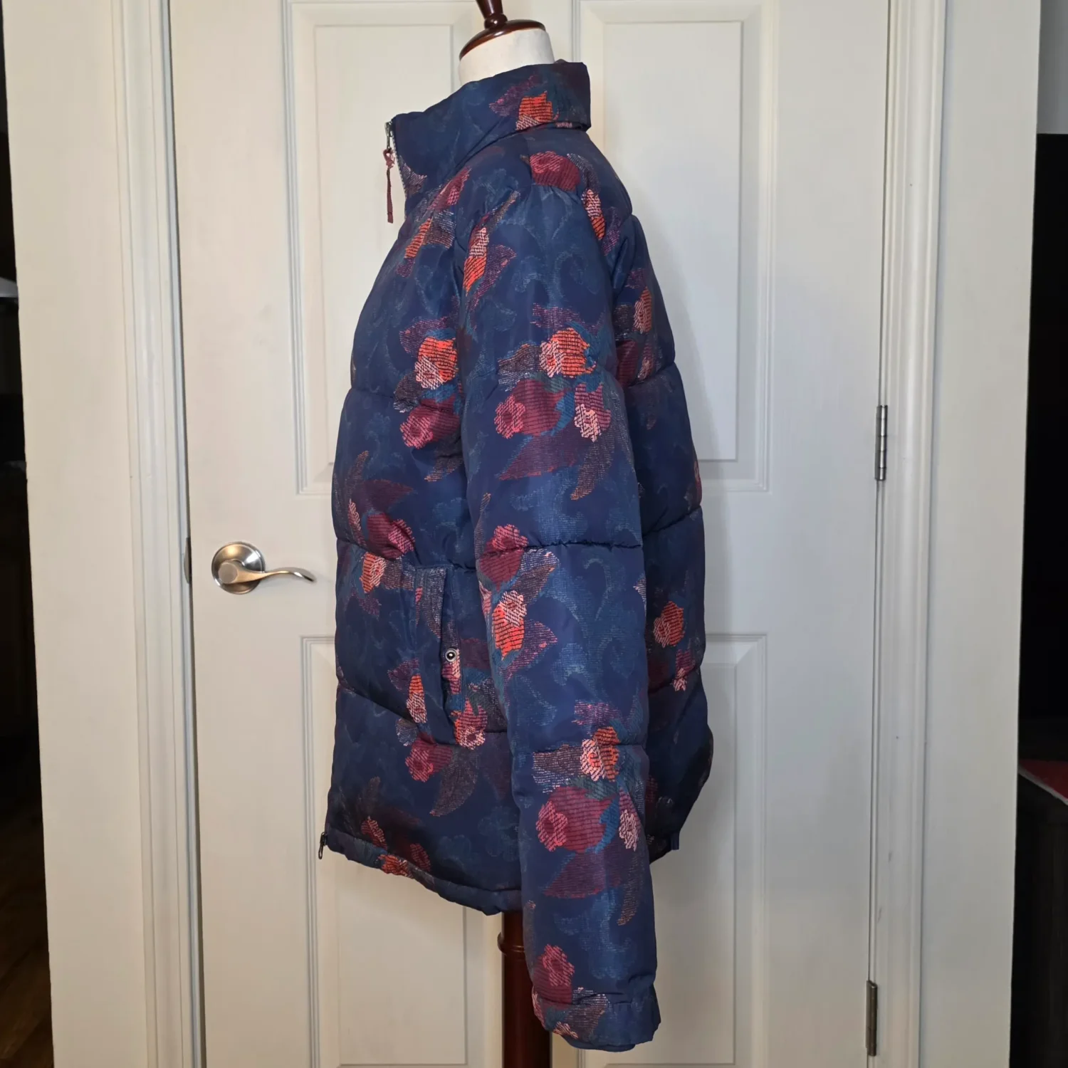 Sundance Catalog Kimmy Navy Blue Floral Puffer Jacket Coat