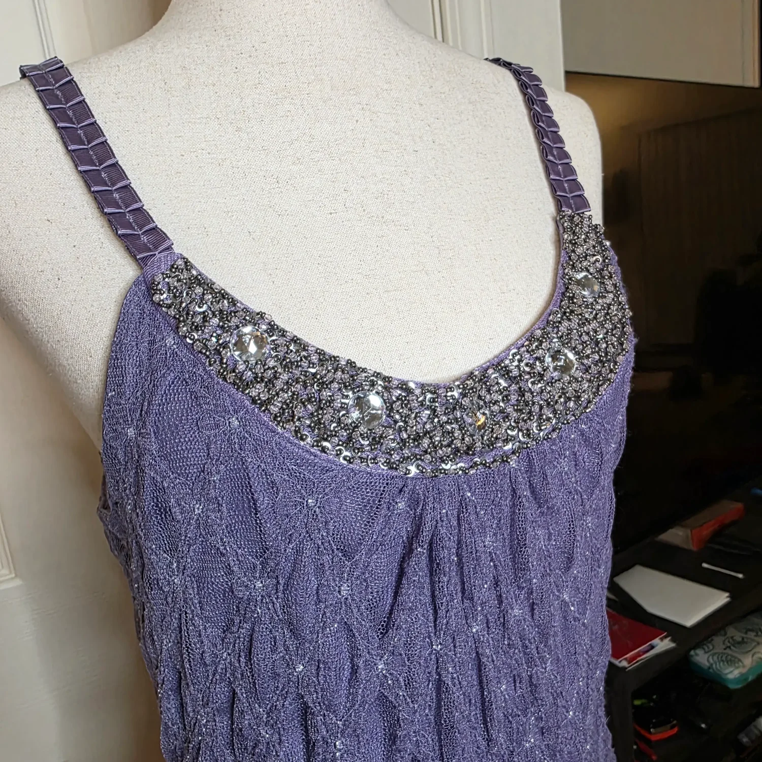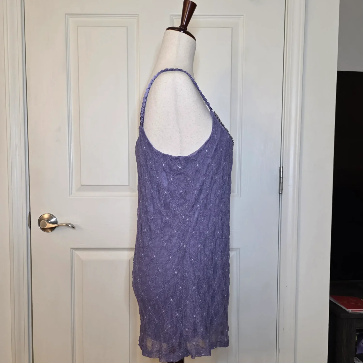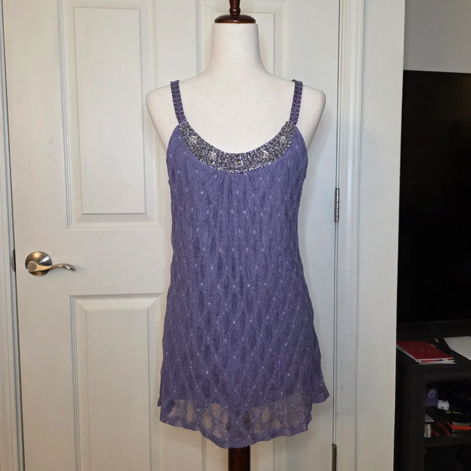 Vanity Purple Lilac Lace Beaded Sleeveless Blouse