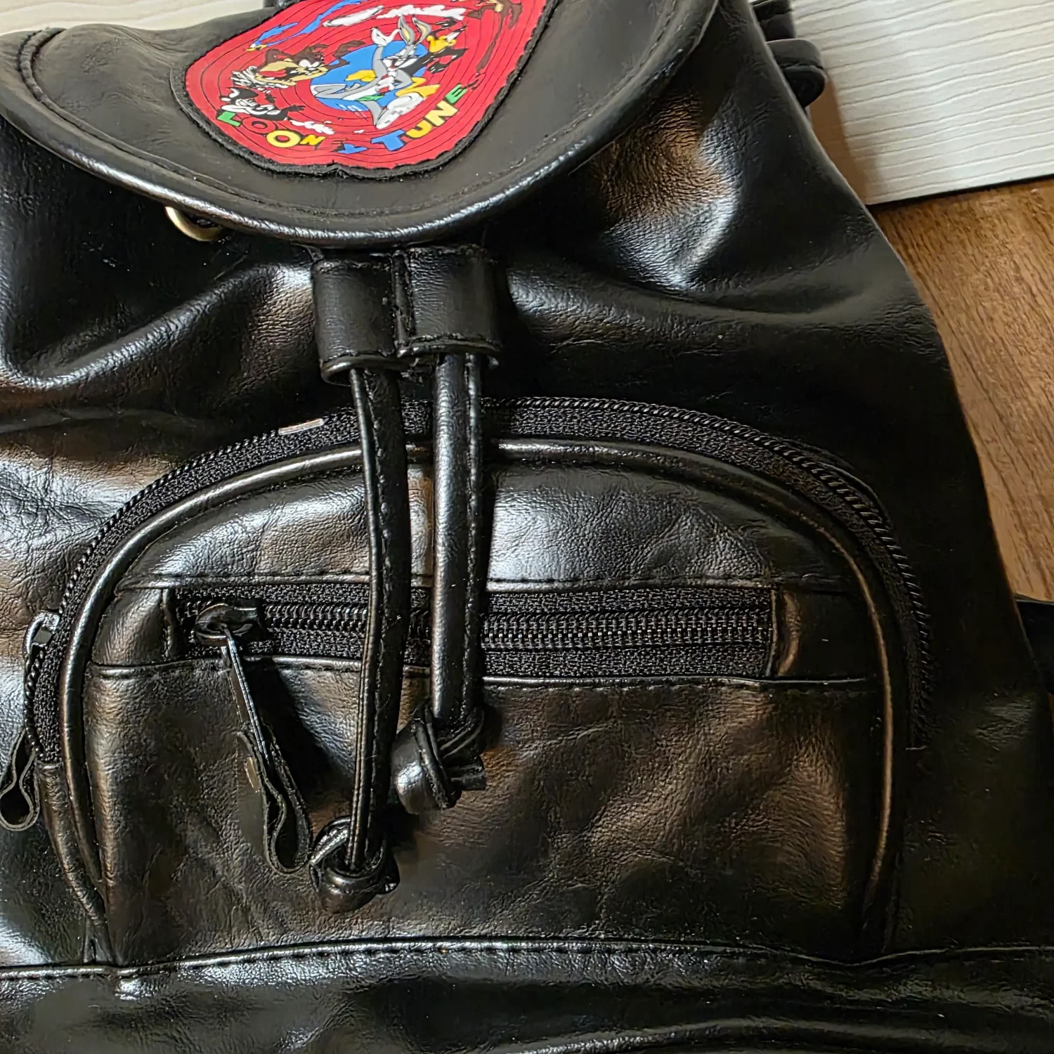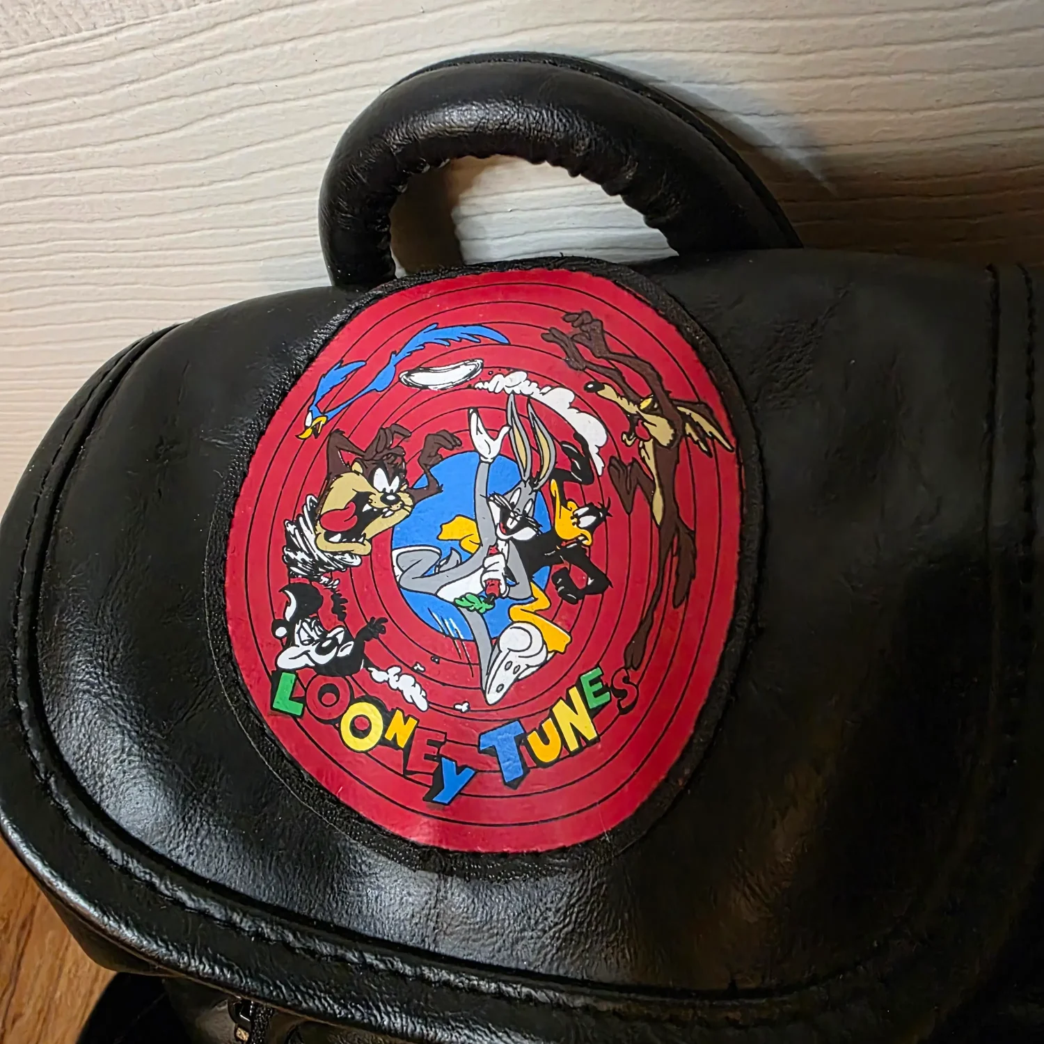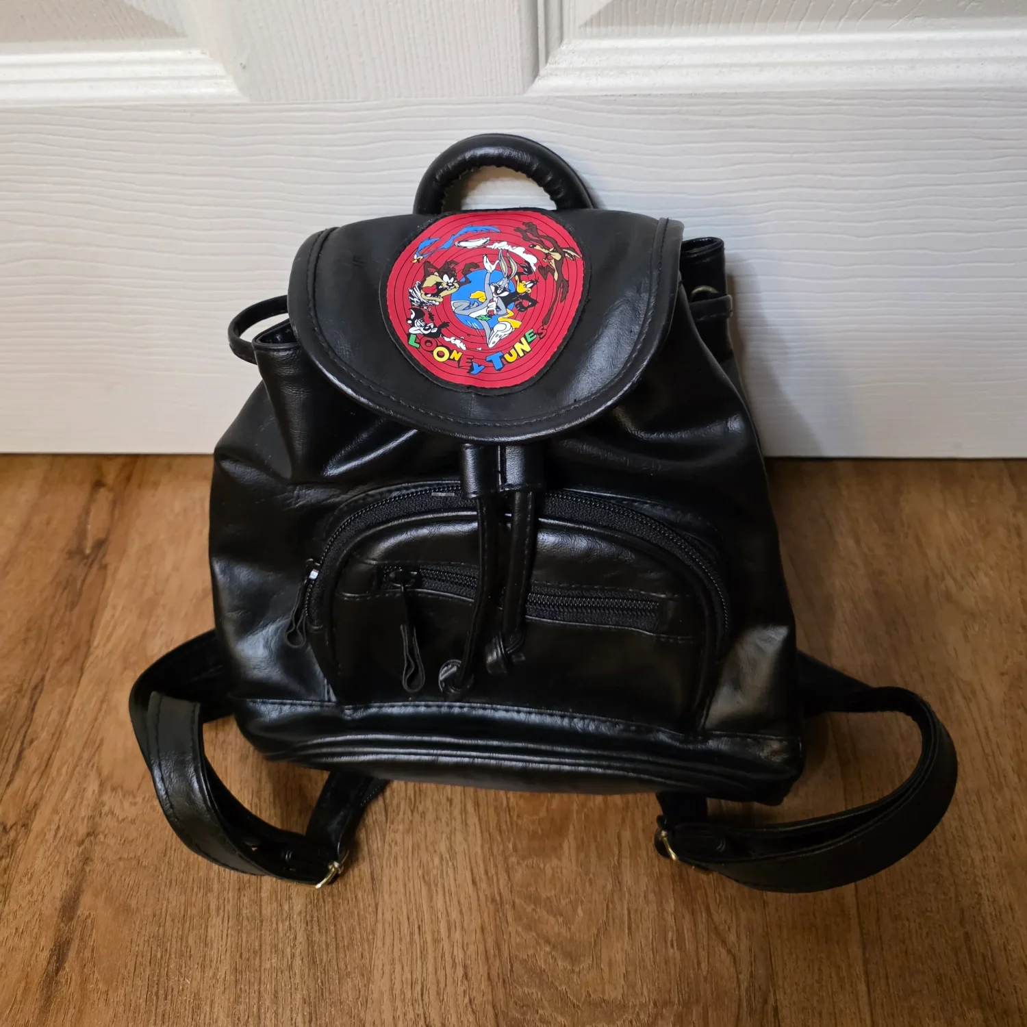 Vintage 90s Mini Black Faux Leather Looney Tunes Backpack