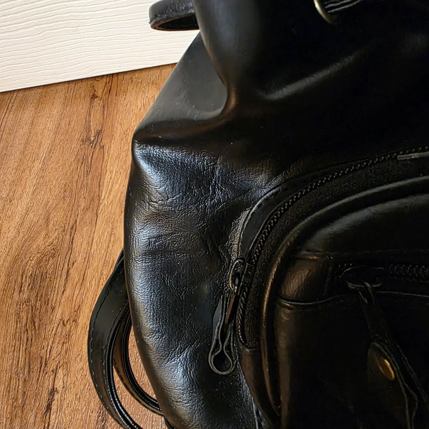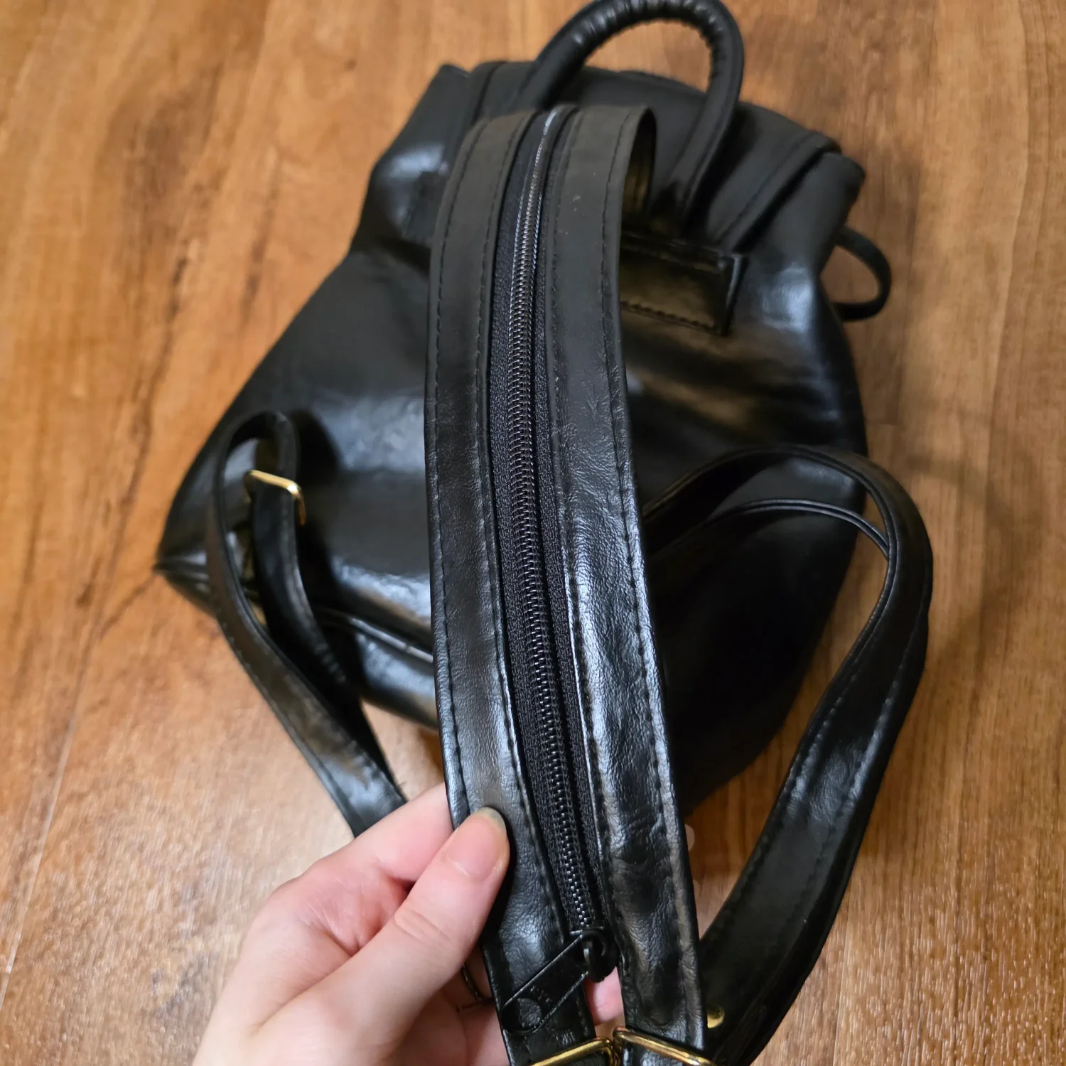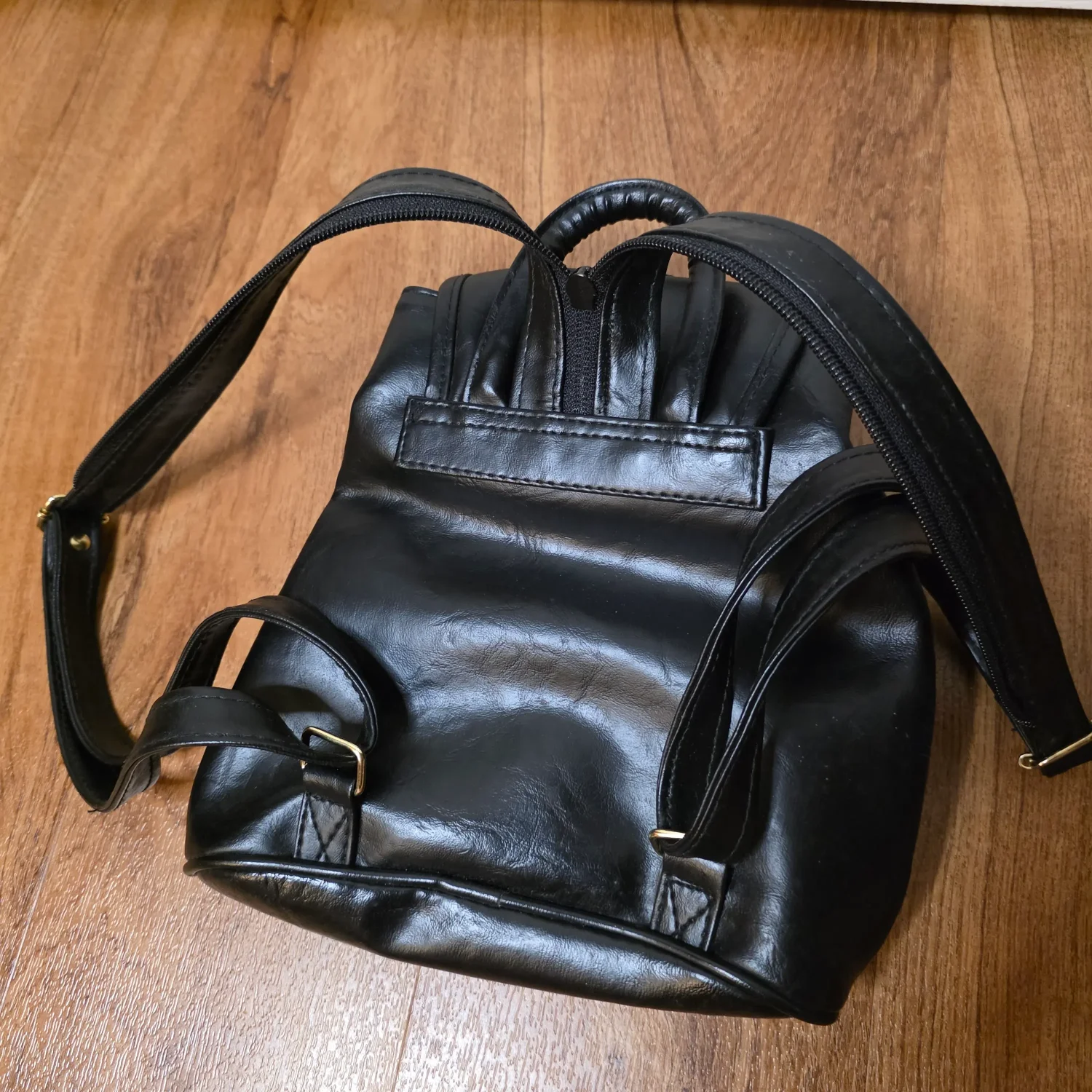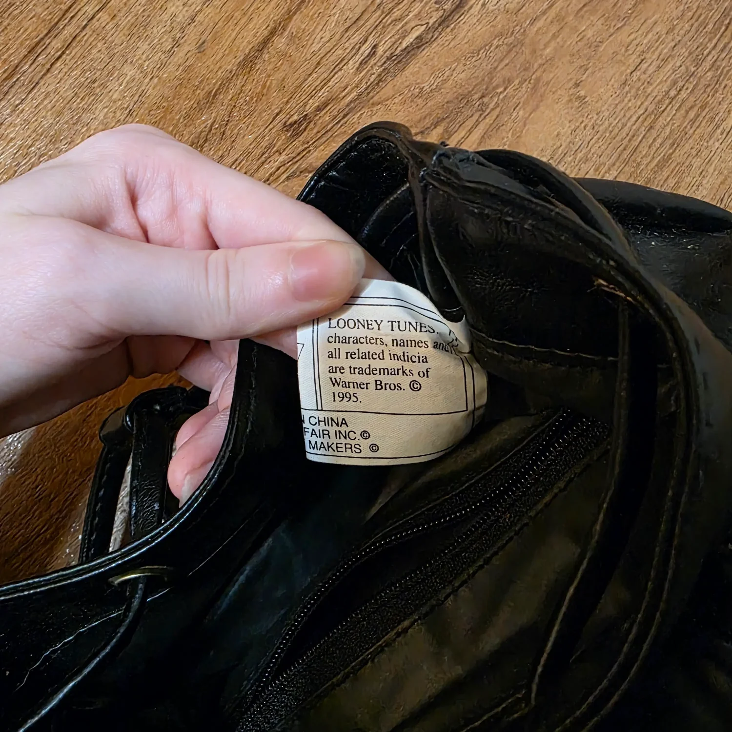 Vintage 90s Mini Black Faux Leather Looney Tunes Backpack