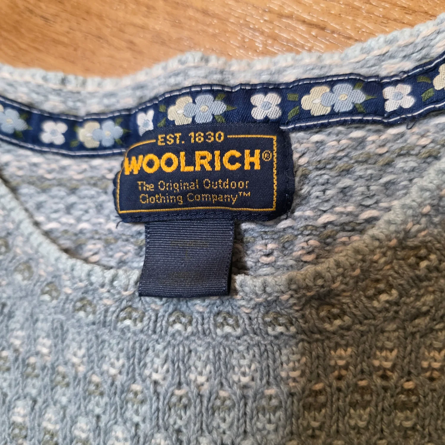 Woolrich Baby Blue Floral Flower Knit Sweater