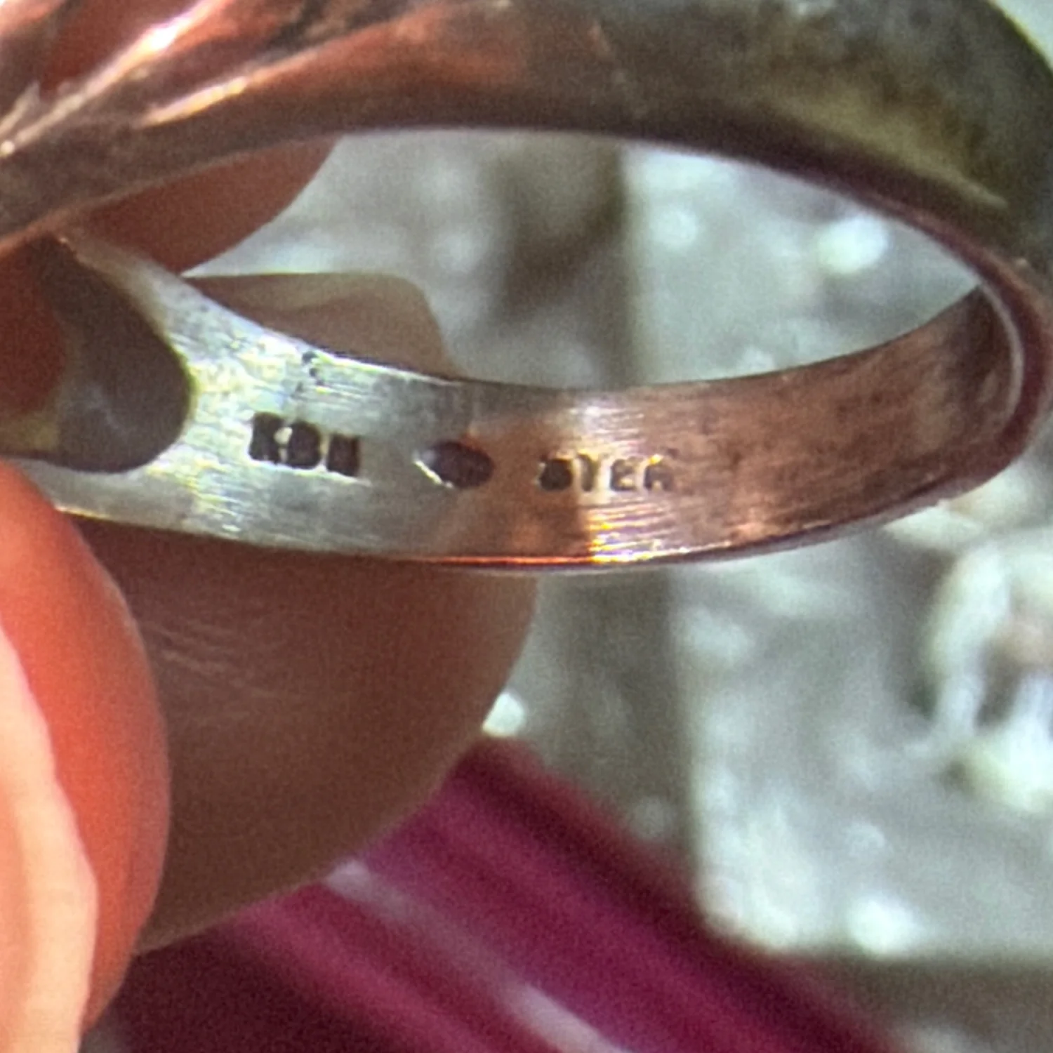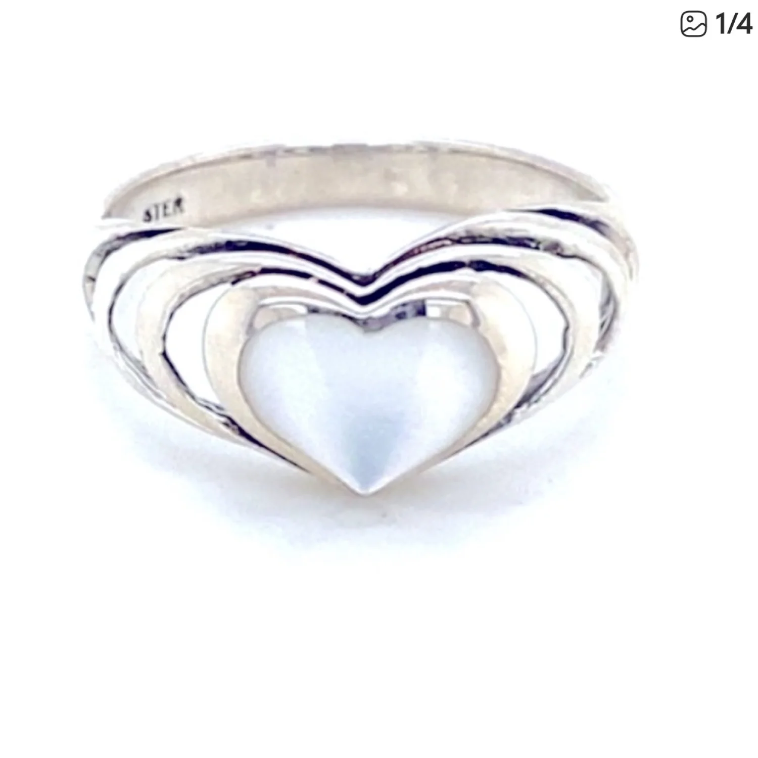 Authentic Kabana sterling silver ring featuring a luminous mother of pearl heart inlay in a beautifully layered open-heart design. This piece is hallmarked “KB” and “STER,” confirming genuine Kabana craftsmanship and solid sterling silver. Kabana is known for their high-quality Southwestern jewelry and elegant inlay work. ✨ Details: • Brand: Kabana • Metal: Solid sterling silver • Stone: Natural mother of pearl • Size: 7 • Condition: Very good pre-owned condition (see photos) • Hallmarks: KB • STER (shown) Romantic, timeless, and perfect as a gift for Valentine’s Day, anniversaries, or everyday wear. 📦 Ships carefully packaged and ready to gift.