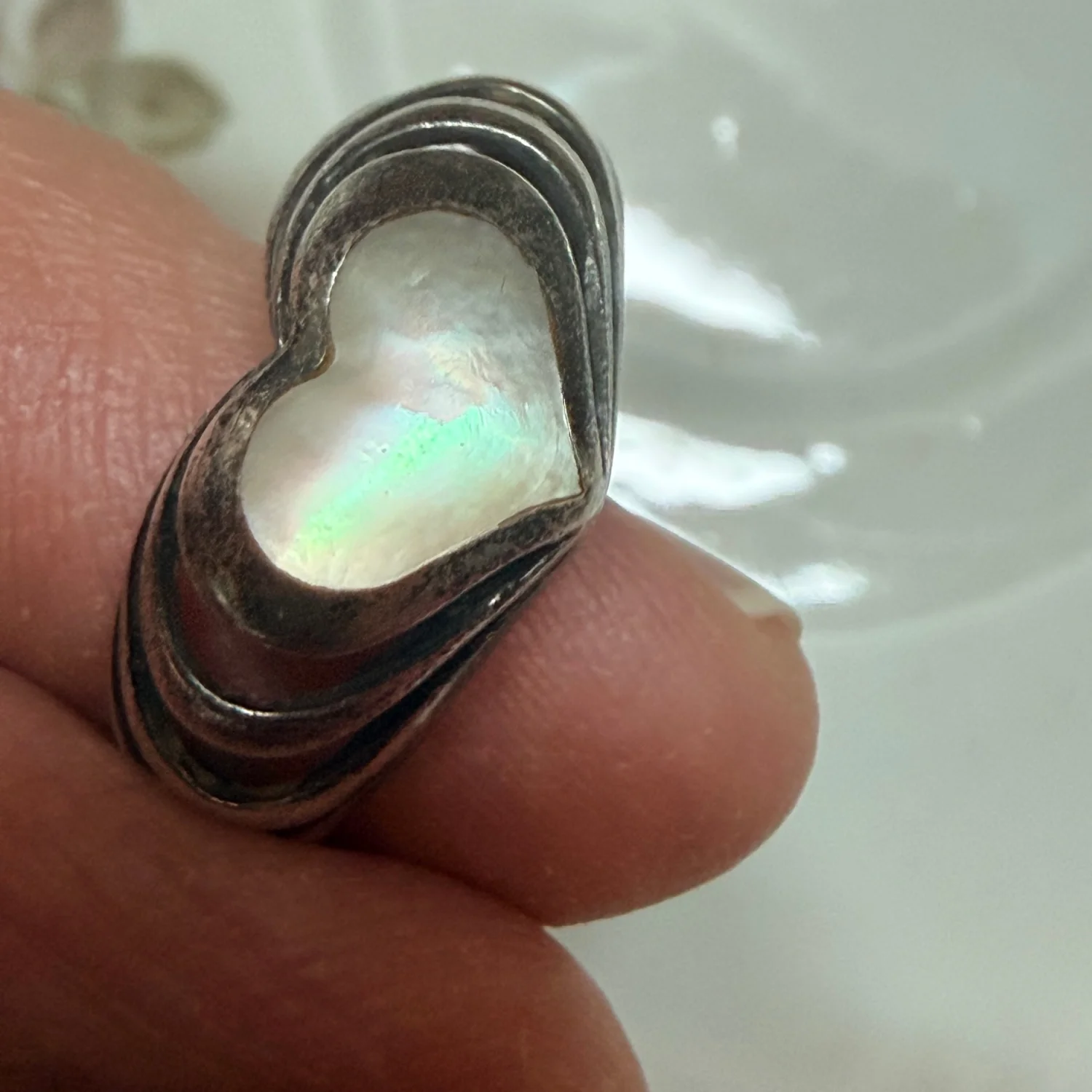 Kabana Sterling Silver Mother of Pearl Heart Ring Size 7 | KB Hallmark | Artisan Southwestern Jewelry
