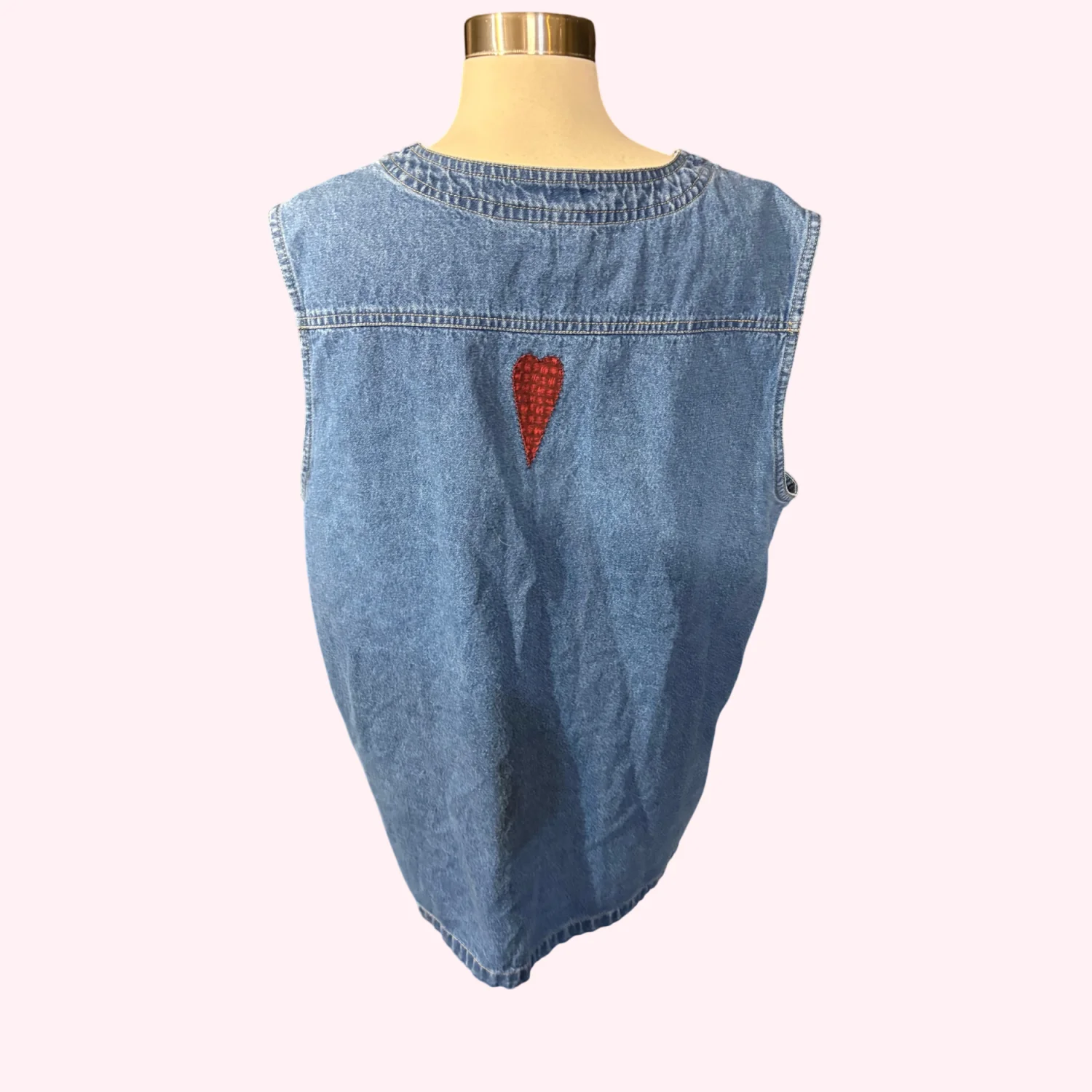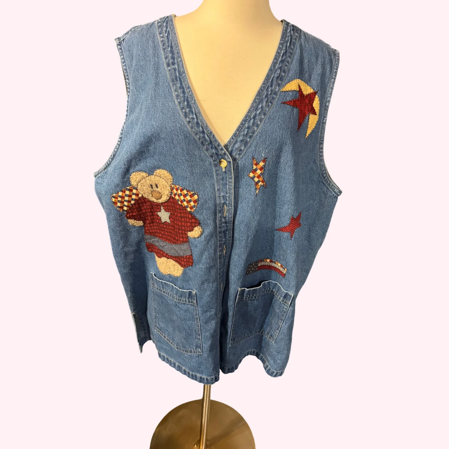 Vintage 90s Haiks brand Plus size denim vest with teddy appliques