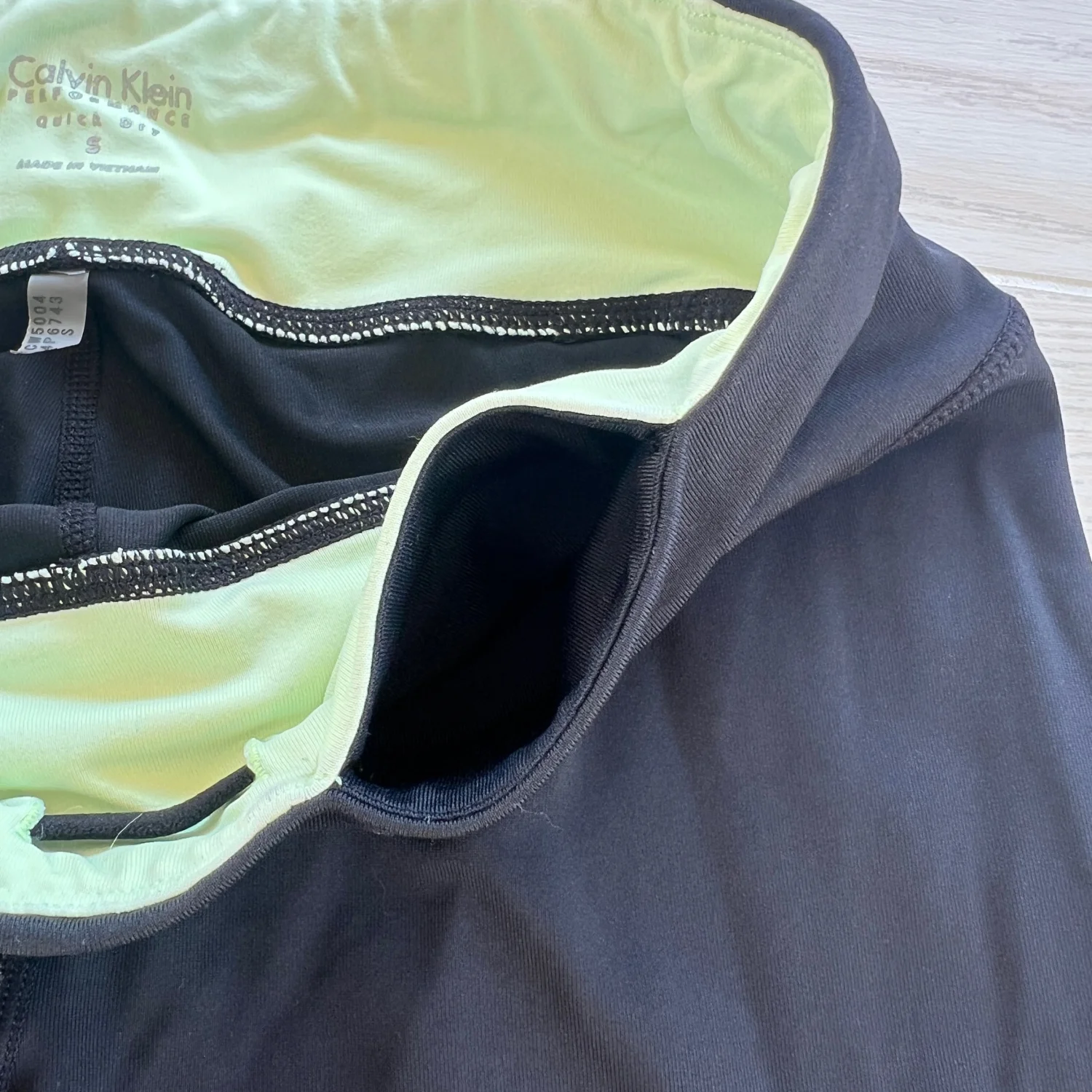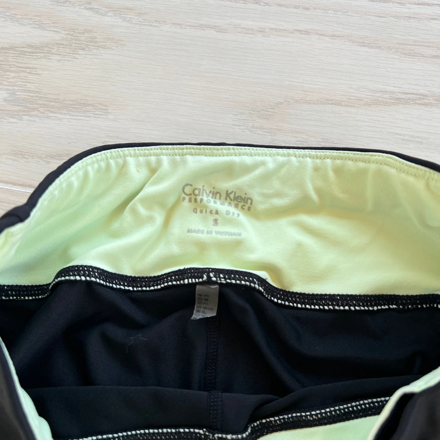 Calvin Klein Performance capri leggings featuring a sleek black design with light green accents. Made from a soft and stretchy material for comfort and flexibility during workouts. Ideal for yoga and other fitness activities. Material: (Tag not listed—commonly poly/spandex blend) Made in: Vietnam Condition: Preowned with minimal signs of wear — see all photos for details Special Feature: Hidden front hip pocket #CalvinKlein #Activewear #CapriLeggings