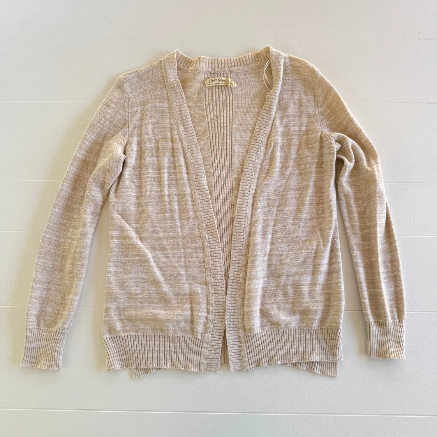 Faded Glory Women's VGT Small 4-6 Bare Beige Open Front Pockets Cardigan
