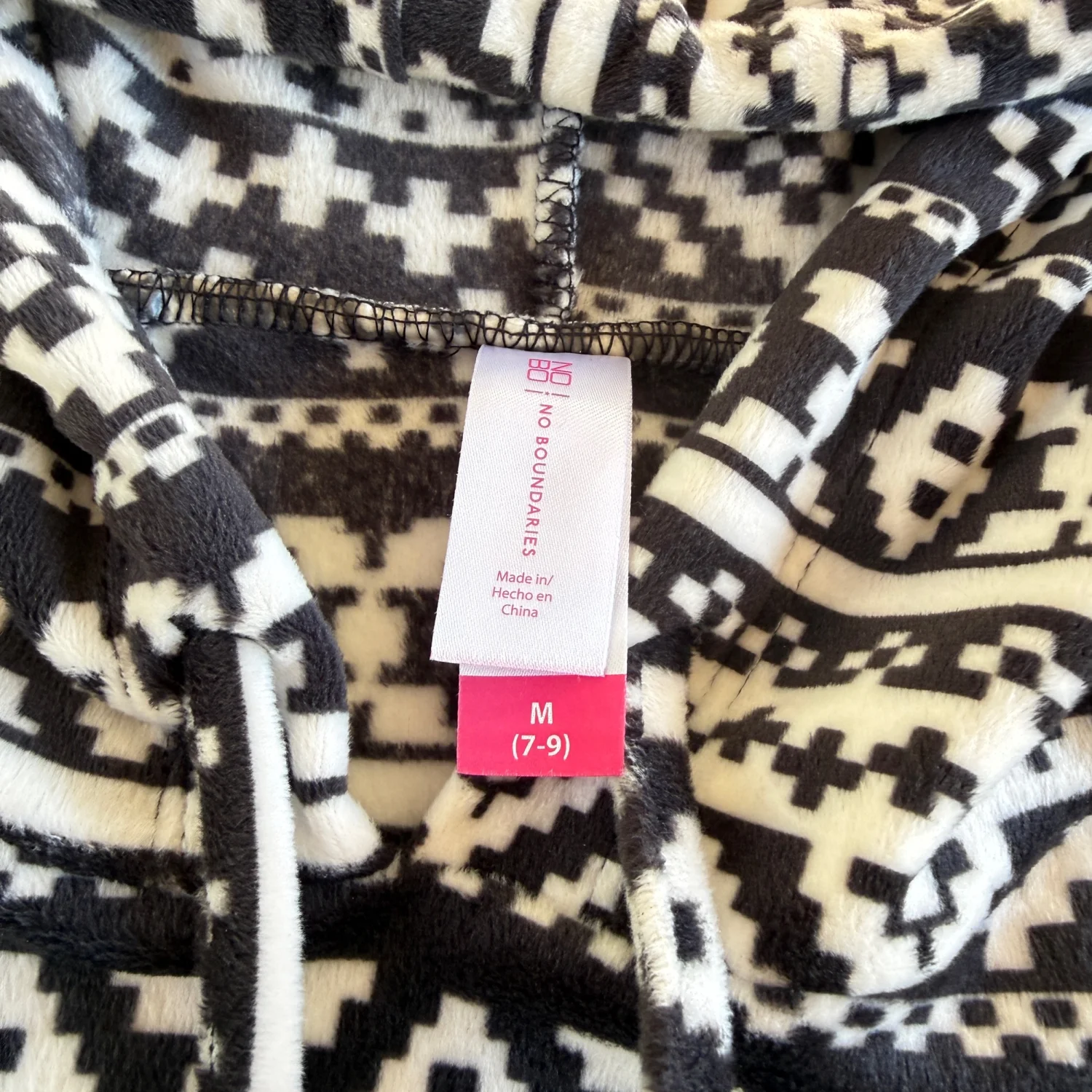 Preowned and in good condition with no flaws noticed. Please see all pictures for full details. Details: • Brand: No Boundaries • Women’s Size: Medium (7–9) • Color: Black & White • Style: Pullover hoodie • Pocket: Front kangaroo pocket • Style Number: NJ48T2260 • UPC: 019216441685 • Made in China Material: • 93% Polyester • 7% Spandex Stored in a smoke-free, pet-free home. Ships same day if purchased before 12 PM EST.